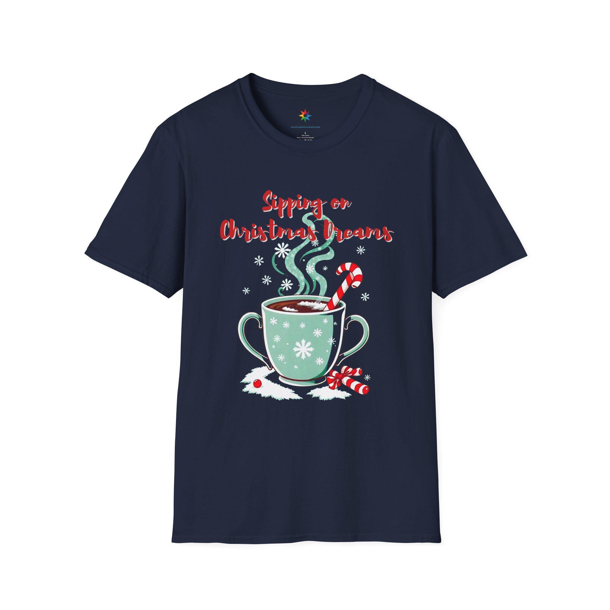 Stay cozy and festive with this Christmas Dreams T-Shirt, perfect for sipping on hot cocoa by the fireplace while dreaming of a white Christmas. This unisex softstyle tee is made from 100% ring-spun cotton, ensuring comfort all year round. A delightful addition to any Christmas collection, this shirt is perfect for those who embrace the magic of the holiday season.