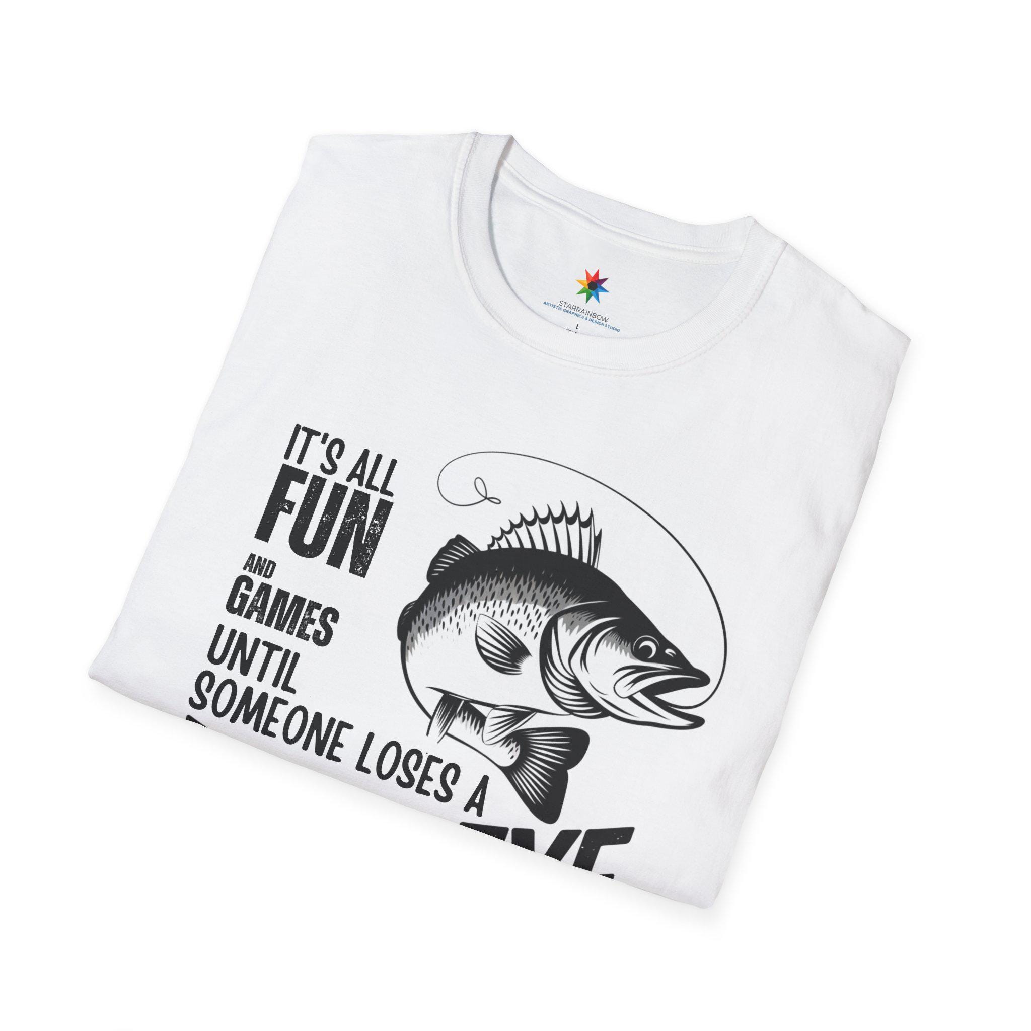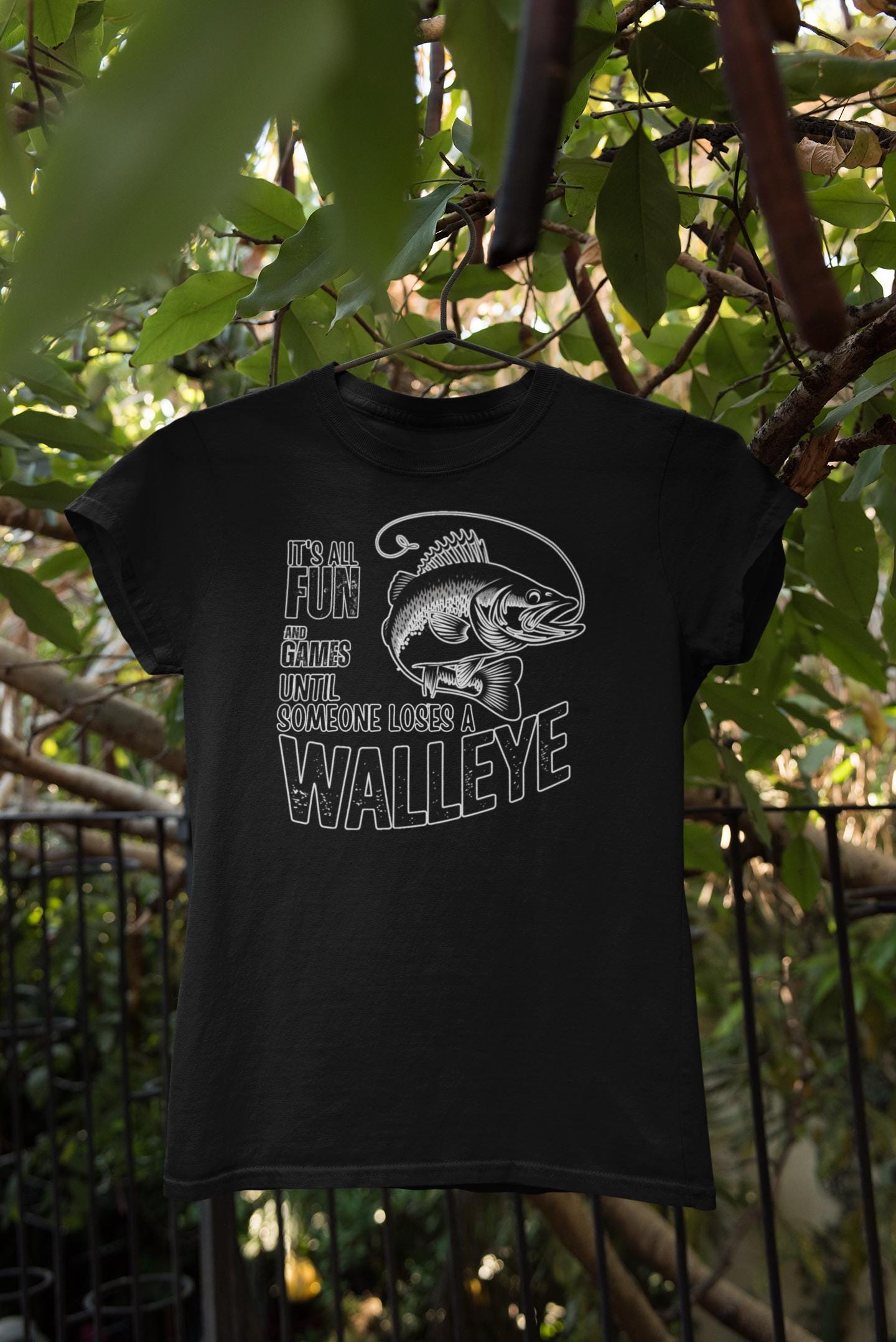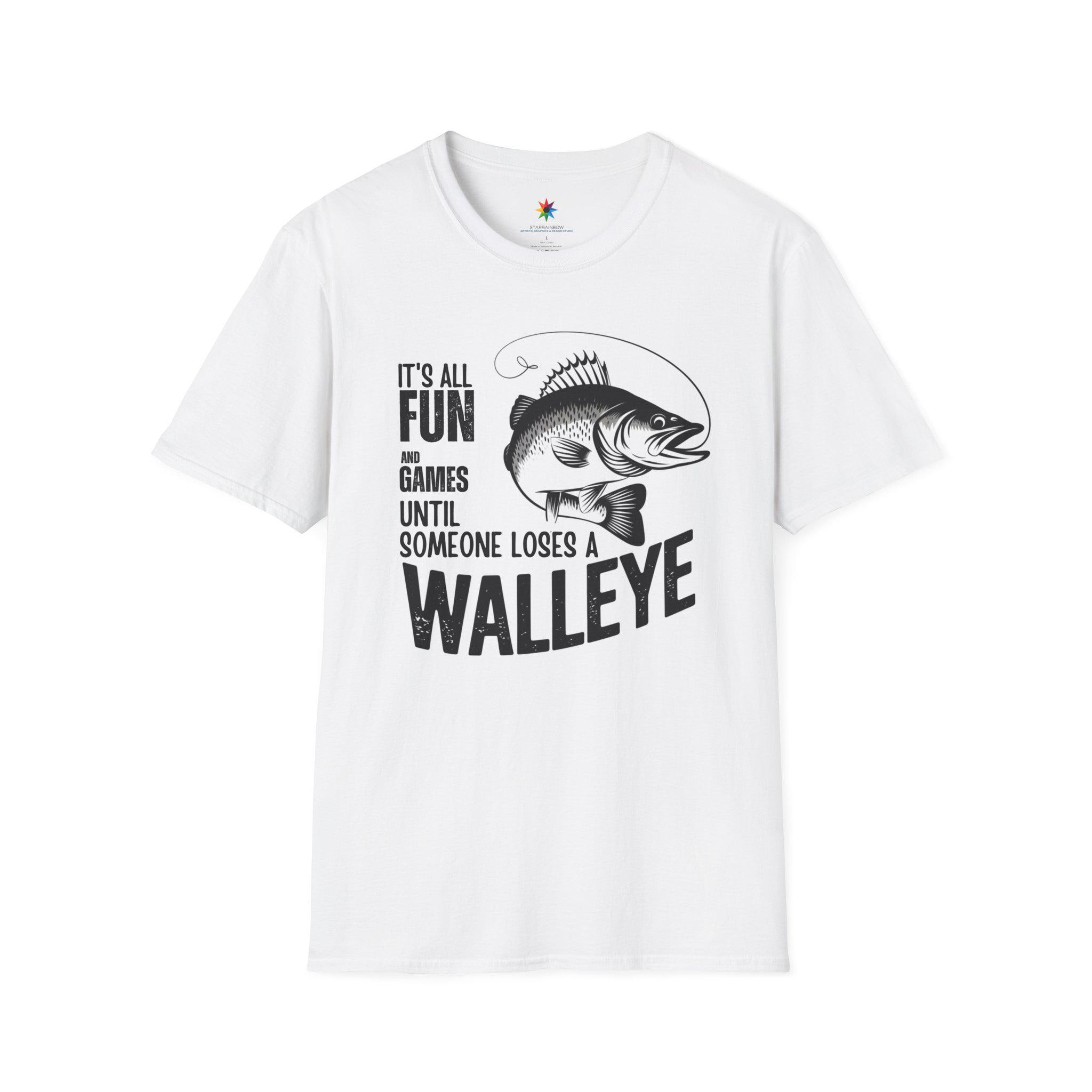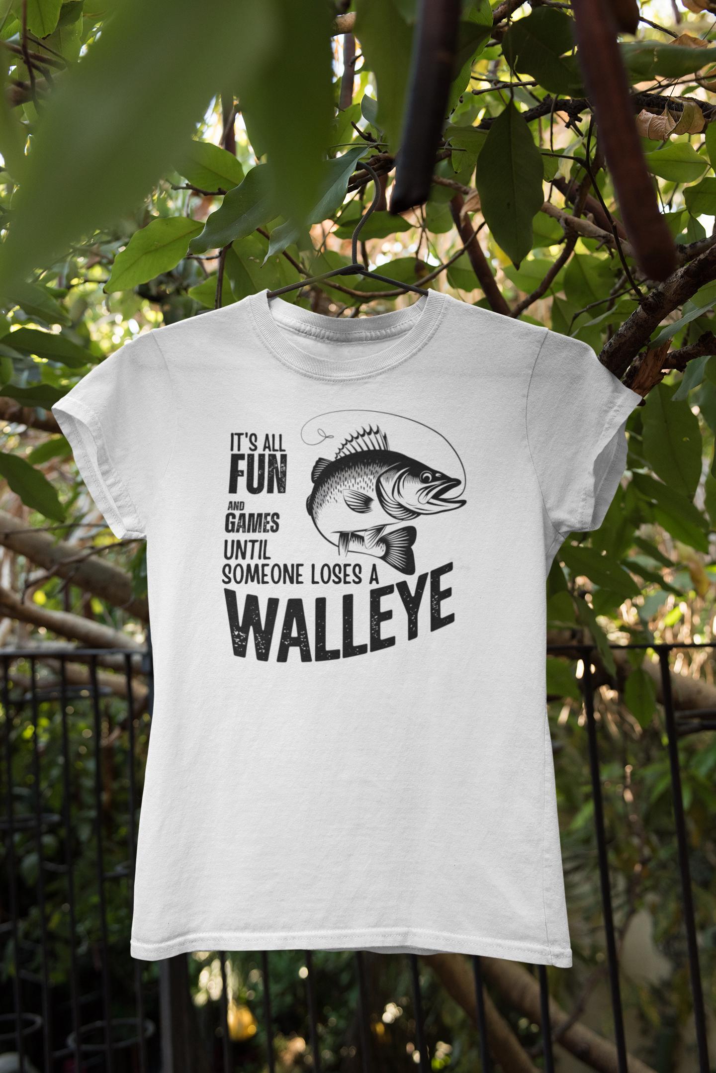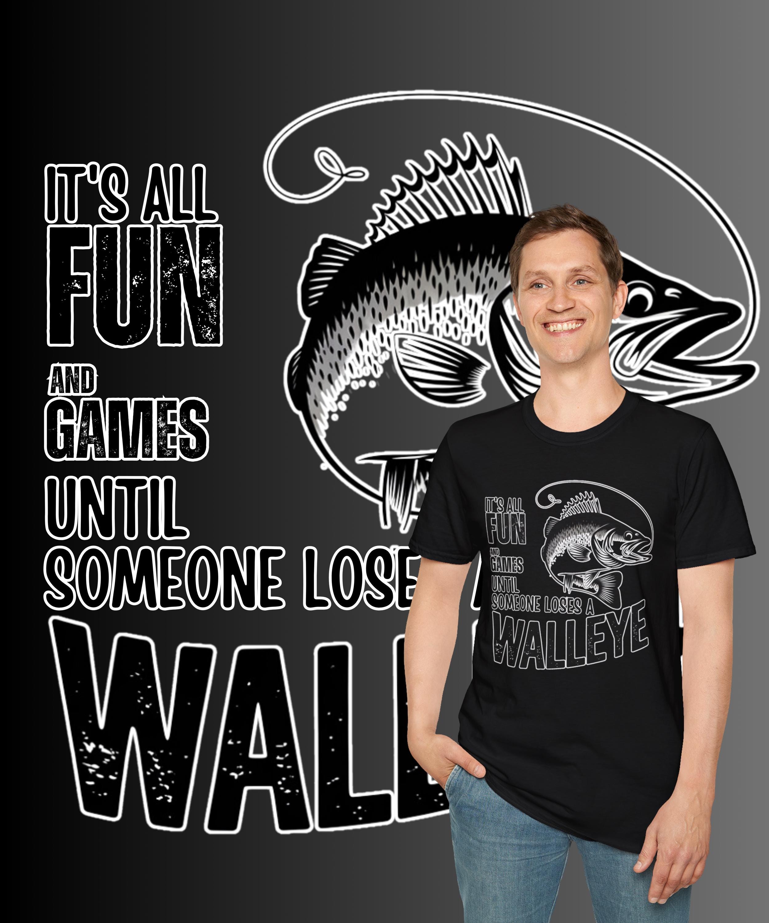 This Walleye Catch Graphic Tee is the perfect fishing gift for men who love spending time outdoors. The design features a humorous and stylish fish print with the phrase "It's all fun and games until someone loses a walleye," making it a great conversation starter shirt for anglers.
