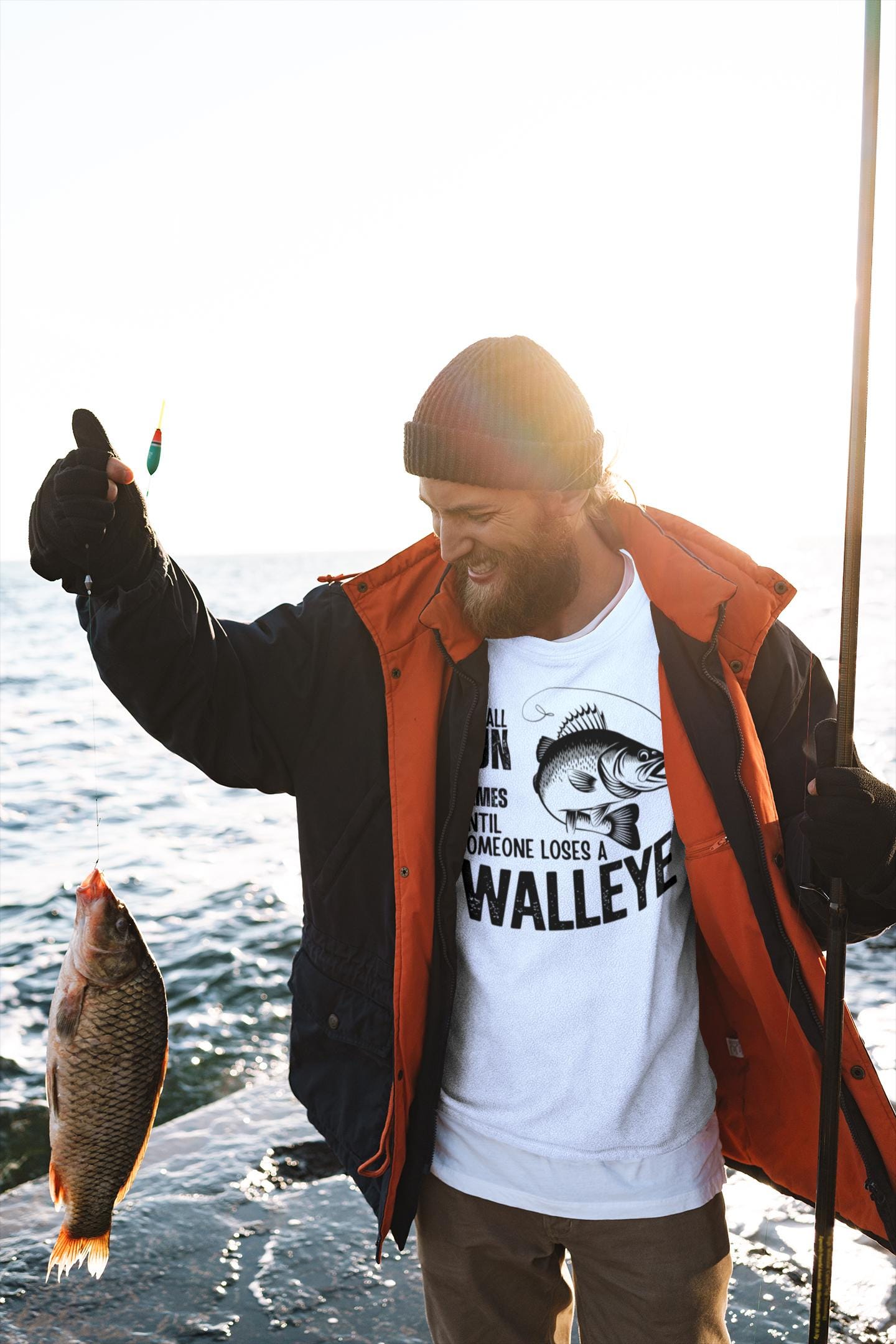 Design: Features a bold and humorous walleye-themed graphic.