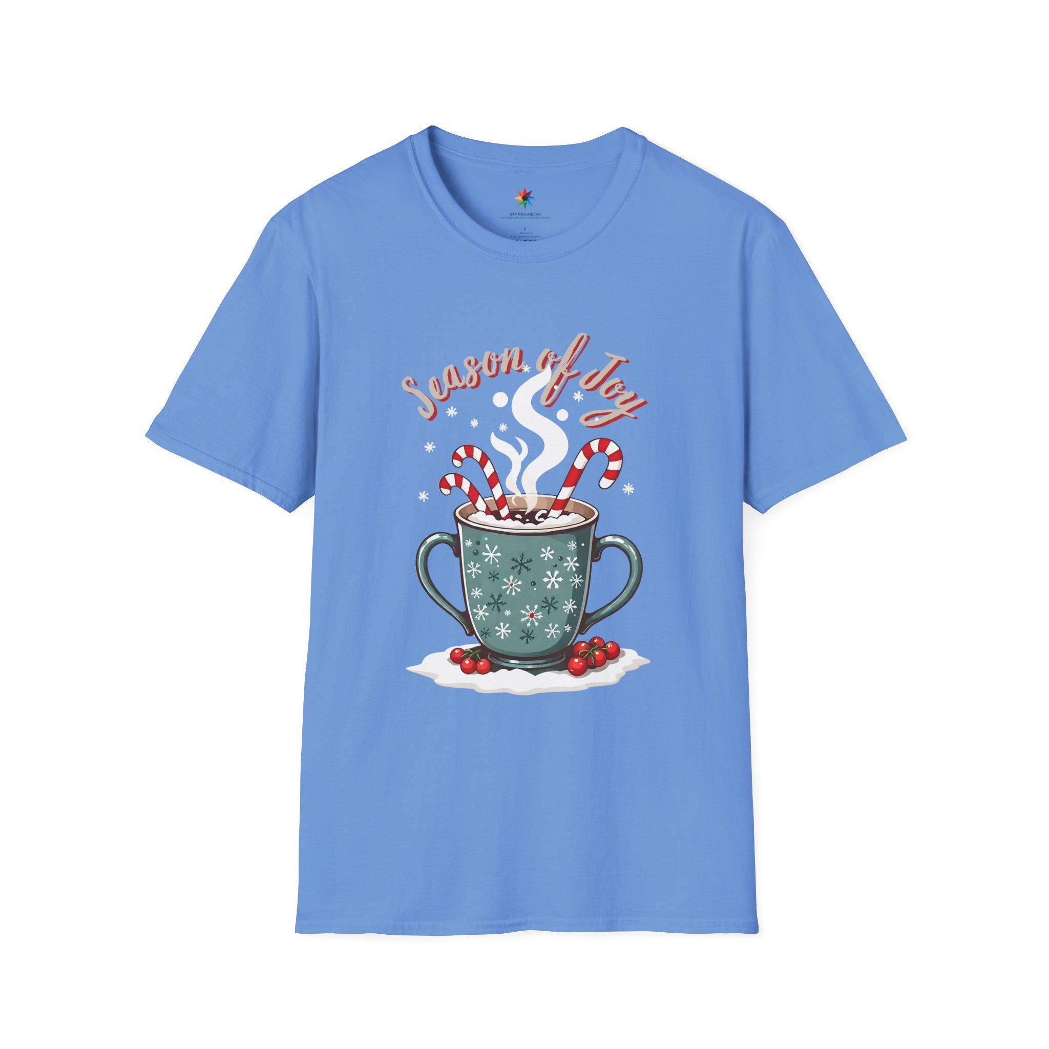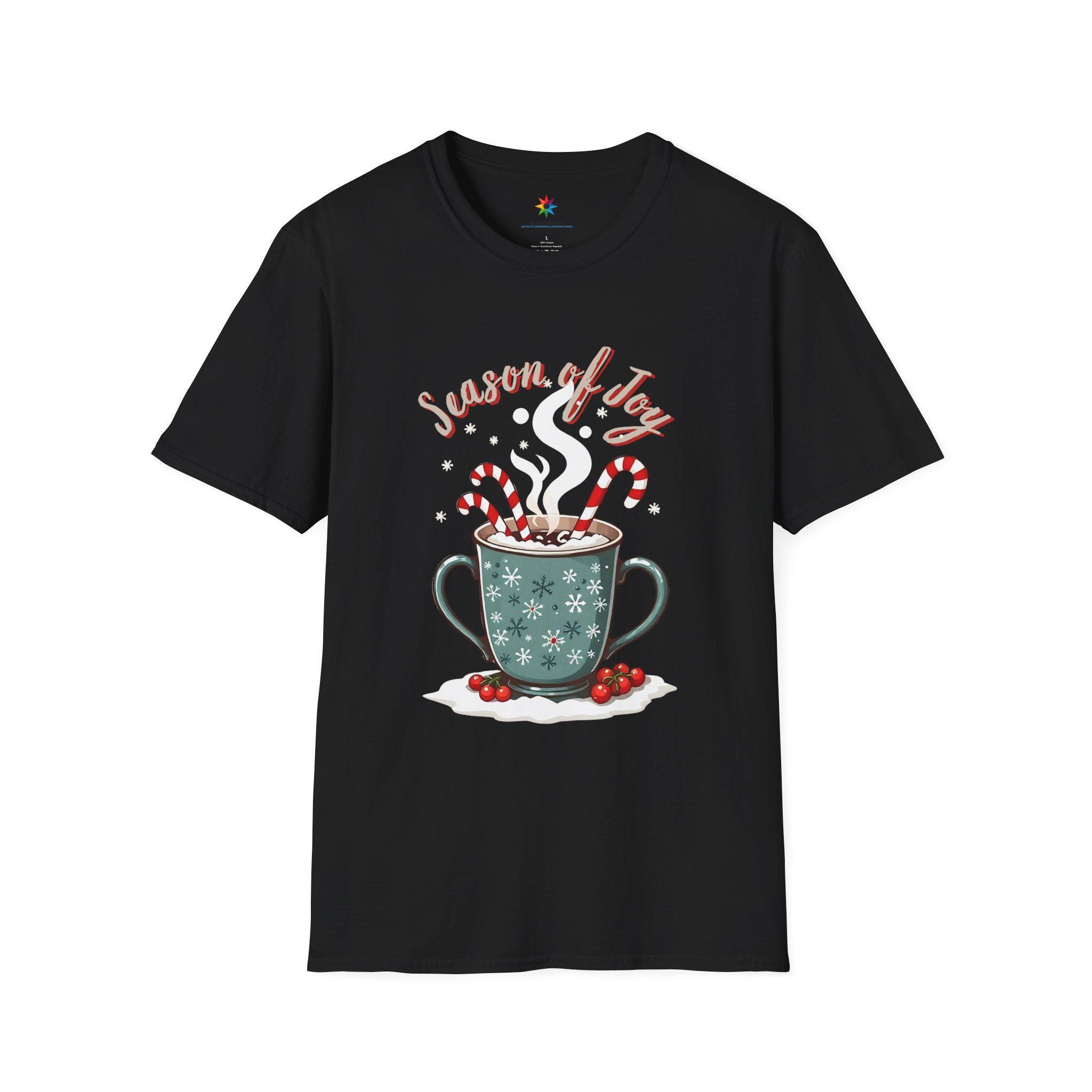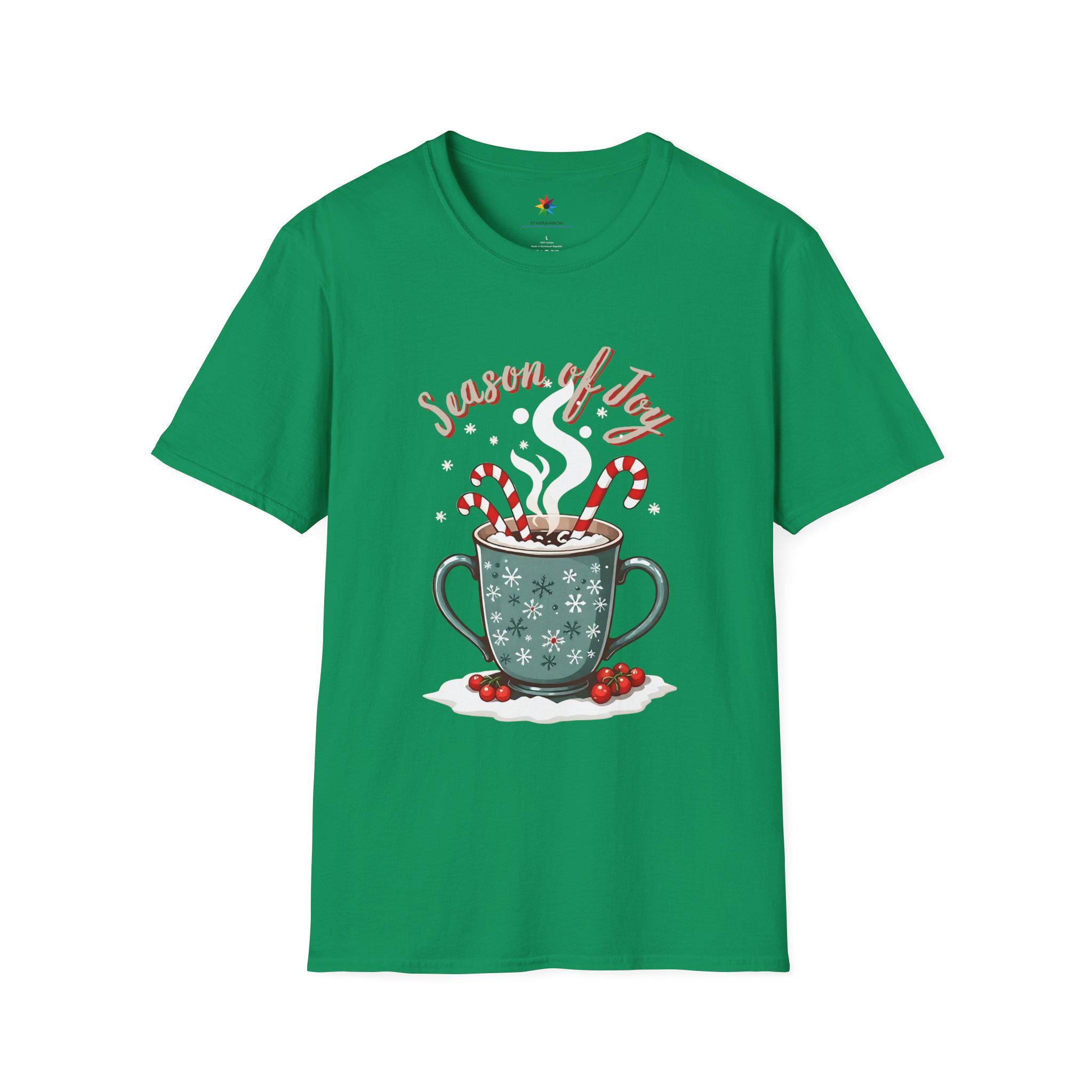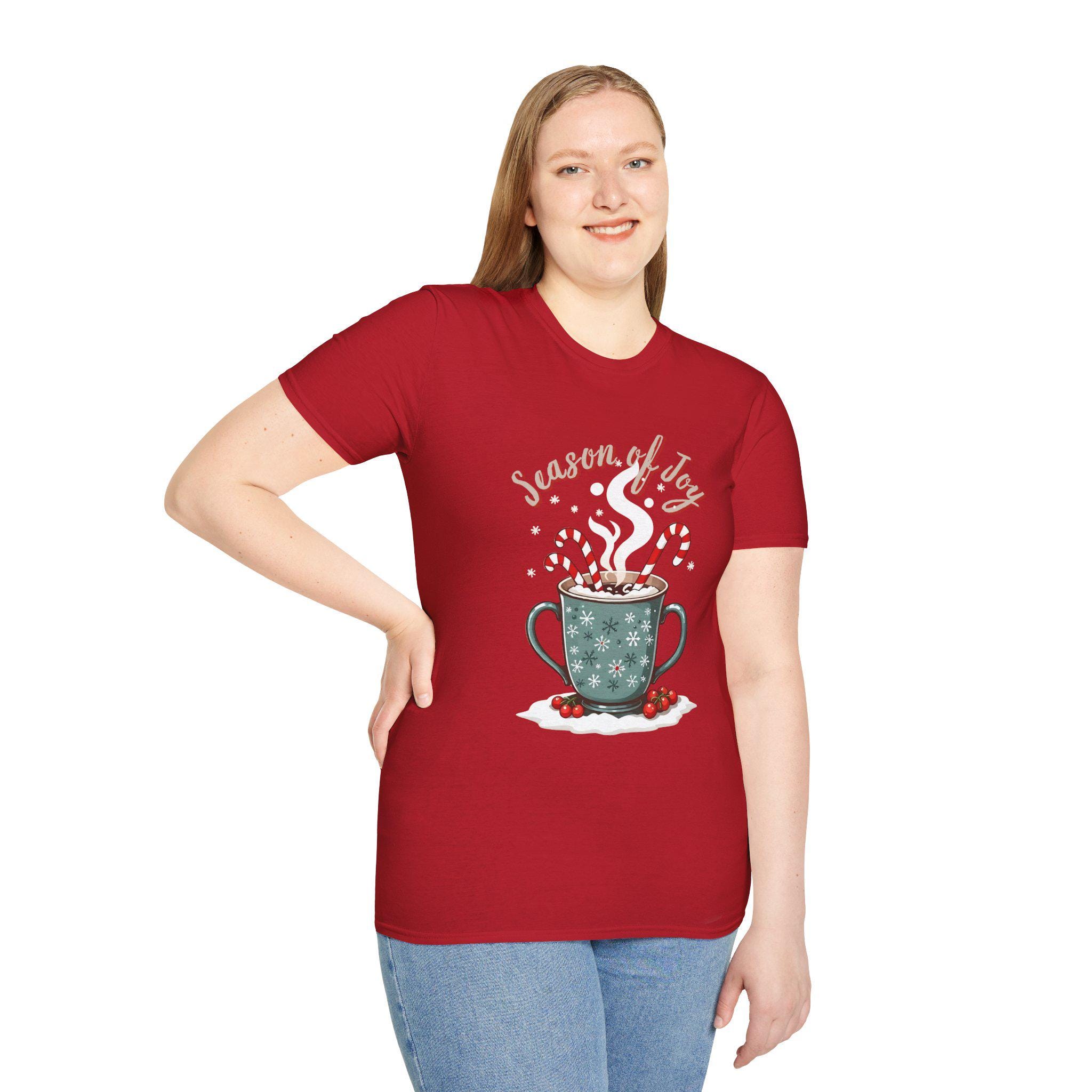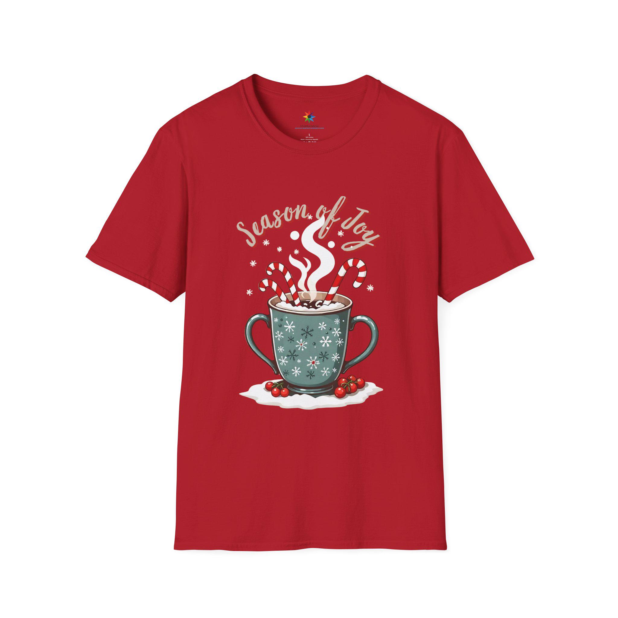 Hot Cocoa & Candy Canes - Fuel for Holiday Cheer T-Shirt. This cozy and festive unisex soft-style t-shirt is perfect for those looking for a warm, nostalgic design. Made from soft 100% cotton, this tee is lightweight and comfortable to wear all year round. The classic fit and crew neckline make it versatile for any occasion, formal or casual. Perfect for Christmas celebrations and holiday enthusiasts.