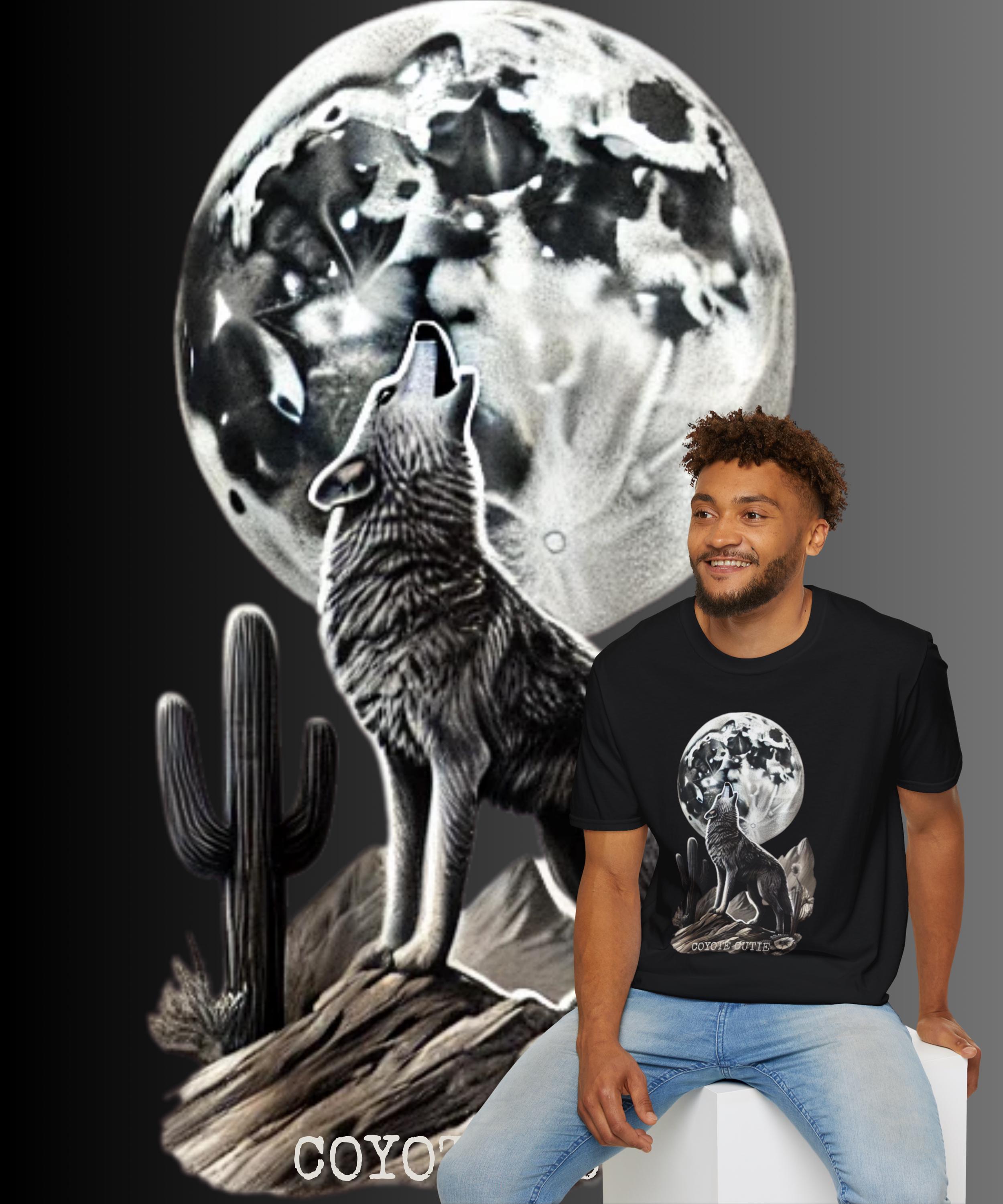 “Coyote Cutie” Full Moon Unisex T-Shirt – A Perfect Blend of Wilderness and Style