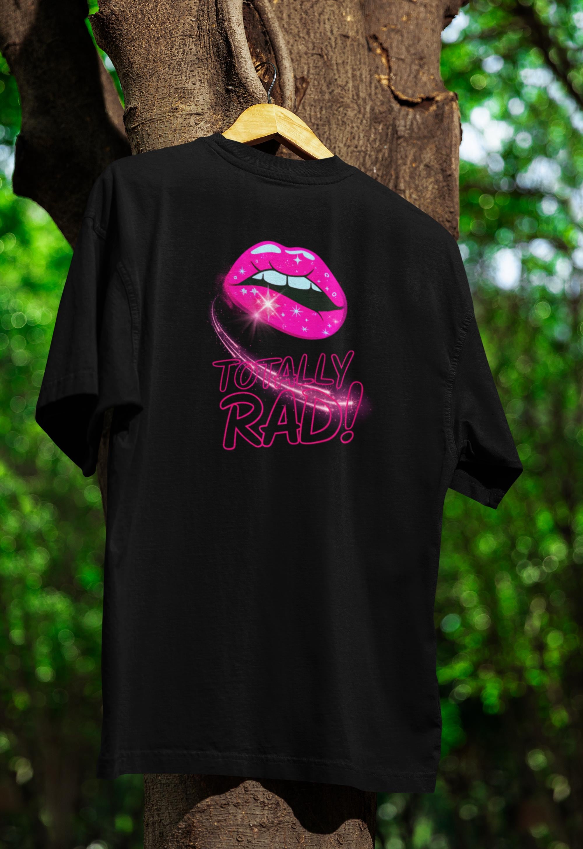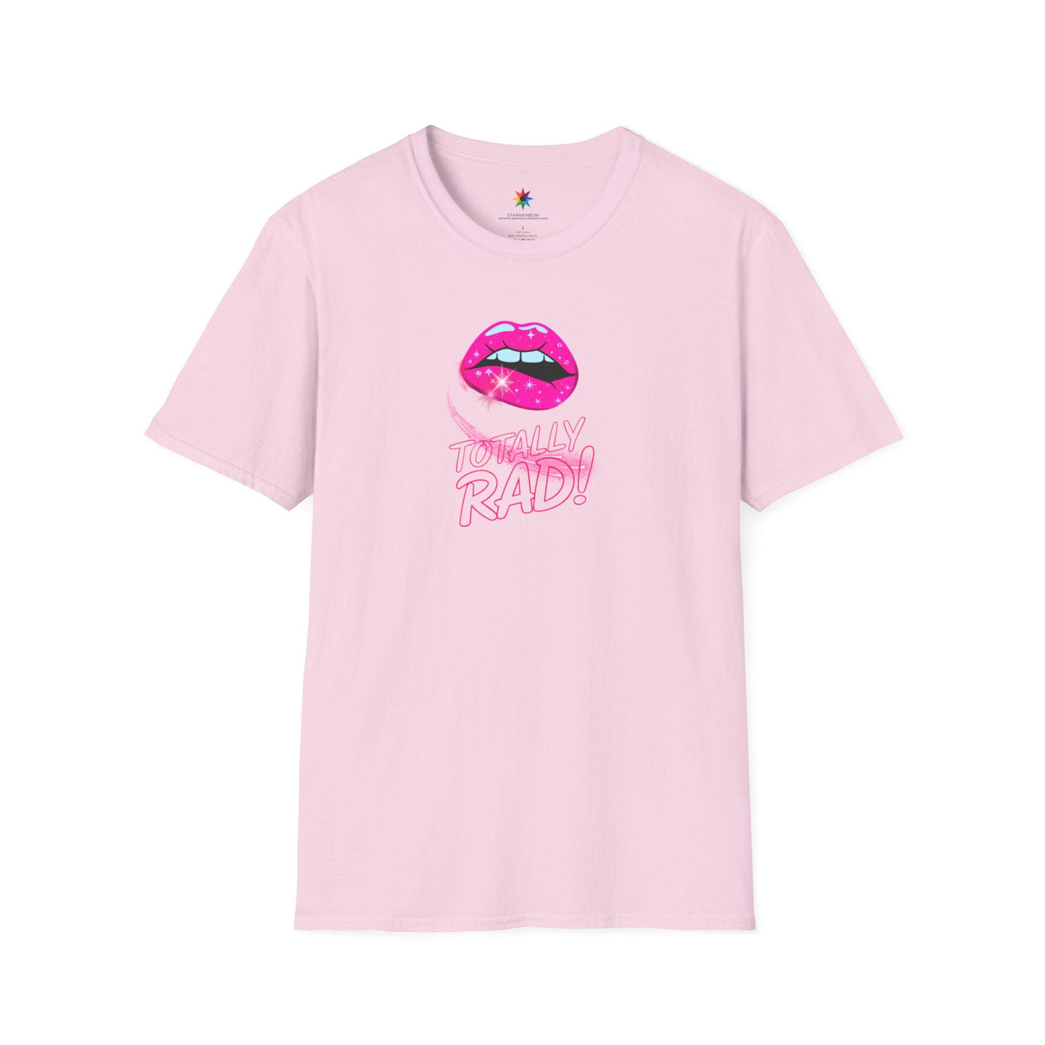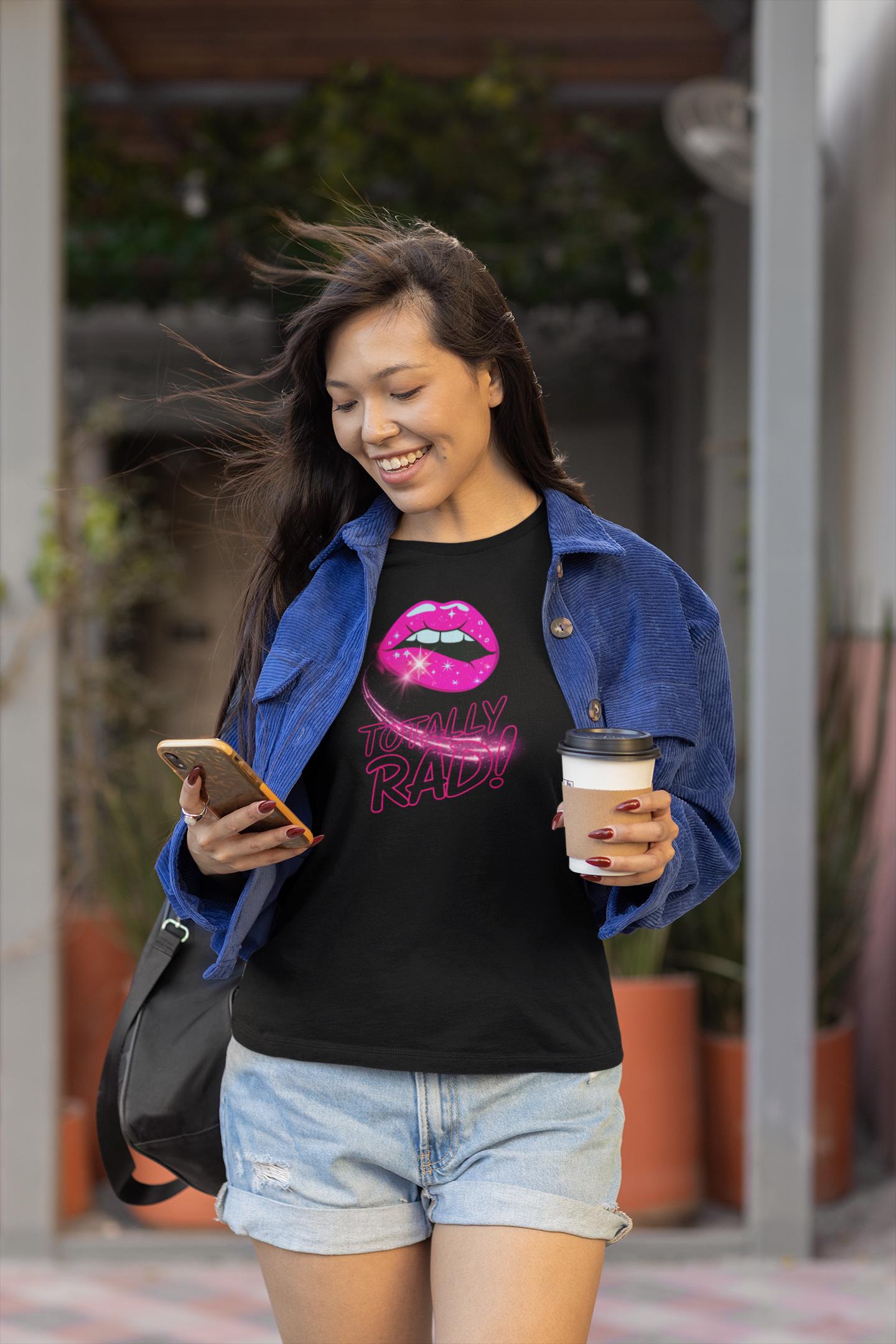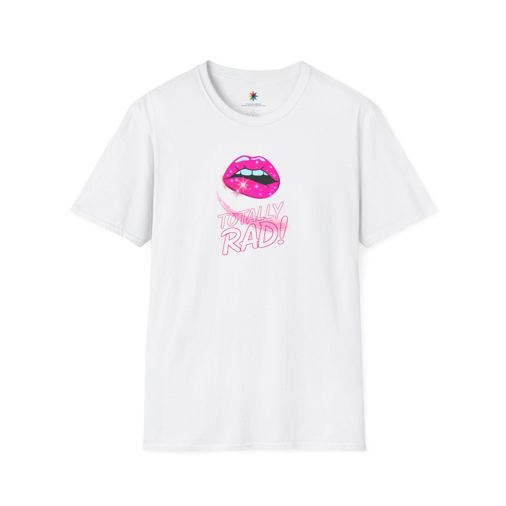 Bring back the electric eighties with this Totally Rad Neon Lips 80s Retro graphic tee. On a deep black unisex T-Shirt, the pink lip pops with glossy highlights and a starry swoosh—made to turn heads at every hangout. Think vaporwave streetwear meets playful nostalgia: a party shirt that feels soft, holds color, and wears like your new favorite tee. A fun gift for her or him, perfect when you want bold personality in a comfy tshirt.