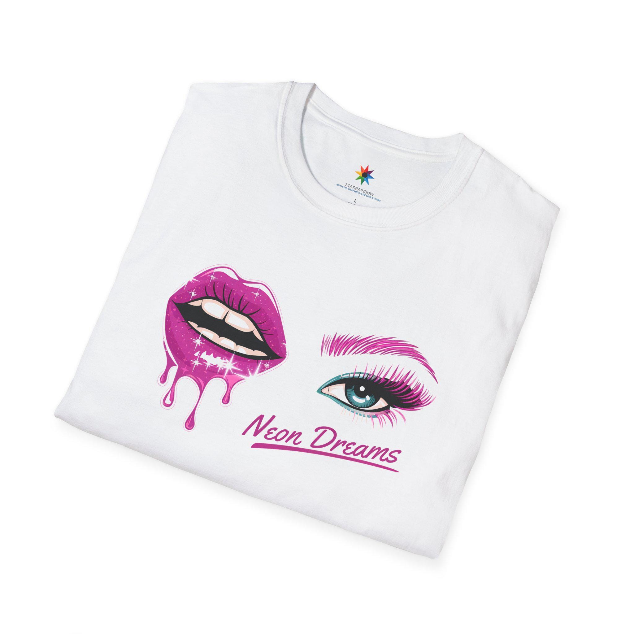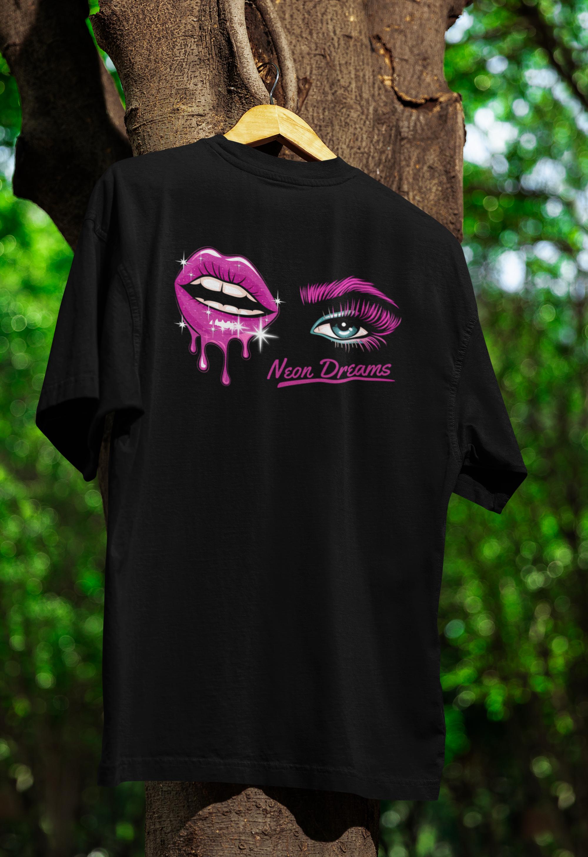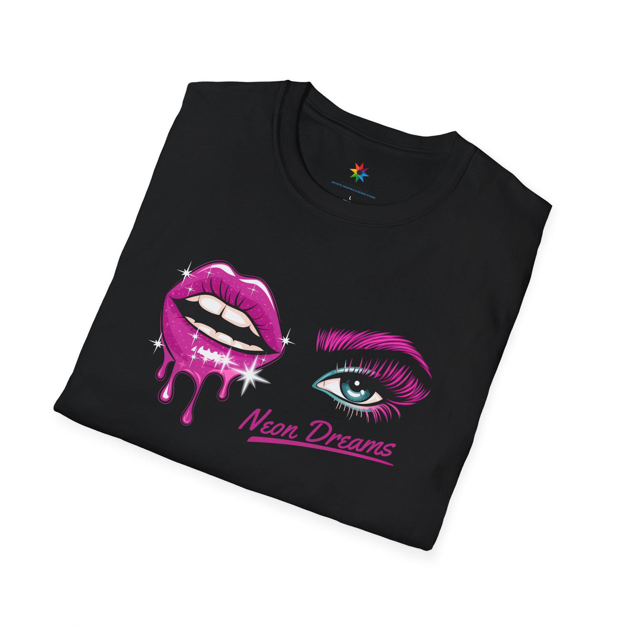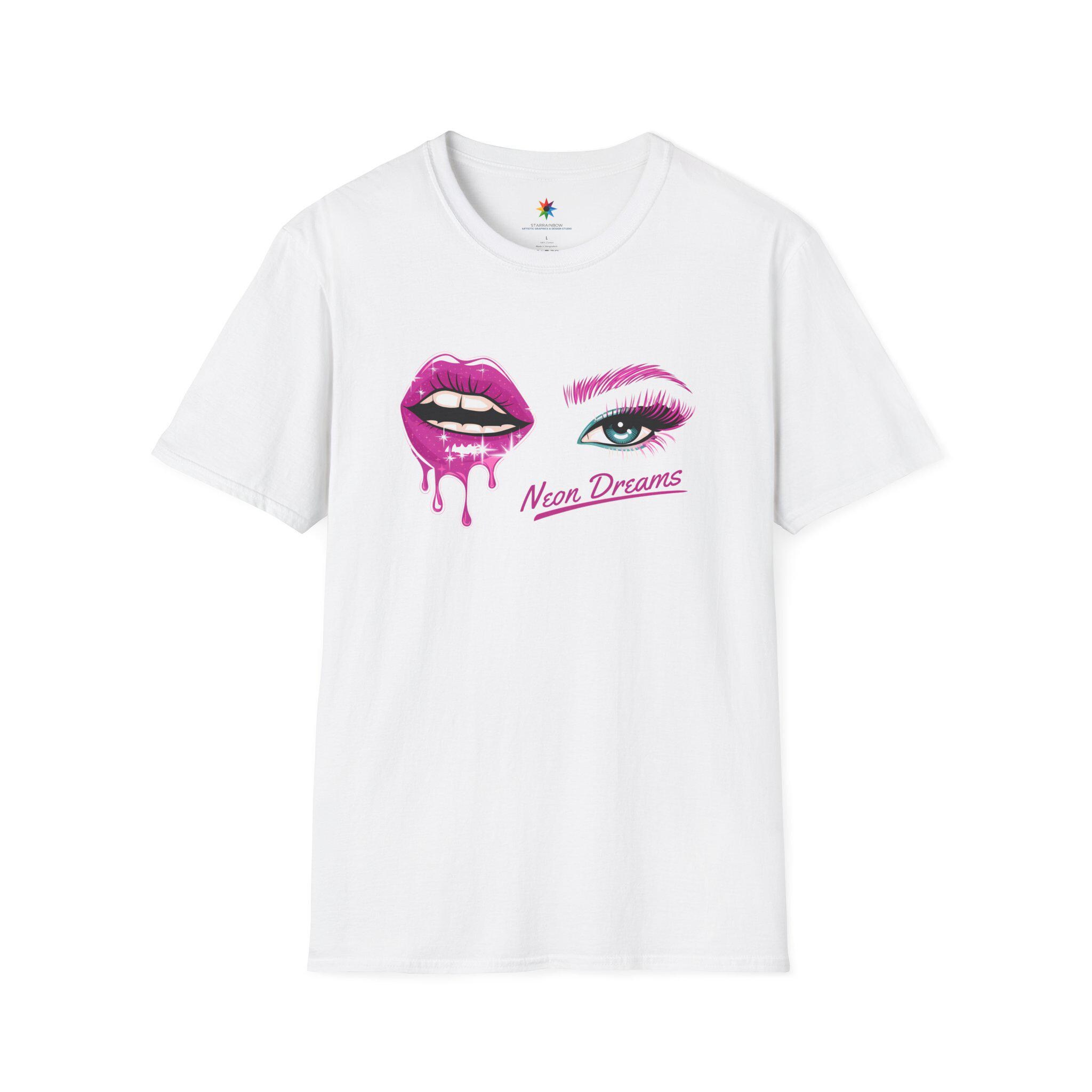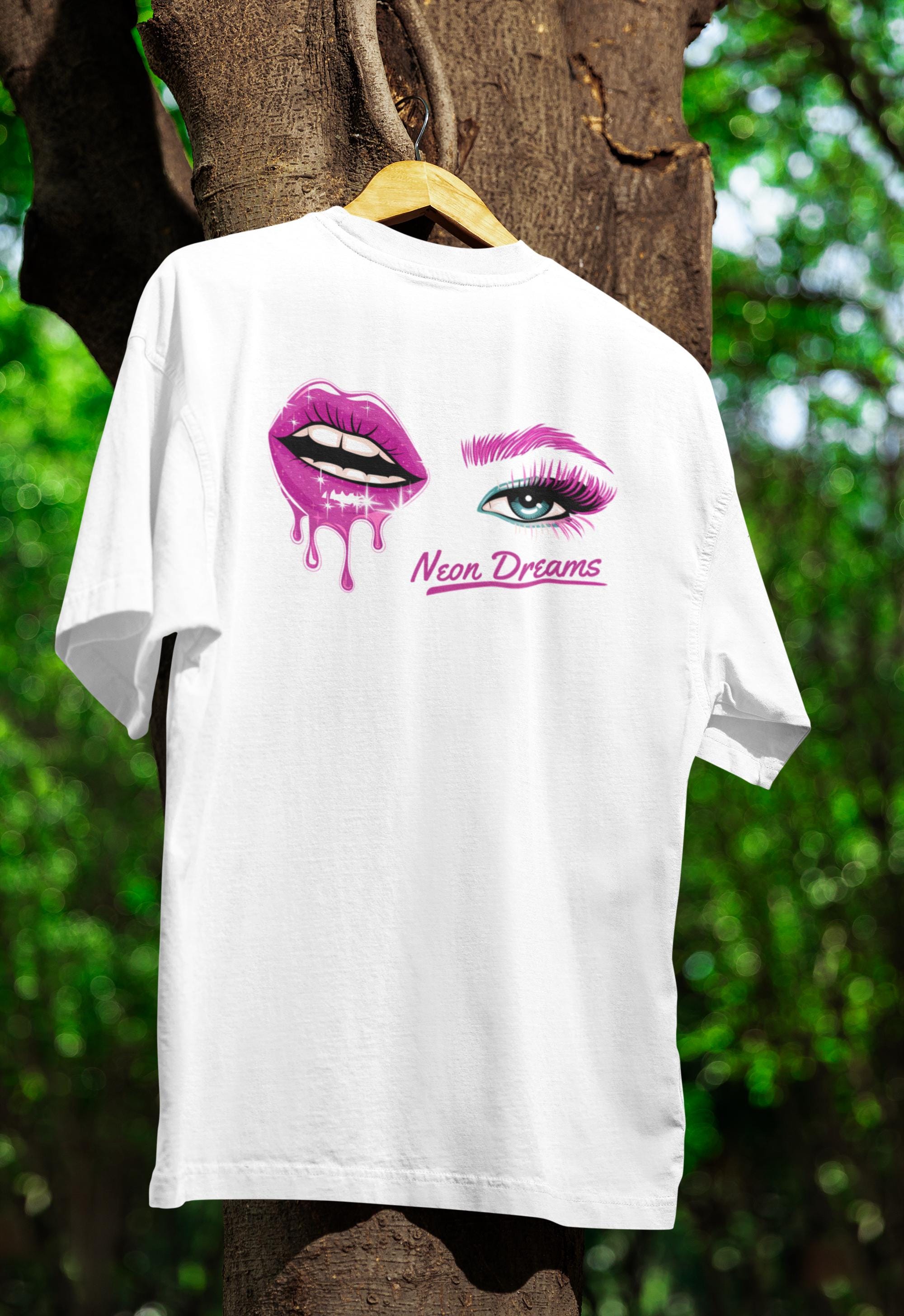 Turn heads with this neon lips & eye graphic tee shirt — a pink dripping art tshirt that blends bold makeup energy with playful attitude. The front graphic features a glossy mouth bite, a flirty lash and eye, and the words “Neon Dreams” in electric script. Printed on a soft, premium unisex tee, this streetwear aesthetic pop design is made for everyday comfort and standout style. It's a cool party gift for her or him, ideal for birthdays, holidays, festivals, concerts, and nights out.