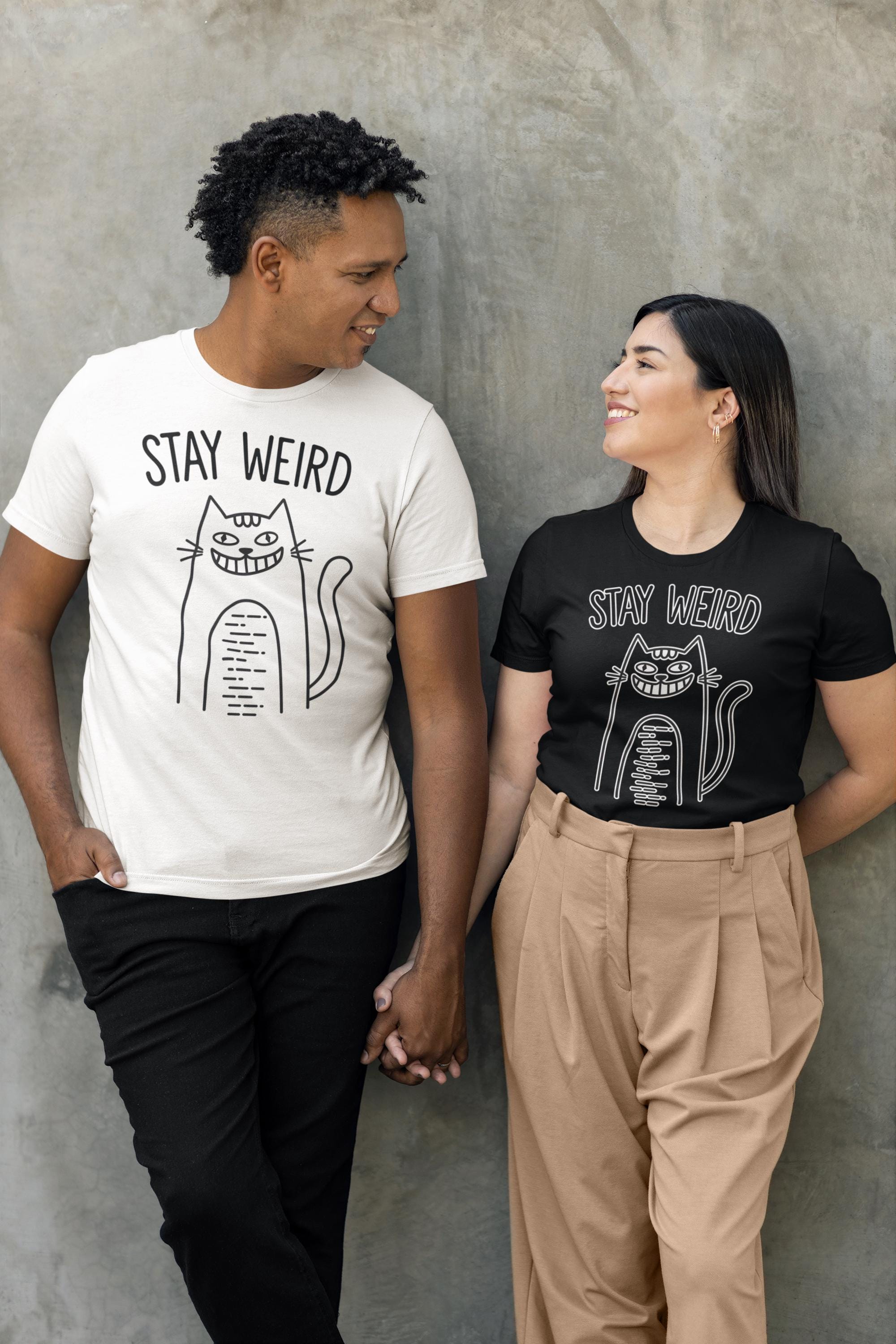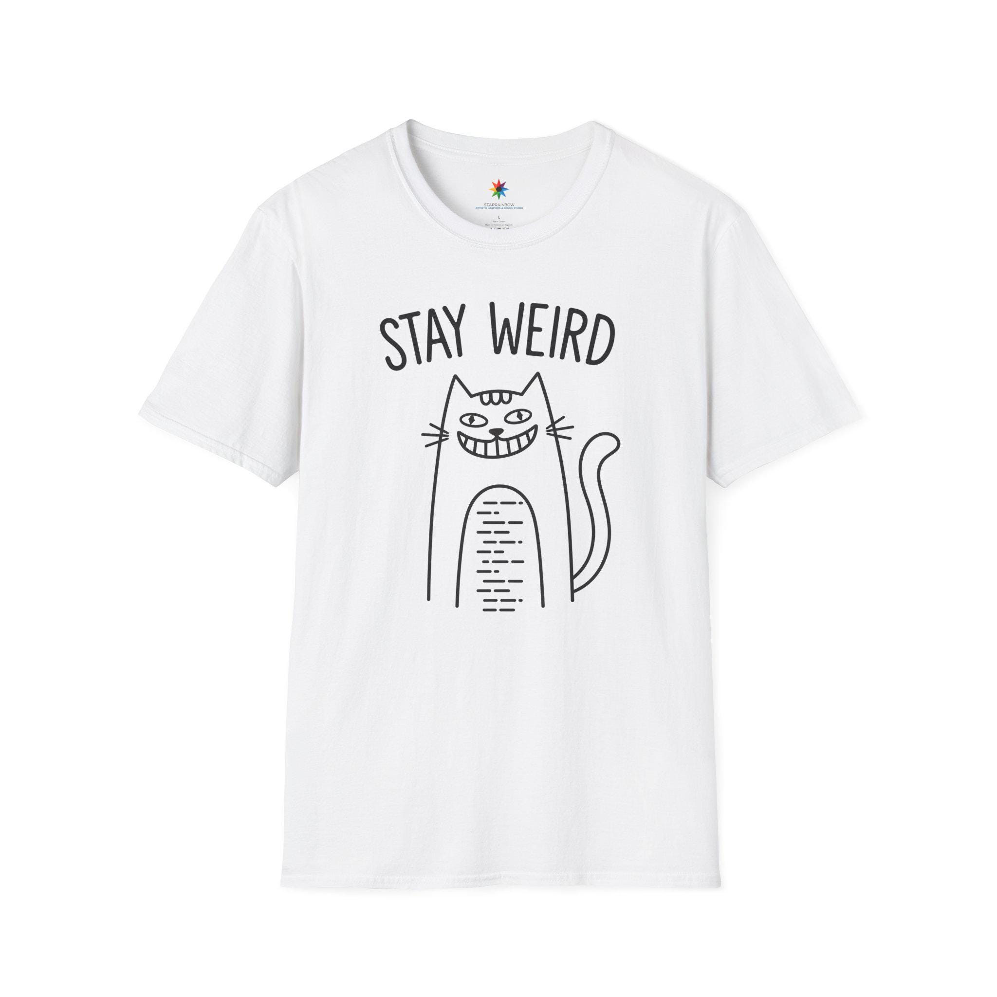 Express your playful side with the Stay Weird Cat T-shirt, a fun and minimal line art feline tee that’s perfect for cat lovers and quirky fashion enthusiasts alike. This unisex casual graphic shirt features a charming hand-drawn illustration of a grinning kitty, showcasing a cute feline sketch design that’s sure to spark smiles wherever you wear it. Made from comfortable, high-quality materials, this versatile tee is ideal for everyday wear, whether you're dressing up for a casual outing or keeping it relaxed at home.