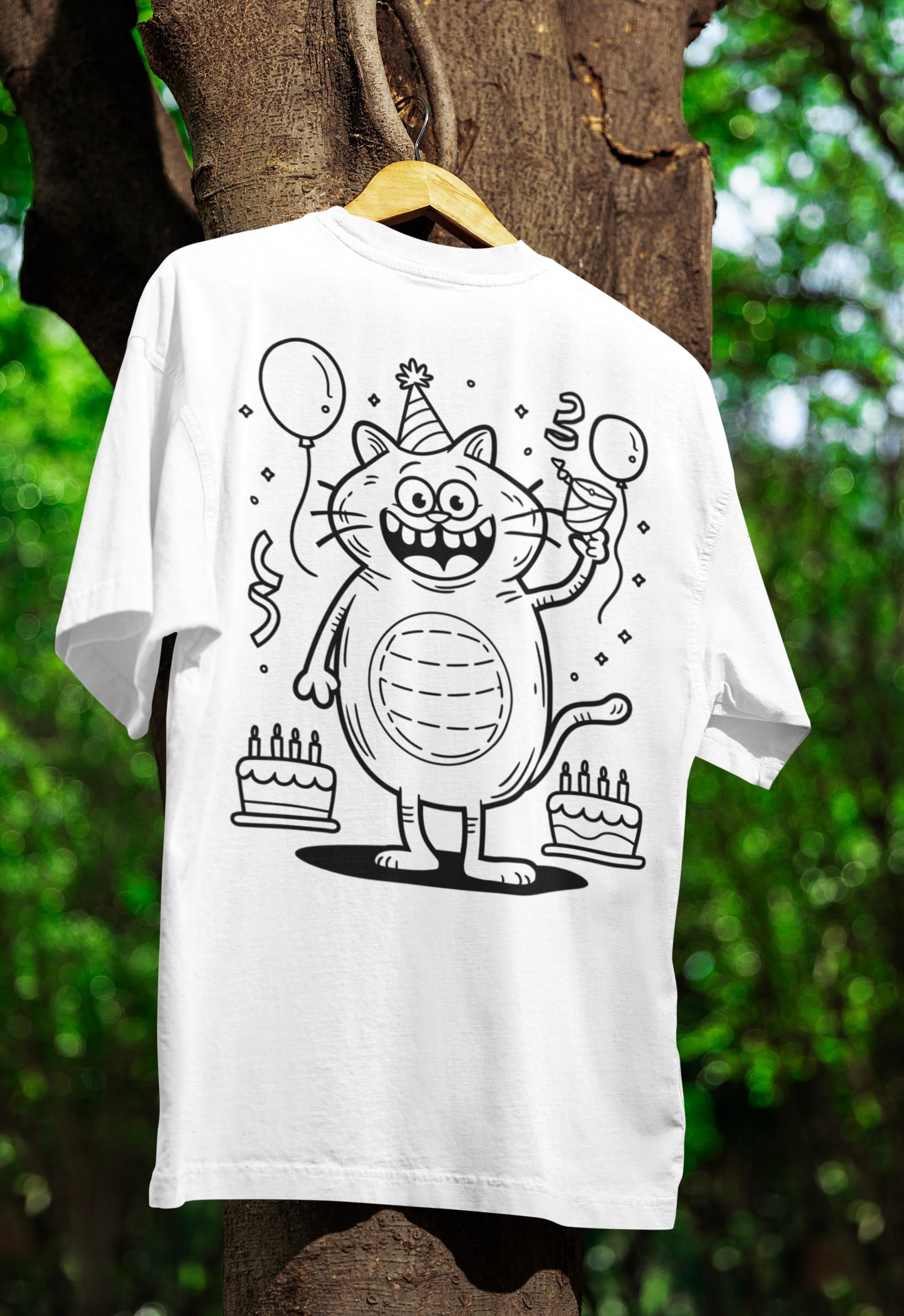 Perfect for birthdays, celebrations, or as a creative gift for cat enthusiasts, this t-shirt is a must-have addition to any wardrobe.