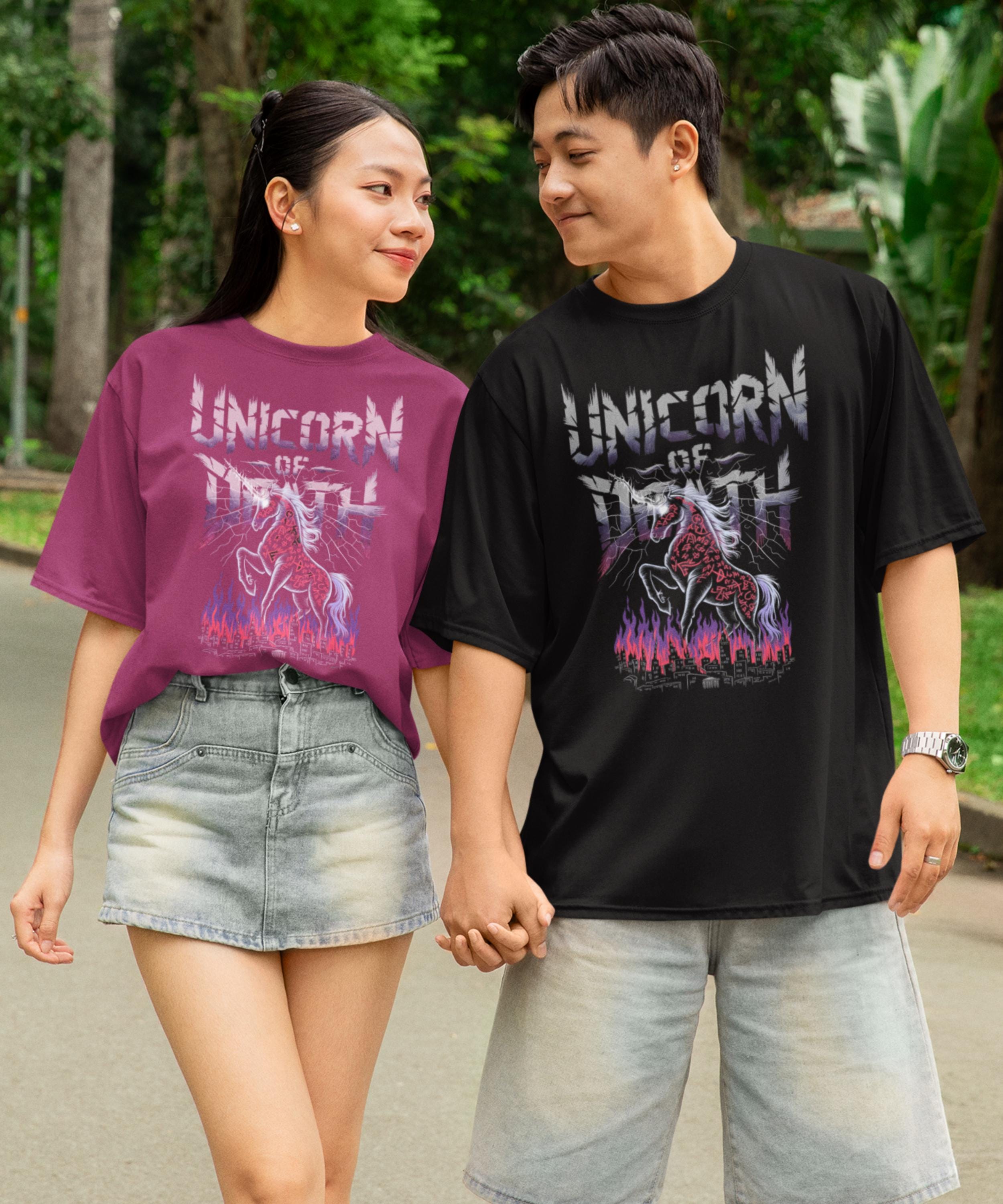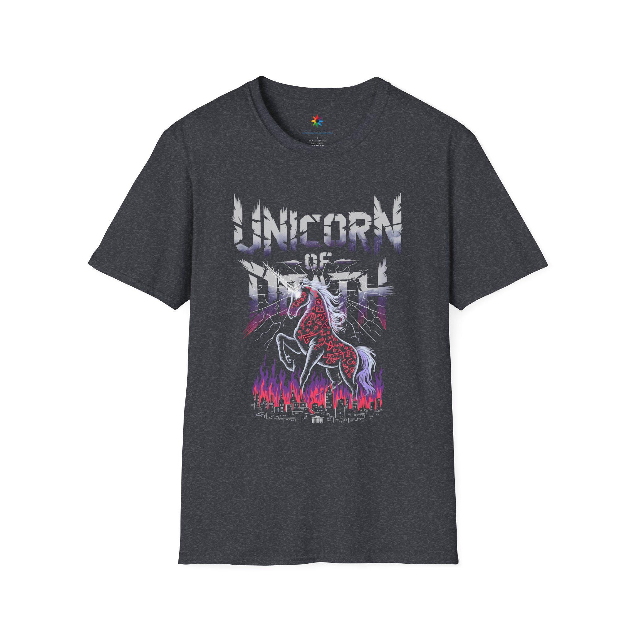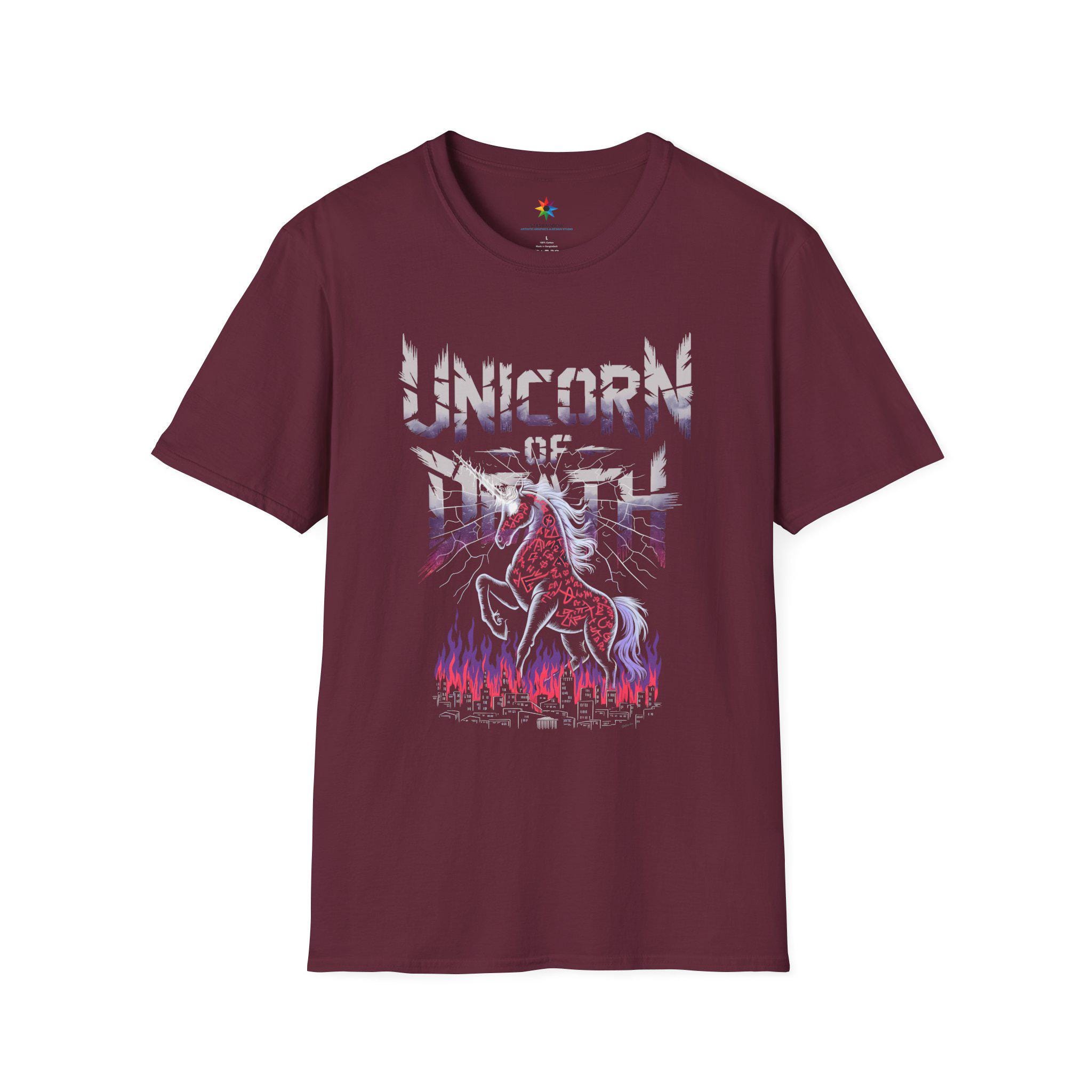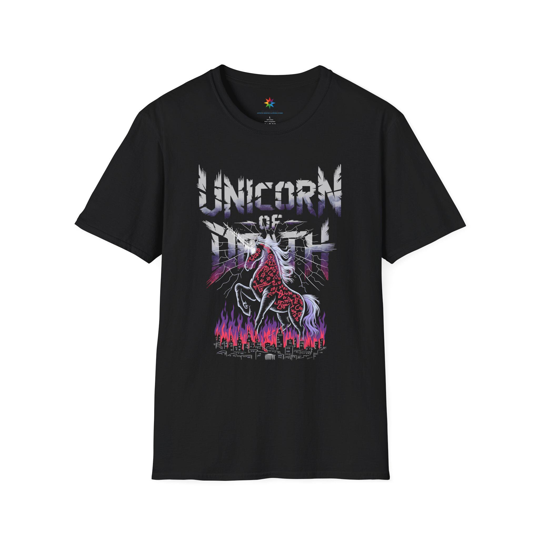 Unleash your dark fantasy and punk rock spirit with the Unicorn of Death Shirt, a heavy metal tee that embodies gothic unicorn aesthetic and mythical rebellion. This striking graphic tee features a skull unicorn amidst an electrifying neon fire and lightning storm backdrop, perfectly capturing the essence of dark fantasy occult style and rebellious punk fashion. Designed for lovers of edgy, alternative looks, this shirt blends mythical horse imagery with apocalyptic themes, making it a bold statement piece for those who embrace the enchanted gothic rocker vibe.