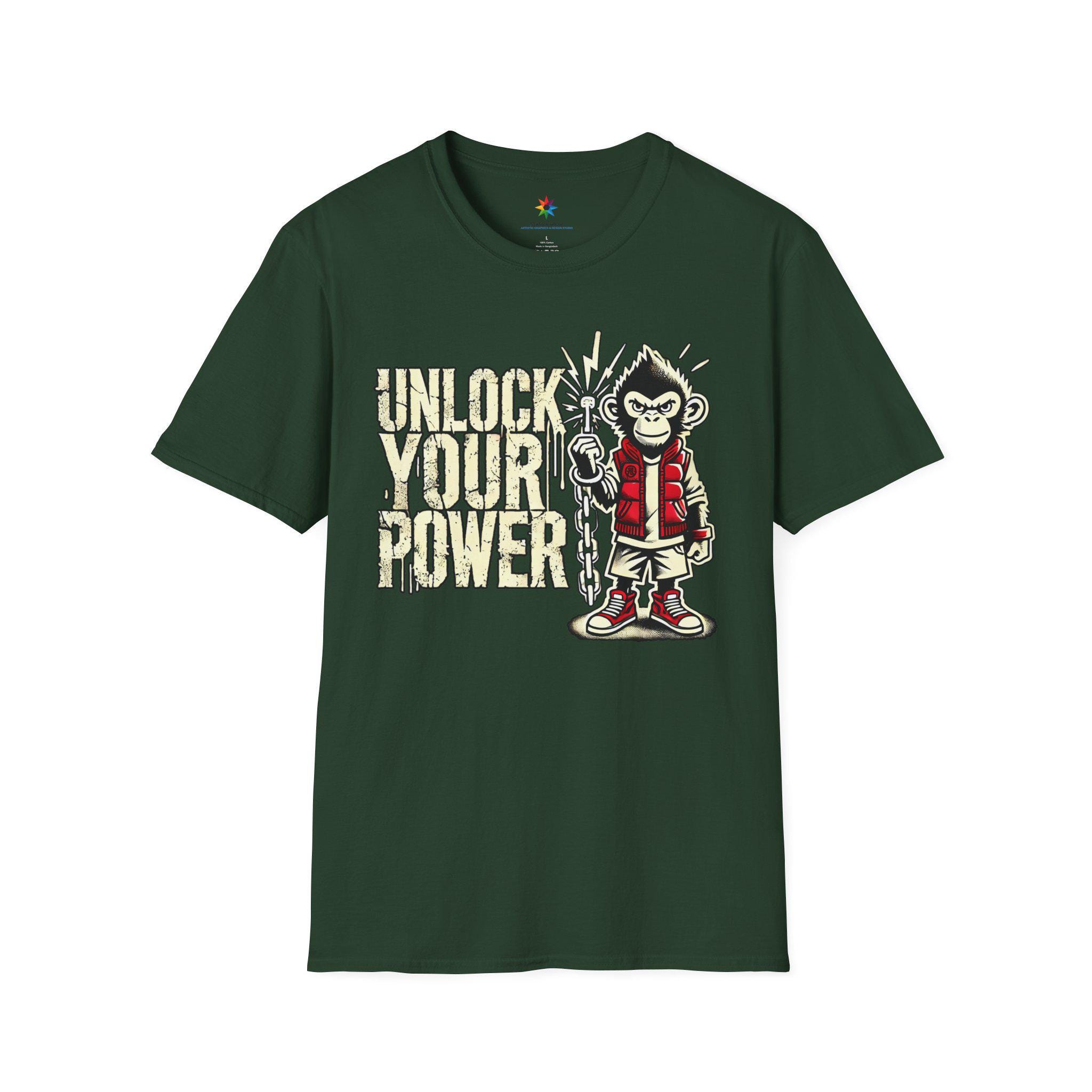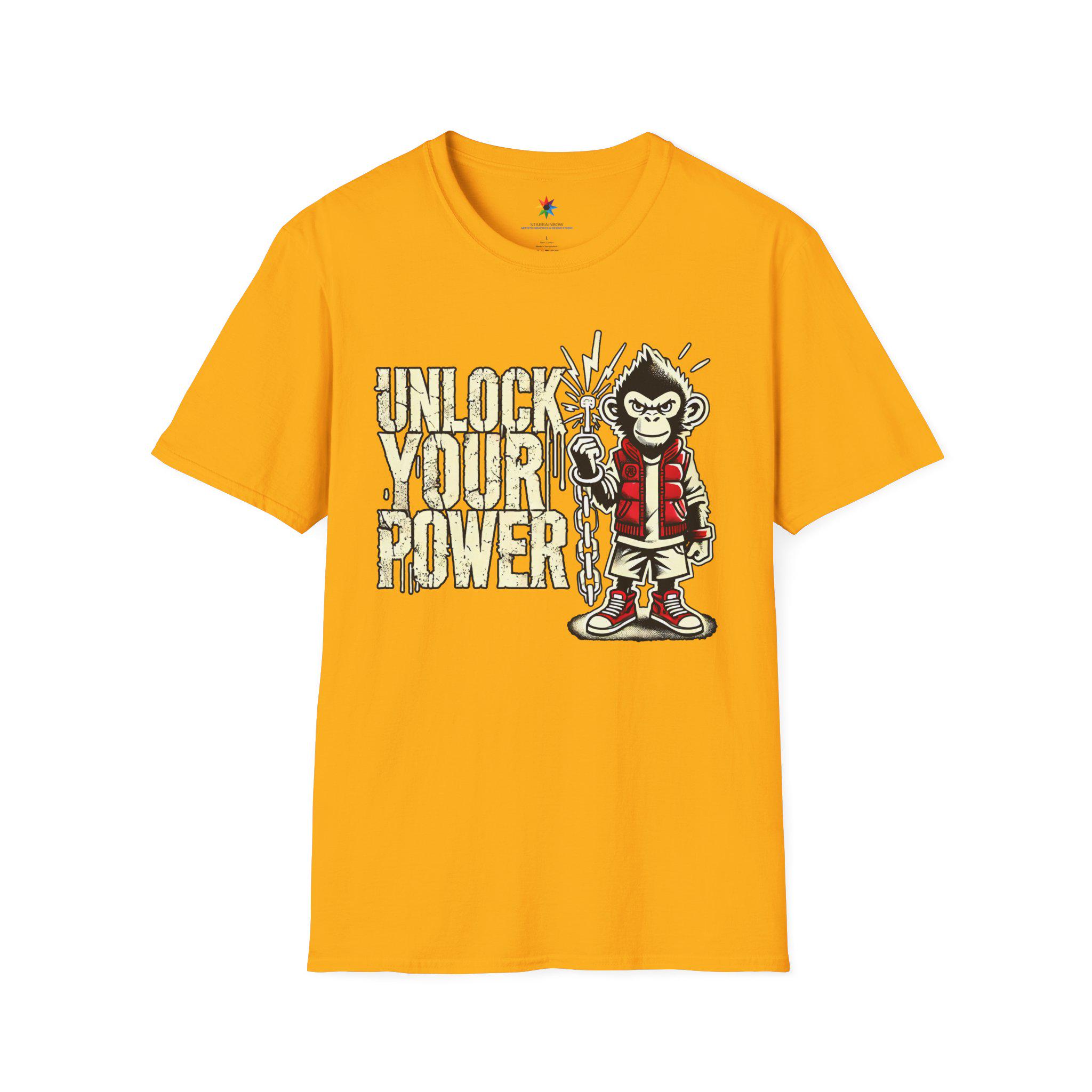 Meet your new favorite graphic tee: the Unlock Your Power Monkey Ape design. This motivational Urban Streetwear TShirt is built for everyday confidence and comfort, featuring a bold distressed vintage finish that looks broken perfectly‑in from day one. The empowerment message “Unlock Your Power” is front and center, and the original primate character stands ready with attitude—making this unisex shirt a statement piece and a cool gift for him or her.