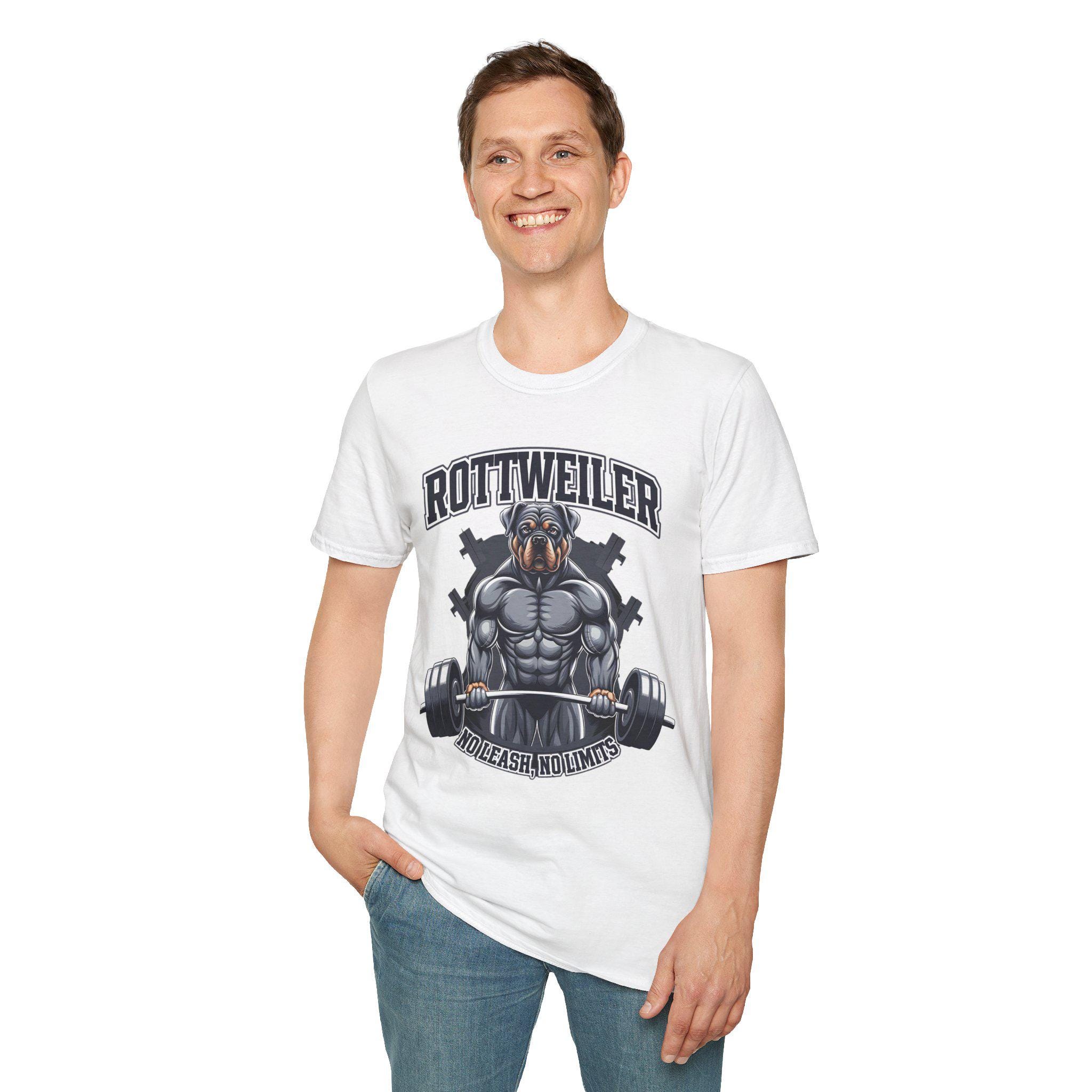 Push your limits with this muscular fitness apparel, designed for those who thrive on power and endurance. Featuring a rottweiler strength art, this powerlifting gym design is the perfect statement piece for hardcore lifters and dedicated athletes. Whether you're into extreme workout graphic styles or just need that extra push in the gym, this tee delivers.