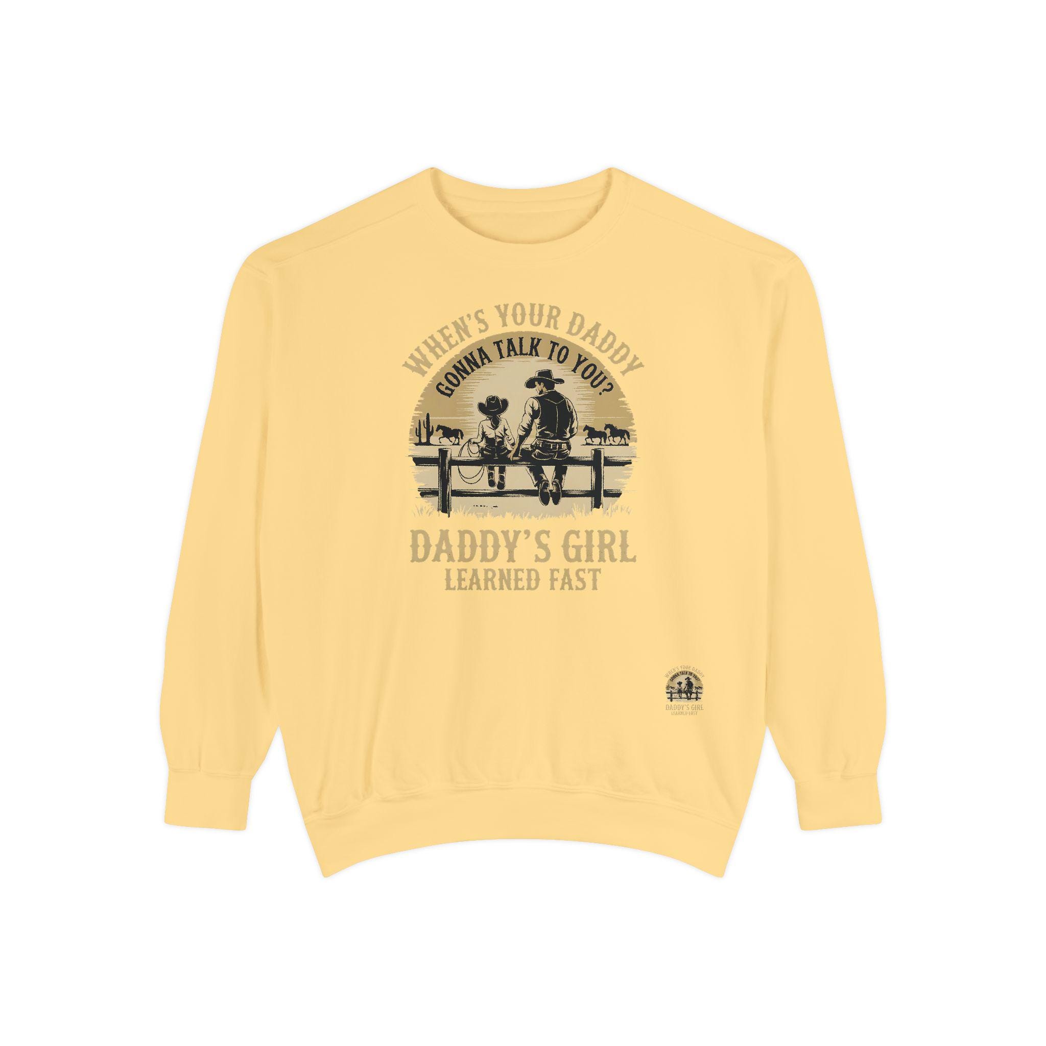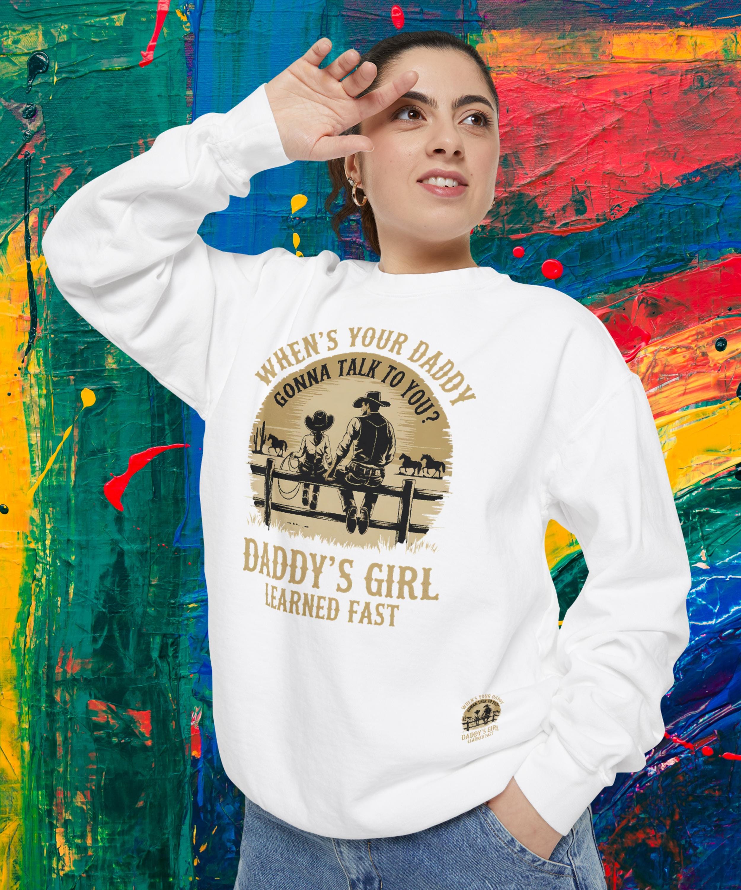 💖 Stay warm and stylish while celebrating the unbreakable bond between a father and daughter! This Daddys Girl Sweatshirt is designed for those who love Western cowboy fashion, rustic ranch aesthetics, and cozy rodeo style. Made for comfort and durability, this pullover is perfect as a Fathers Day gift, a cowboy dad hoodie, or an everyday country aesthetic outfit. Whether you're out on the ranch, attending a rodeo, or just relaxing at home, this Western cowboy hoodie will keep you warm and looking stylish.
