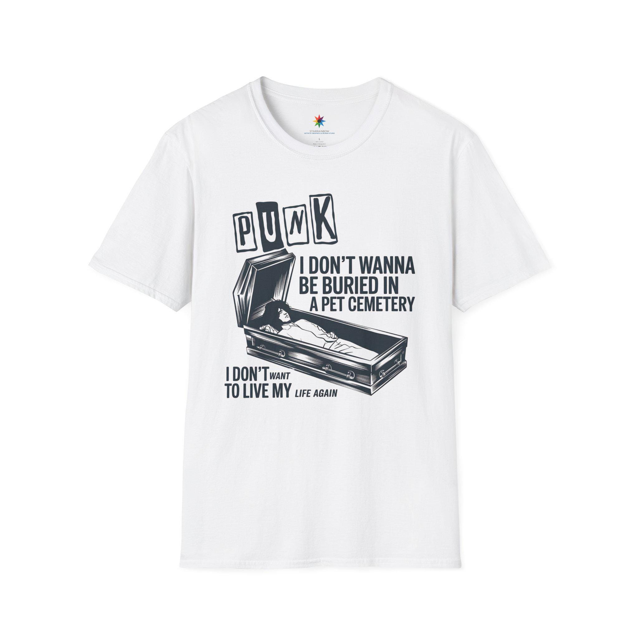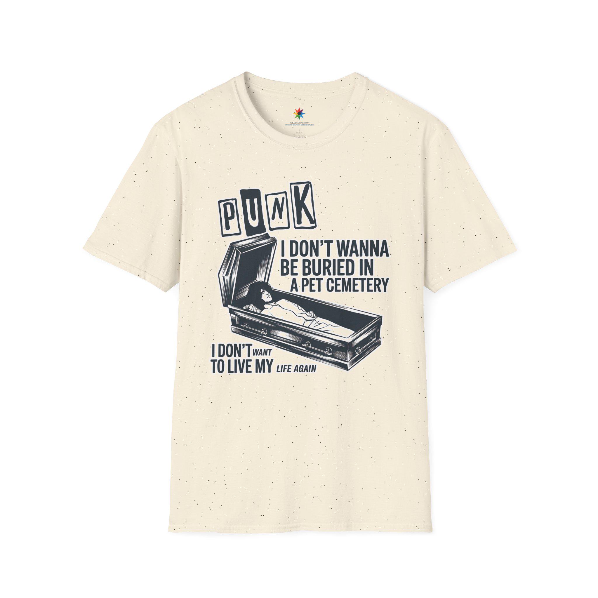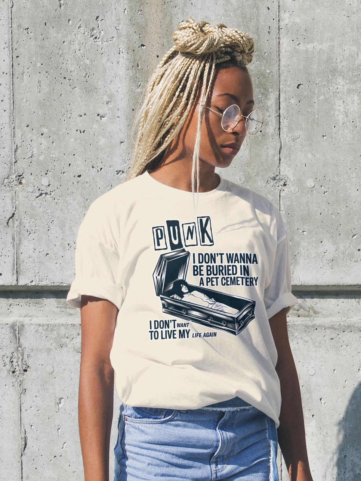 Step into the world of punk rock and horror with this unique pet cemetery-inspired t-shirt, designed for lovers of dark alternative fashion and vintage aesthetic music culture. Whether you're drawn to underground music scenes, spooky aesthetics, or gothic streetwear, this edgy design perfectly captures the rebellious energy of punk rock while embracing eerie horror elements. The haunting imagery and alternative rock vibe make it the perfect outfit for concerts, Halloween parties, or casual everyday wear for those who live and breathe dark music fashion. The design strikingly embodies the fusion of punk attitude and eerie gothic themes, making it a must-have for fans of rock-inspired alternative clothing.