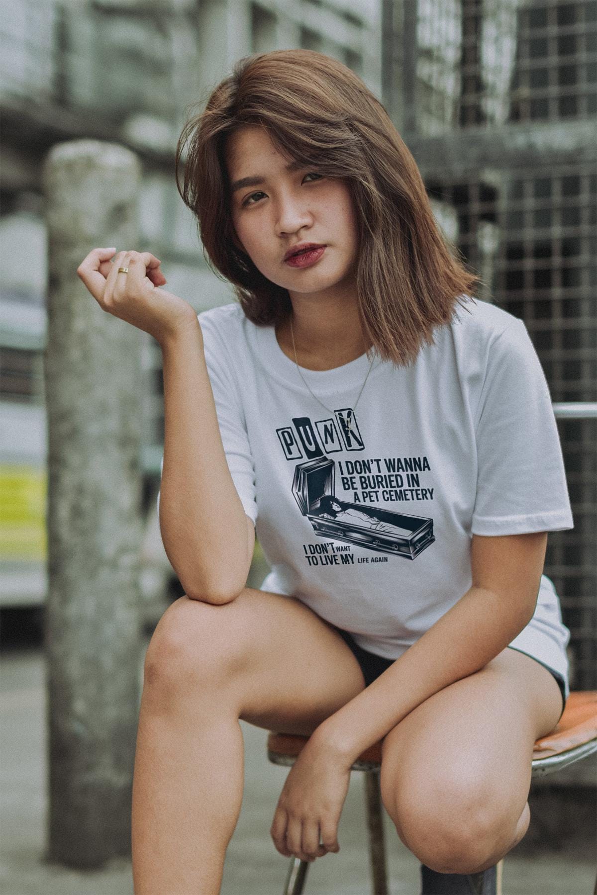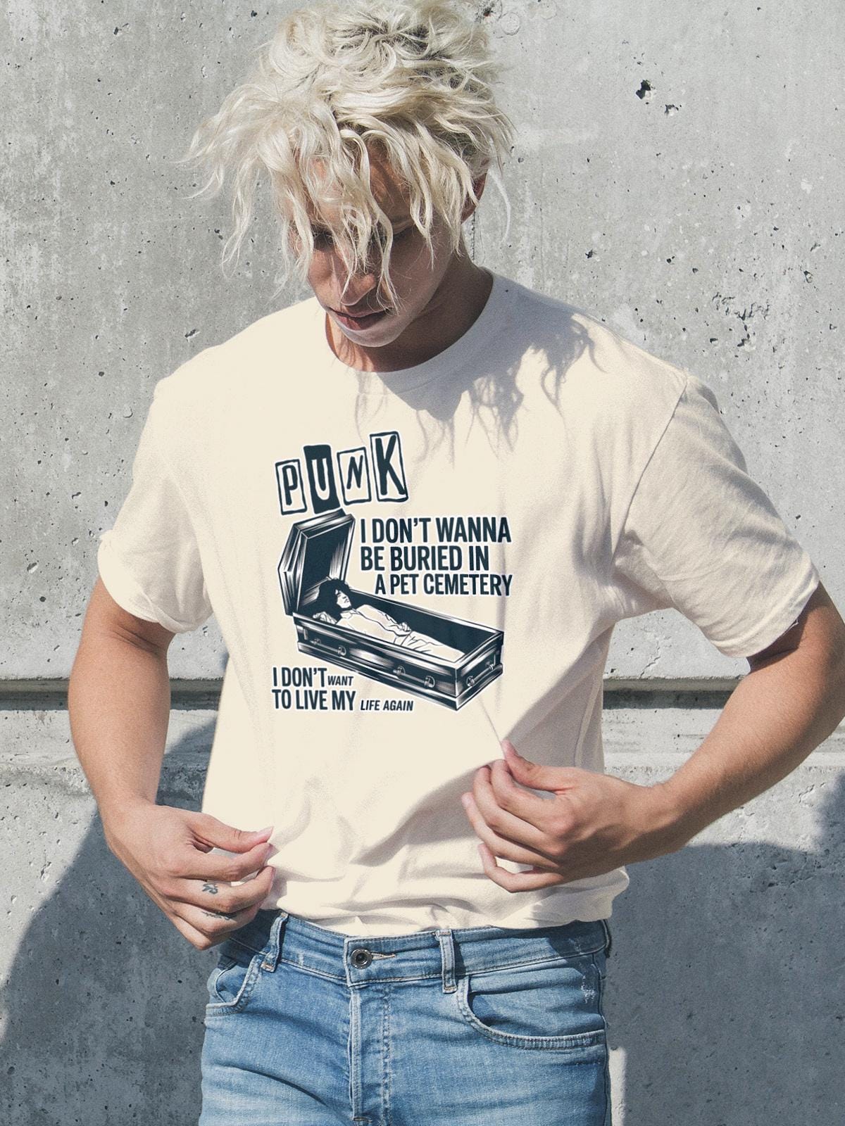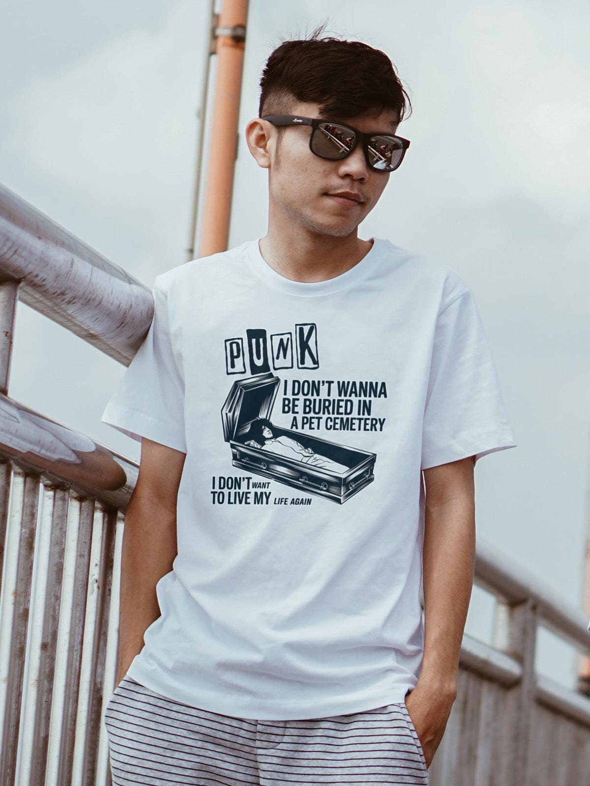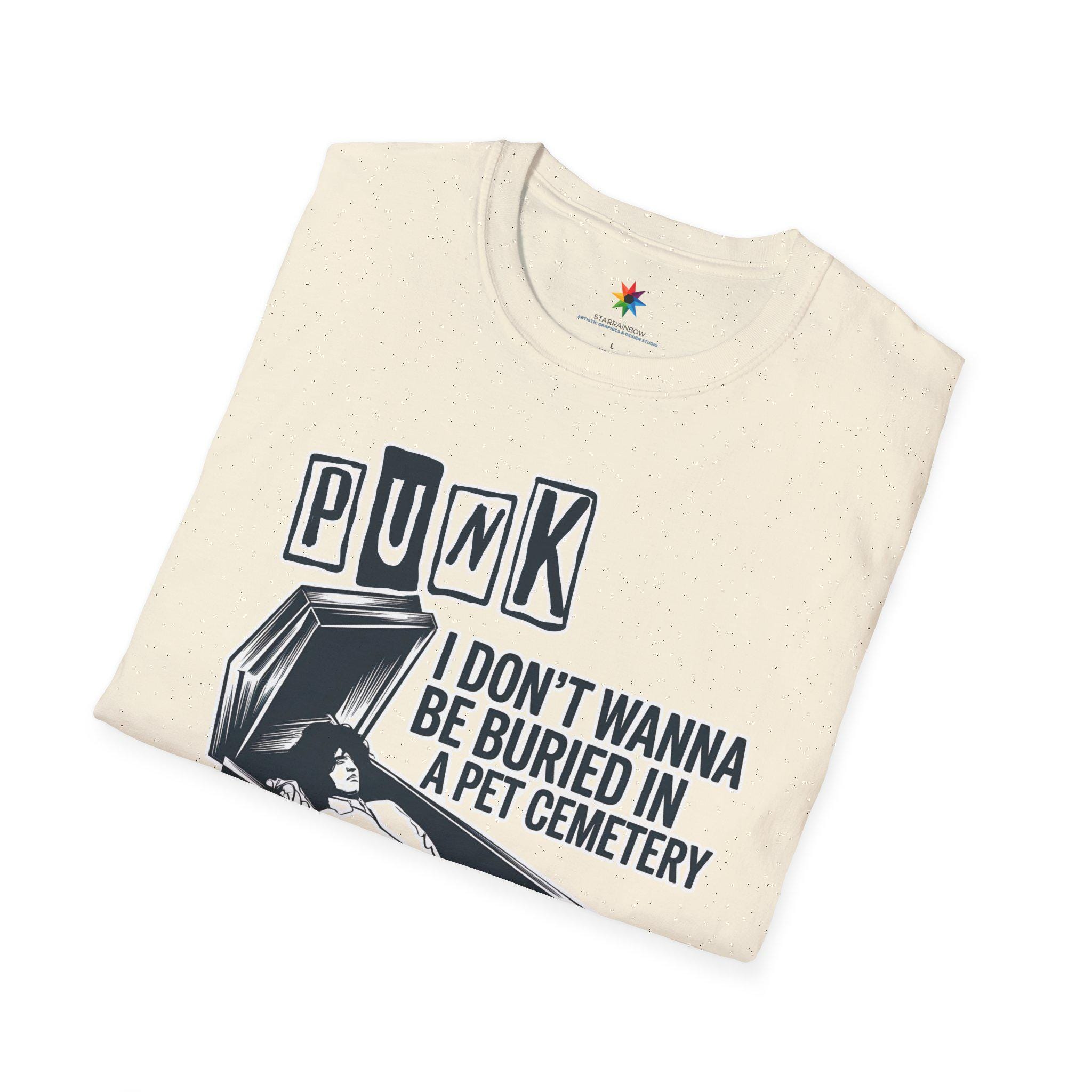 Step into the world of punk rock and horror with this unique pet cemetery-inspired t-shirt, designed for lovers of dark alternative fashion and vintage aesthetic music culture. Whether you're drawn to underground music scenes, spooky aesthetics, or gothic streetwear, this edgy design perfectly captures the rebellious energy of punk rock while embracing eerie horror elements. The haunting imagery and alternative rock vibe make it the perfect outfit for concerts, Halloween parties, or casual everyday wear for those who live and breathe dark music fashion. The design strikingly embodies the fusion of punk attitude and eerie gothic themes, making it a must-have for fans of rock-inspired alternative clothing.