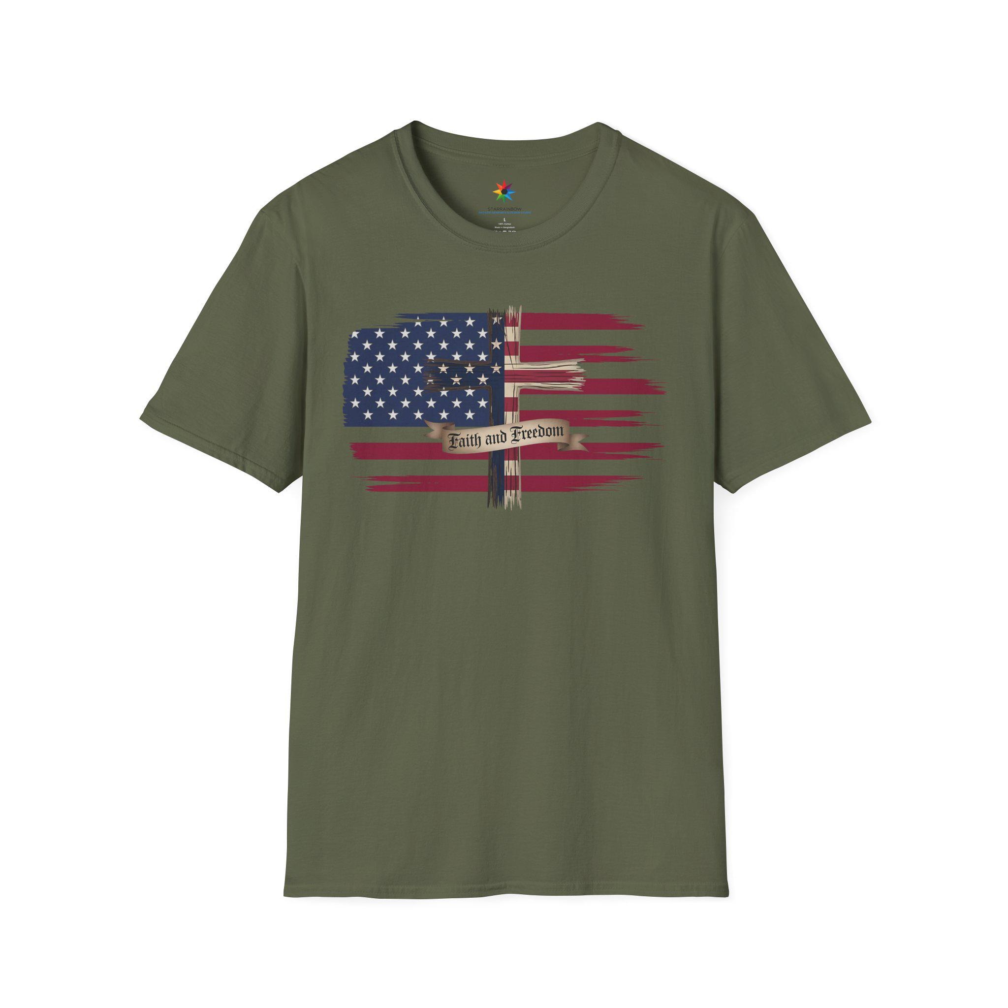Show your unwavering faith and patriotism with this Faith and Freedom Tee! This American Flag Shirt blends Christian values and patriotic pride, making it the perfect choice for anyone who cherishes faith, freedom, and the USA. Featuring a bold USA Flag and a powerful message of faithful Christianity, this shirt is a statement of devotion to God and country.