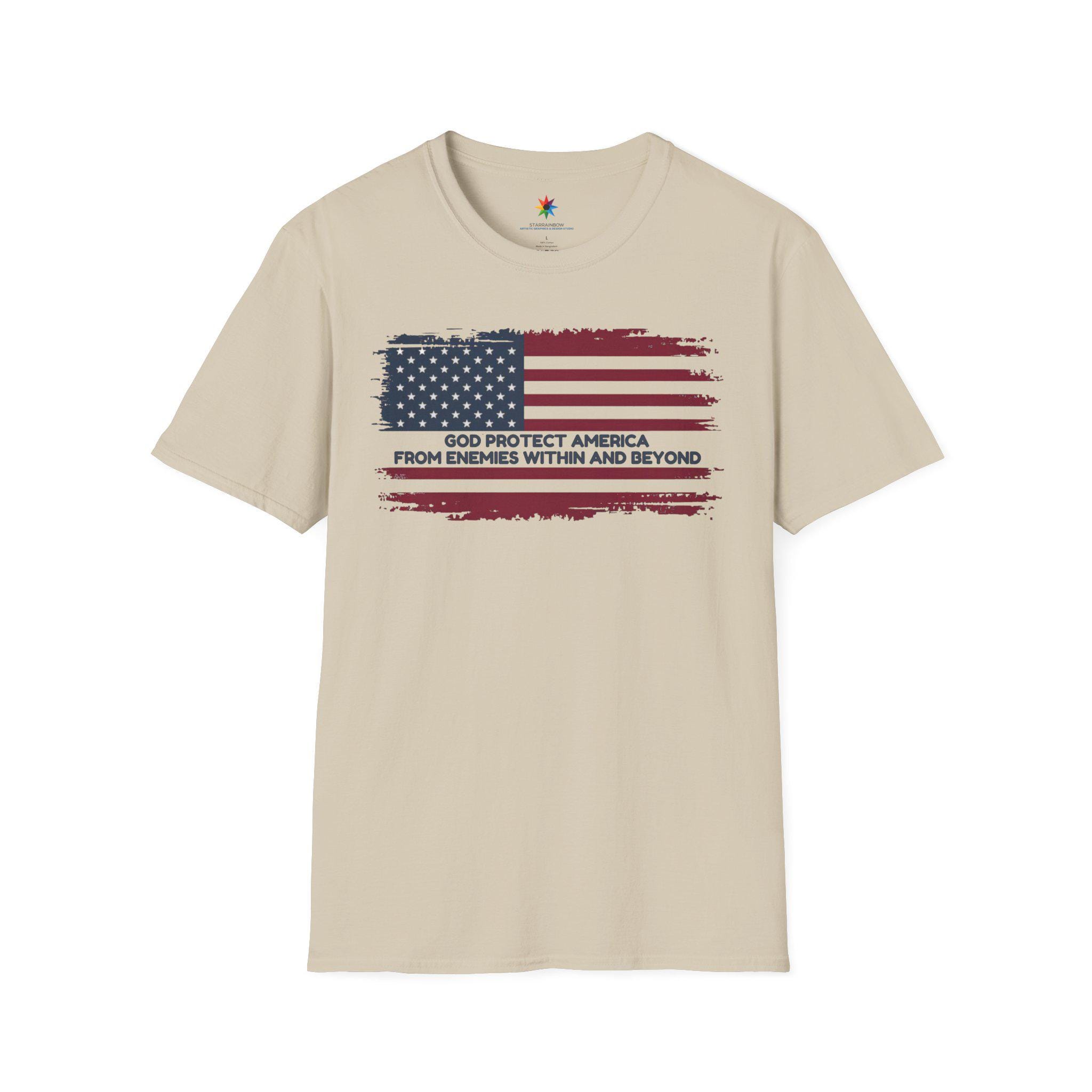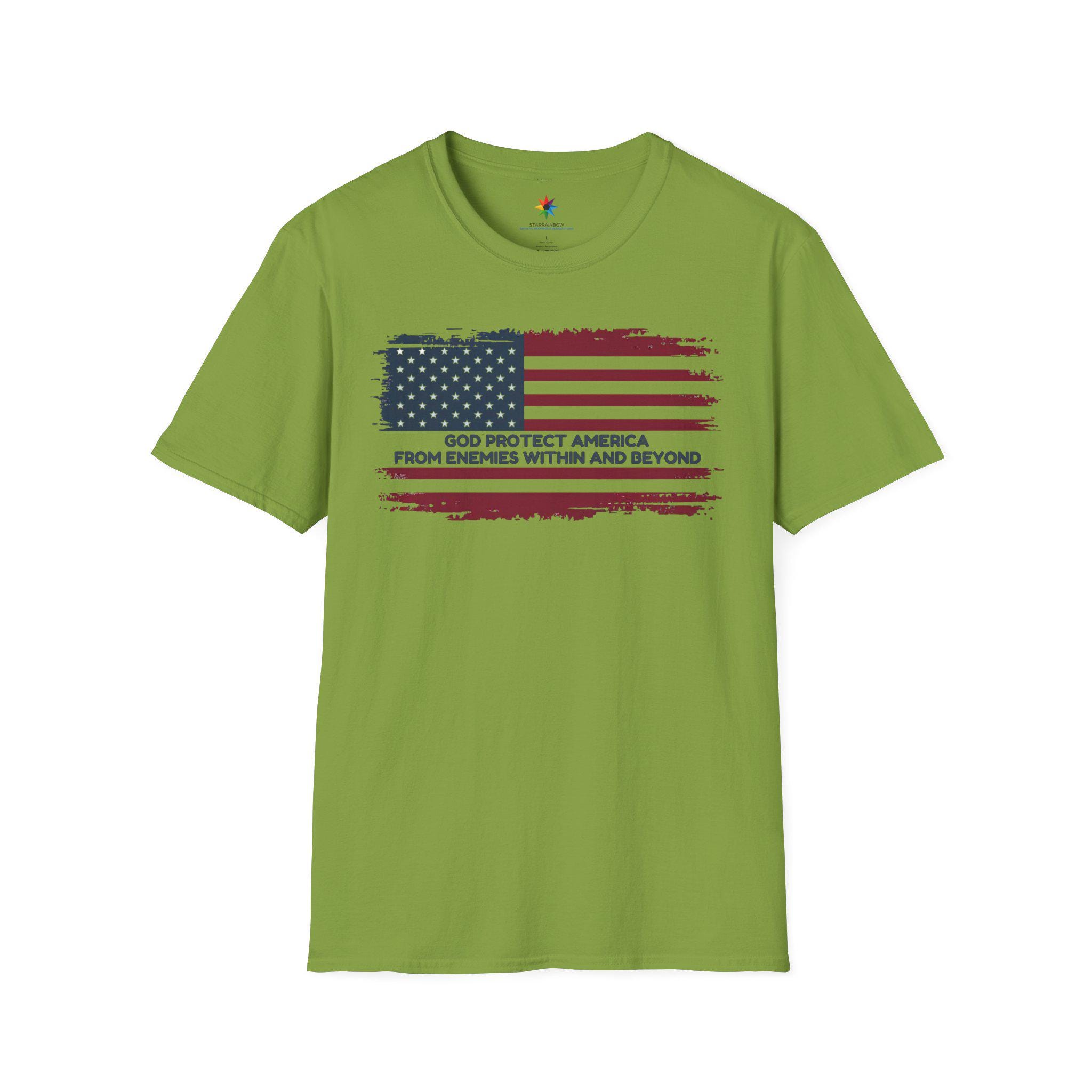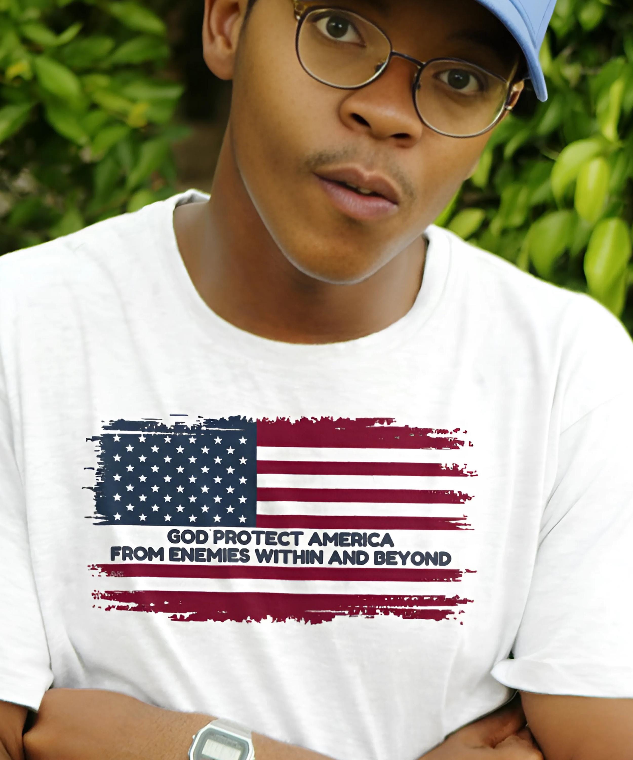This t-shirt carries a powerful plea for God Protect America, a prayer for divine safeguarding over our cherished land. As a proud Patriotic Christian, I wear it to honor my faith and devotion to this nation. We stand united as America Under God, where our values shine as a guiding light for all. The belief in Faith And Freedom drives us to stand tall against any challenge that comes our way. We must remain vigilant against Enemies Within, a threat that tests our unity and resolve. Together, we Protect America, ensuring its legacy endures for future generations. I'm a Christian Patriot, blending my devotion with unwavering loyalty to my country. This design reflects true American Values, the foundation of our great nation's spirit. With everyone wear, I say God Bless USA, a heartfelt prayer for peace and prosperity. It symbolizes Conservative Pride, honoring the principles that built this land. Our Freedom Through Faith reminds us that liberty is a sacred gift worth defending. Let's Pray For America, uniting in hope for a brighter and stronger future. My Patriotic Faith fuels my dedication to this noble cause. As an America First Christian, I prioritize the strength and unity of our nation. We trust in Divine Protection, a shield against all adversities in our face. The Patriot Prayer on this shirt echoes our collective plea for guidance and strength. We hold fast to Traditional Values, the bedrock of our national identity. It celebrates God And Country, a sacred bond that defines who we are. This design captures American Spirituality, a deep connection to our roots and beliefs. I'm a Faithful Patriot, standing firm in my love for this land. We must Defend America, safeguarding it against all threats with courage. Some may call it a Christian Nationalist stance, but it's about love for our nation. This shirt declares America Blessed, a land favored by grace and divine care. As a Patriotic Believer, I wear it with deep reverence and pride. I believe in Gods Protection, a promise of safety for our people. It reflects my Conservative Faith, steadfast and true to our principles. It honors our American Heritage, a legacy worth preserving for all time. As a Spiritual Patriot, I feel the soul of this nation in every thread of this shirt. We must Protect Our Nation, ensuring its future shines bright and free. I'm a Faithful American, proud to wear this message of hope and unity.