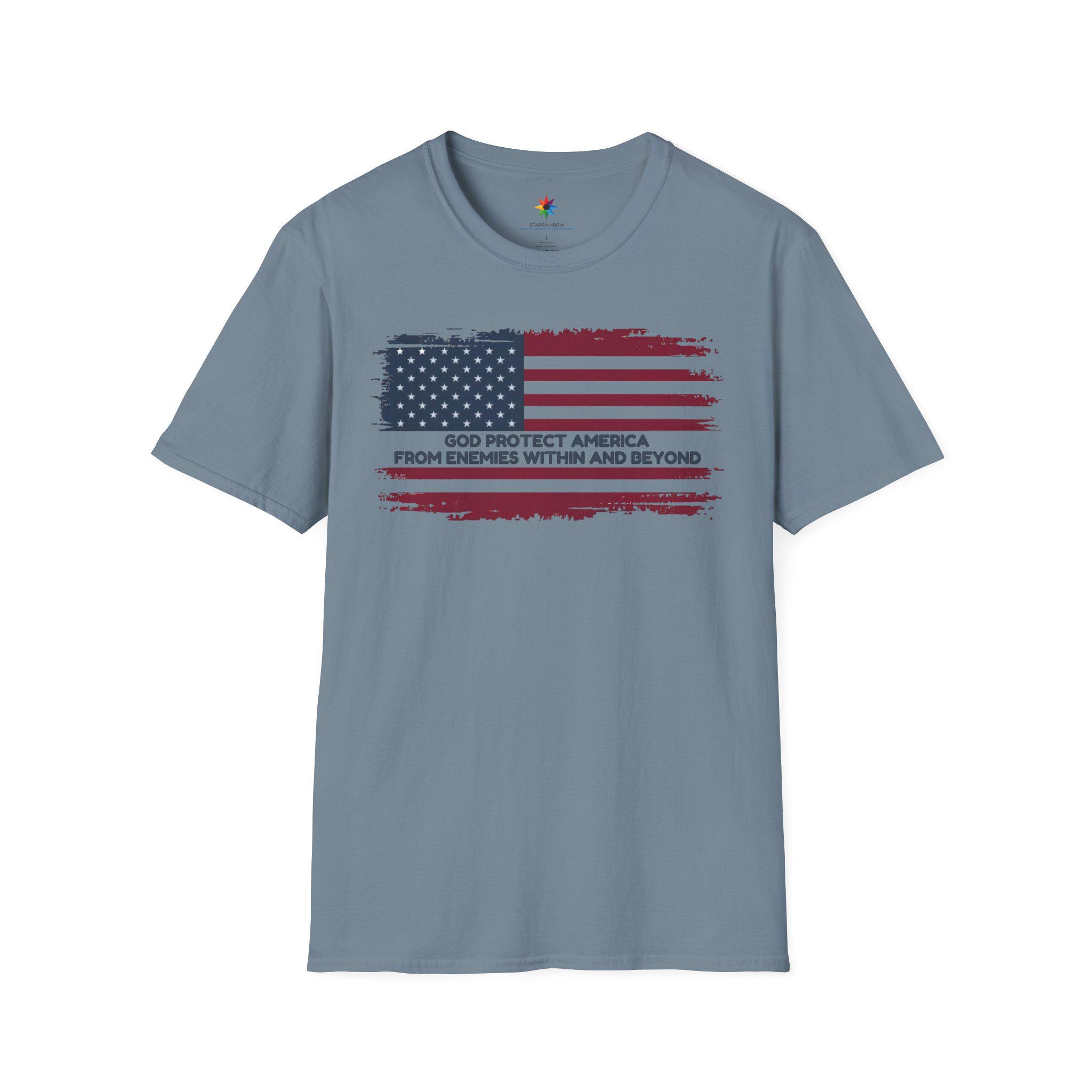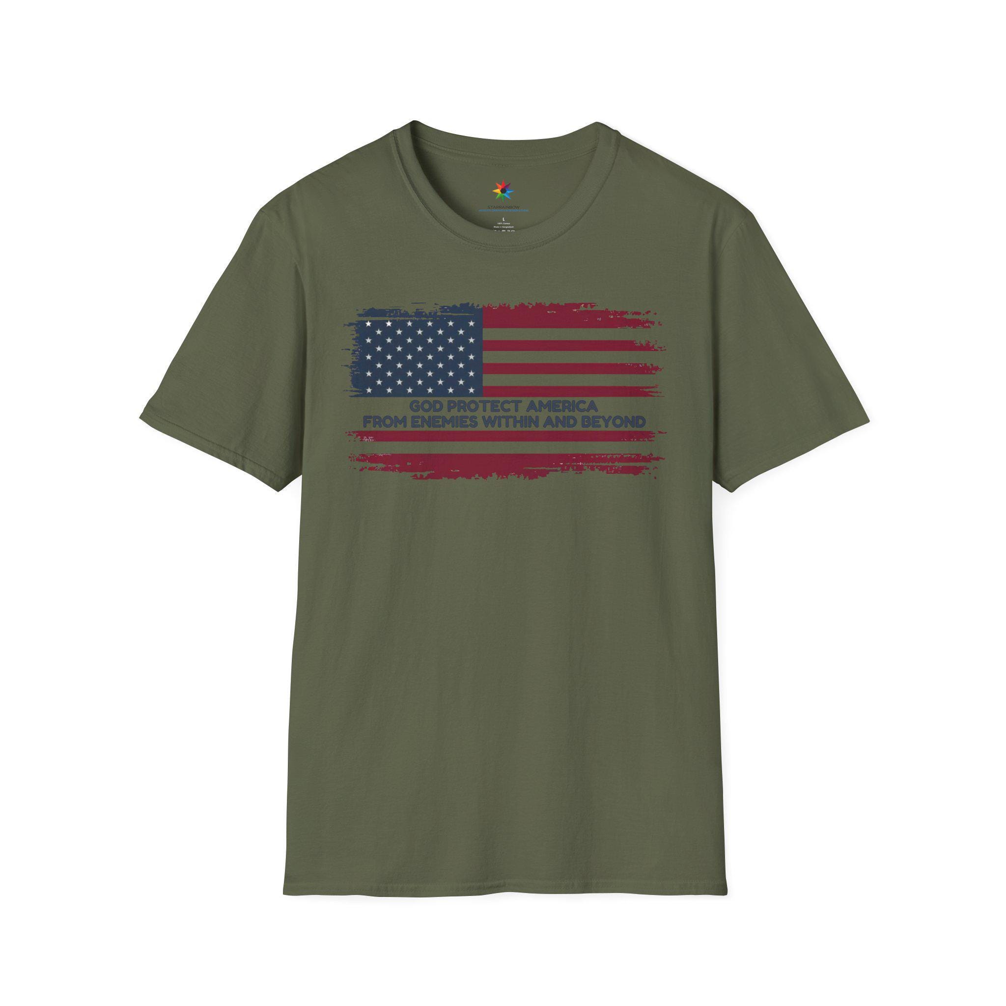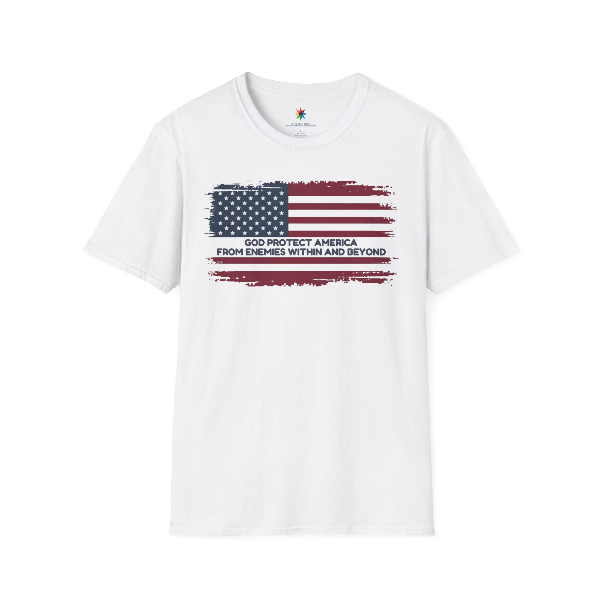 This t-shirt carries a powerful plea for God Protect America, a prayer for divine safeguarding over our cherished land. As a proud Patriotic Christian, I wear it to honor my faith and devotion to this nation. We stand united as America Under God, where our values shine as a guiding light for all. The belief in Faith And Freedom drives us to stand tall against any challenge that comes our way. We must remain vigilant against Enemies Within, a threat that tests our unity and resolve. Together, we Protect America, ensuring its legacy endures for future generations. I'm a Christian Patriot, blending my devotion with unwavering loyalty to my country. This design reflects true American Values, the foundation of our great nation's spirit. With everyone wear, I say God Bless USA, a heartfelt prayer for peace and prosperity. It symbolizes Conservative Pride, honoring the principles that built this land. Our Freedom Through Faith reminds us that liberty is a sacred gift worth defending. Let's Pray For America, uniting in hope for a brighter and stronger future. My Patriotic Faith fuels my dedication to this noble cause. As an America First Christian, I prioritize the strength and unity of our nation. We trust in Divine Protection, a shield against all adversities in our face. The Patriot Prayer on this shirt echoes our collective plea for guidance and strength. We hold fast to Traditional Values, the bedrock of our national identity. It celebrates God And Country, a sacred bond that defines who we are. This design captures American Spirituality, a deep connection to our roots and beliefs. I'm a Faithful Patriot, standing firm in my love for this land. We must Defend America, safeguarding it against all threats with courage. Some may call it a Christian Nationalist stance, but it's about love for our nation. This shirt declares America Blessed, a land favored by grace and divine care. As a Patriotic Believer, I wear it with deep reverence and pride. I believe in Gods Protection, a promise of safety for our people. It reflects my Conservative Faith, steadfast and true to our principles. It honors our American Heritage, a legacy worth preserving for all time. As a Spiritual Patriot, I feel the soul of this nation in every thread of this shirt. We must Protect Our Nation, ensuring its future shines bright and free. I'm a Faithful American, proud to wear this message of hope and unity.