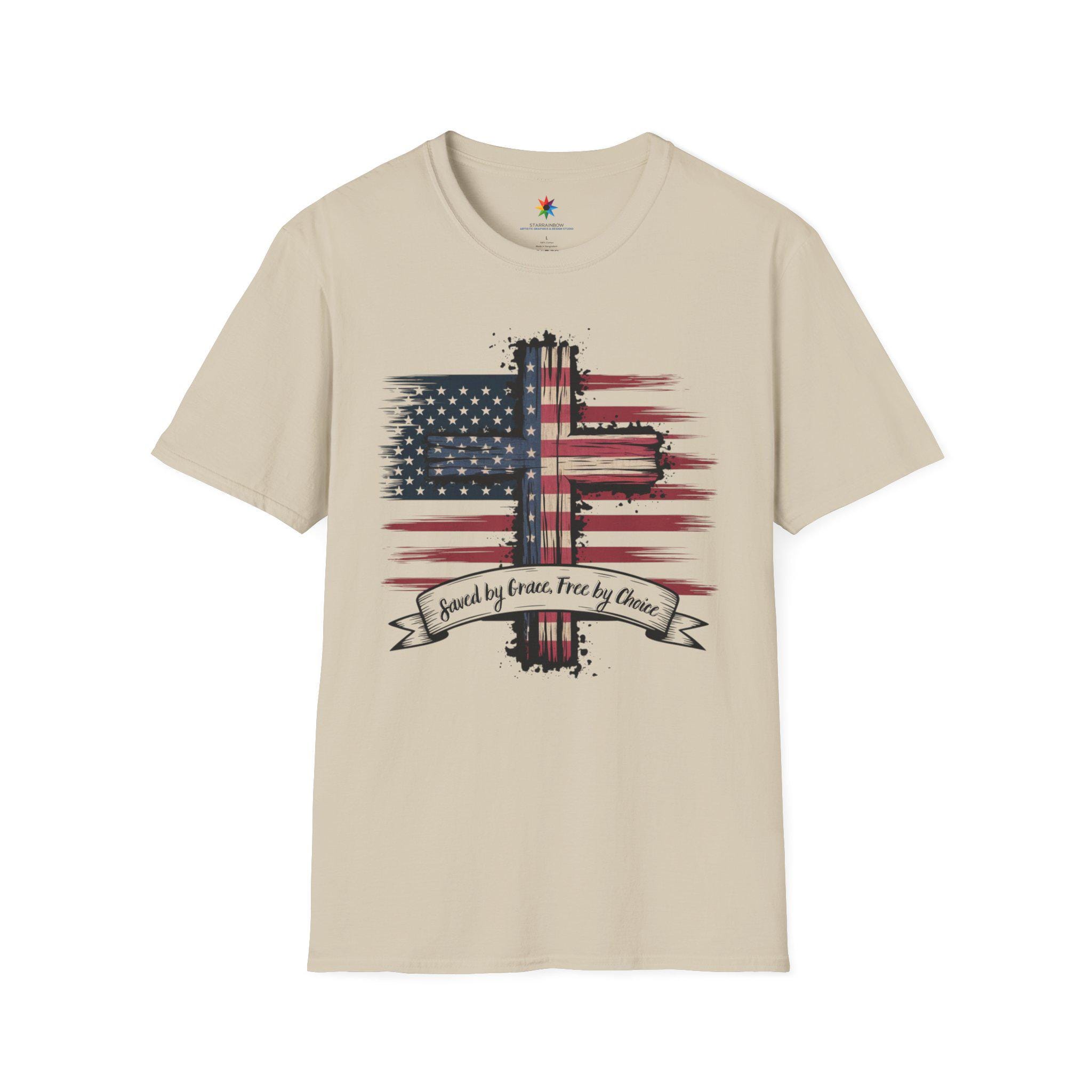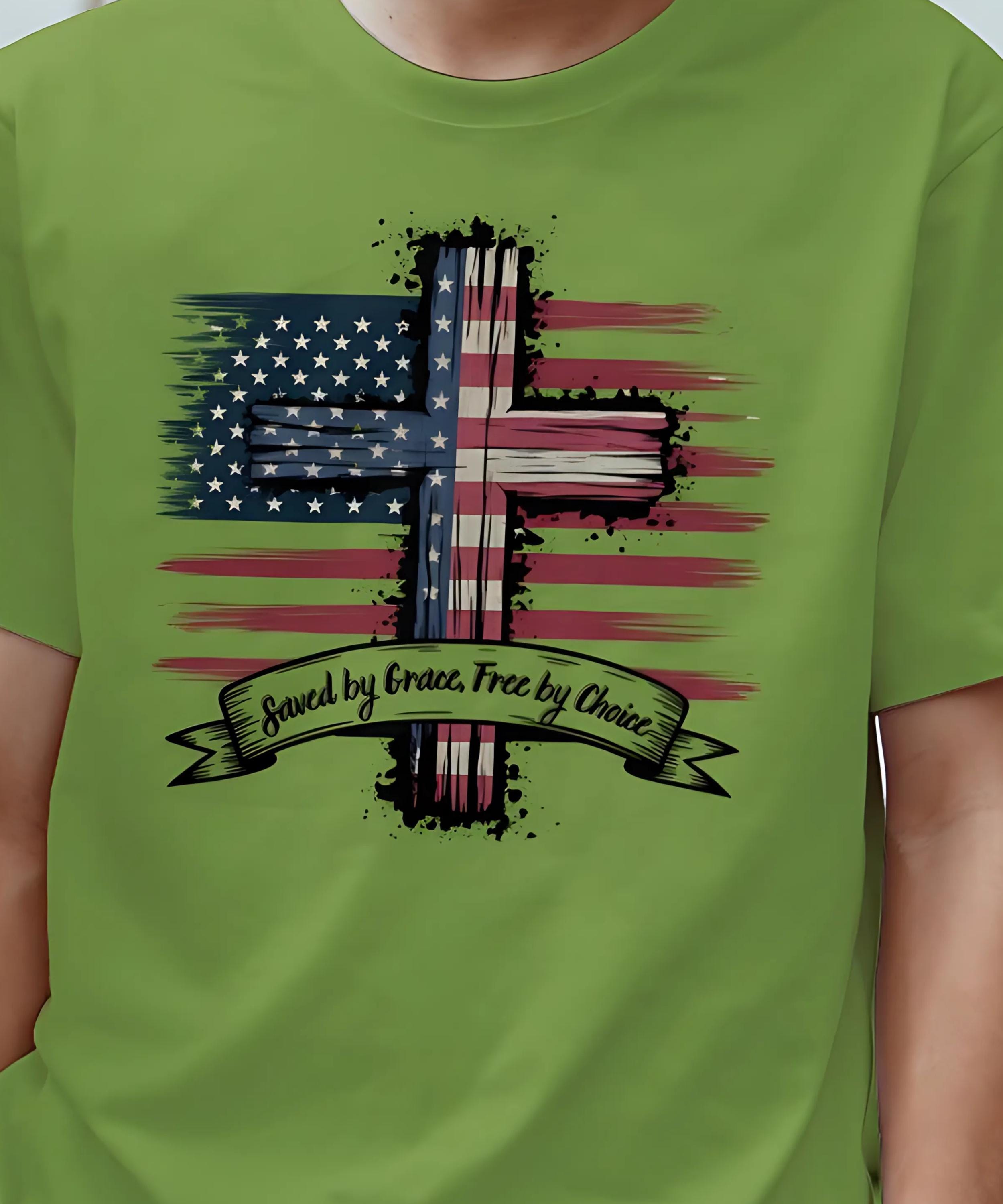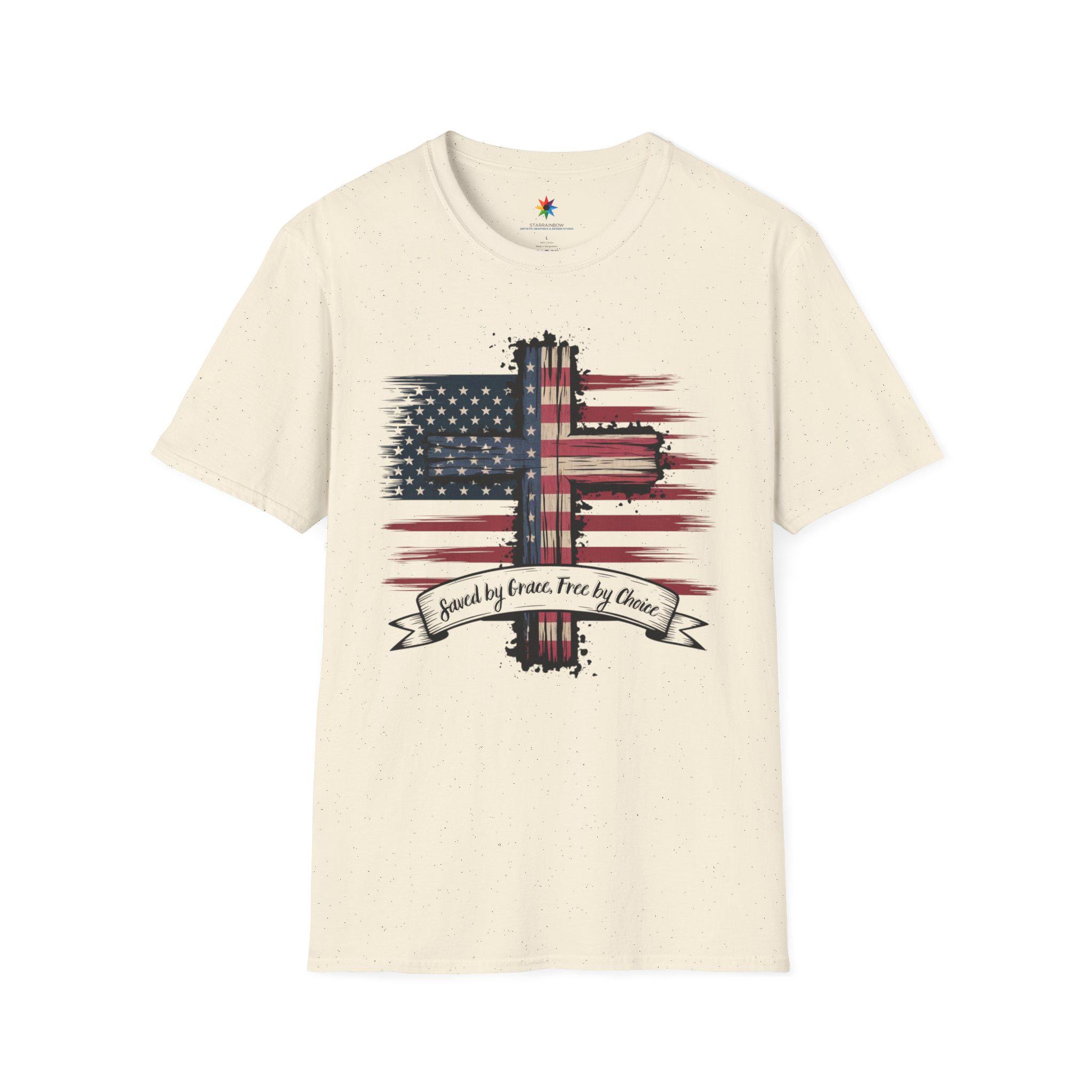 This design begins with the inspiring promise of Saved by Grace, a divine gift that lifts our spirits high. It celebrates the liberty of Free by Choice, a testament to the freedom we hold dear in this land. Woven into its essence is the pride of Shirt USA, a symbol of unity across our nation. As a Patriot, I stand tall, embracing the strength of Freedom Tee that flows through our history. The bold USA Flag Shirte waves with honor, a beacon of hope for all who see it. This embodies Patriotism Christian, blending faith and love for country in every detail. The beauty of the American Flag shines, reflecting the spirit of a land built on faith. It serves as a Gift, a token of appreciation for those who cherish our heritage. The message of Godly American inspires, rooting our identity in divine grace. As a proud American, I carry this vision of unity and strength. The politics patriot shirt reminds us of the values that guide our governance with courage. This becomes an american flag gift, a tribute to the stars and stripes we adore. The faithful christianity tee uplifts, connecting us to a higher calling with every wear. It reflects faithfully gifted, a blessing bestowed upon a nation of believers. The gifted faith within this design shines, a light of hope for all. We embrace the free dom tee, a celebration of liberty earned through sacrifice. The spirit of freedome flows, a timeless ideal that defines us. The usa freedom political shirt stands for a nation governed by liberty and justice. This merges into a patriotism christianity tee, uniting devotion and national pride. Finally, the Faith and Freedom Tee crowns this journey, a harmonious blend of belief and liberty that honors our land's enduring soul.
