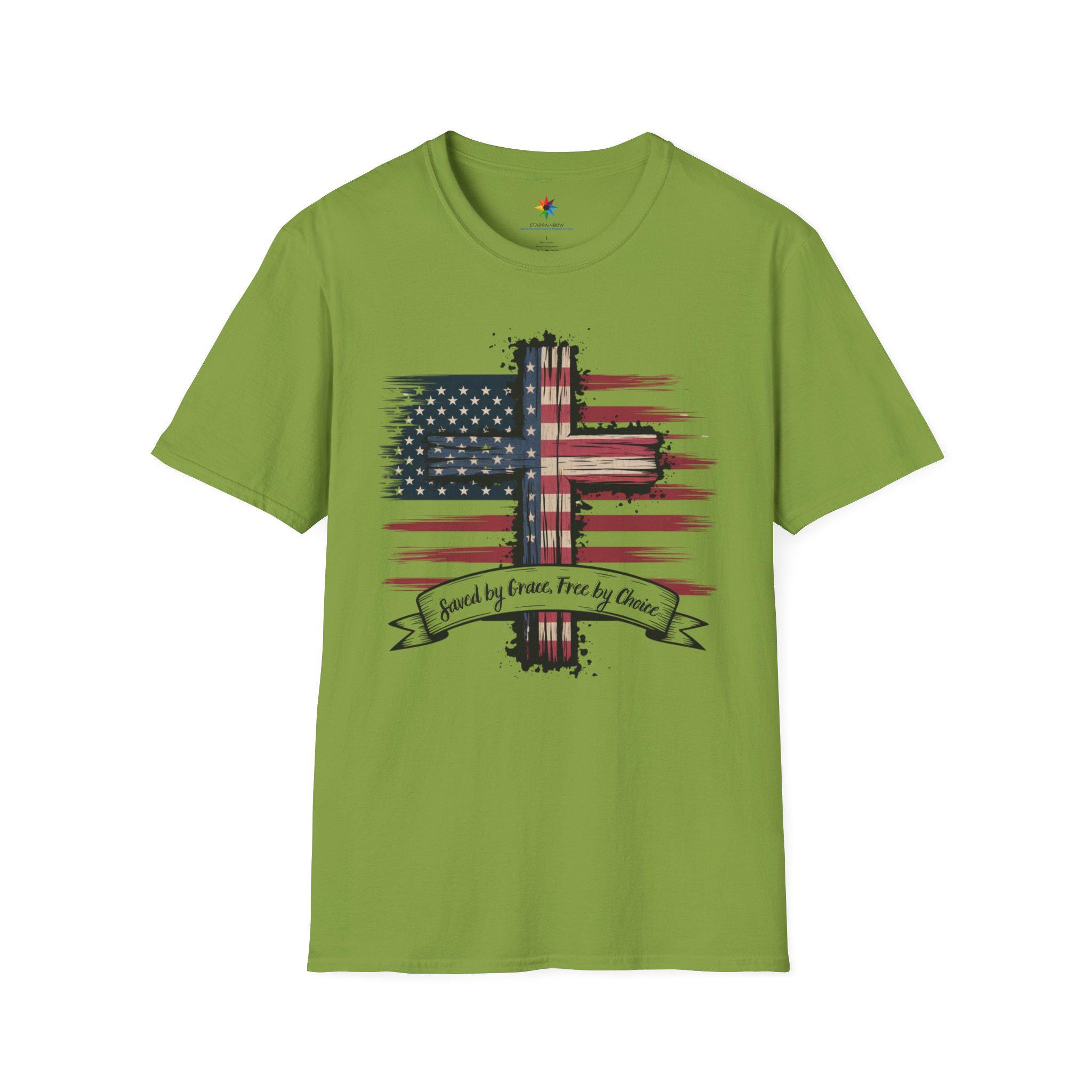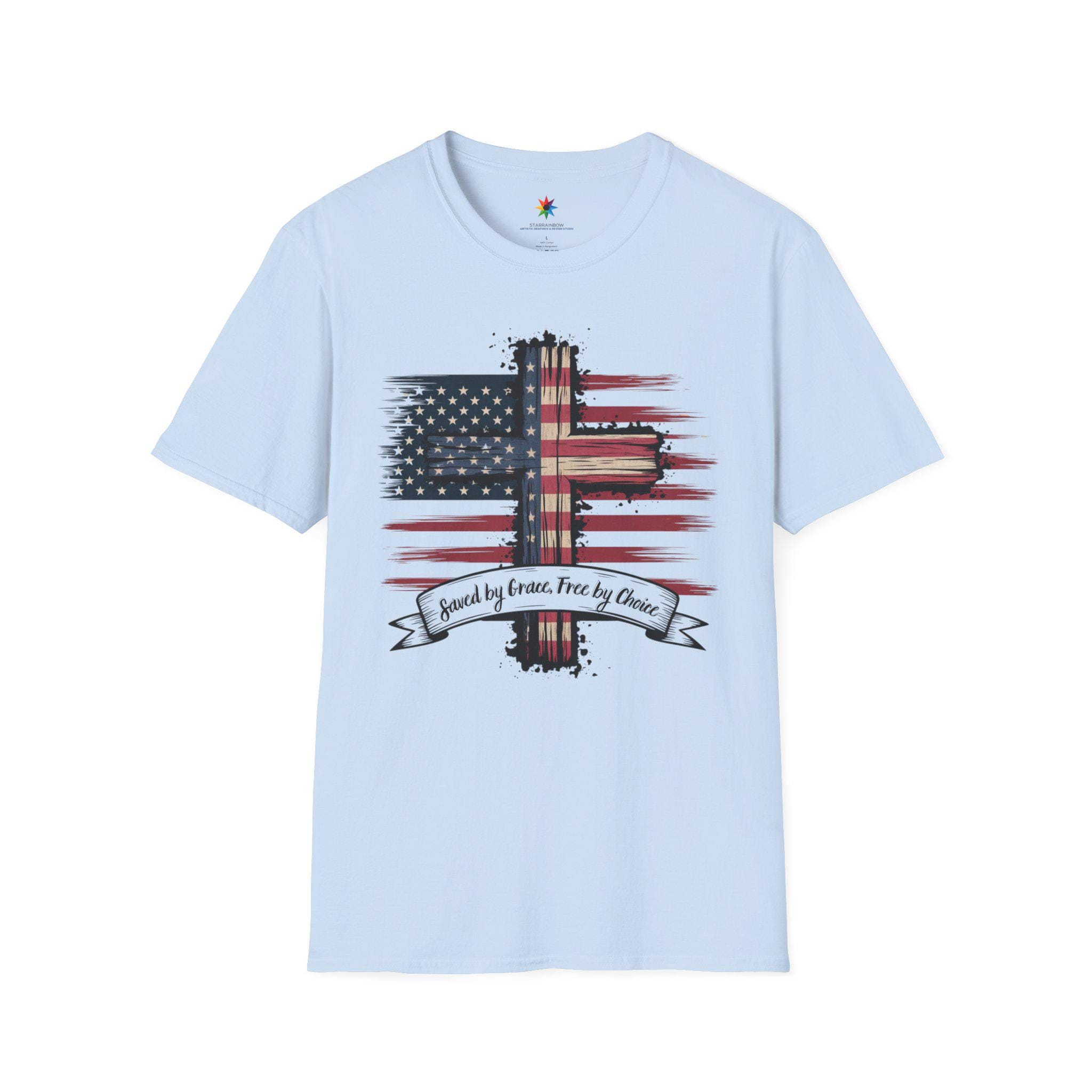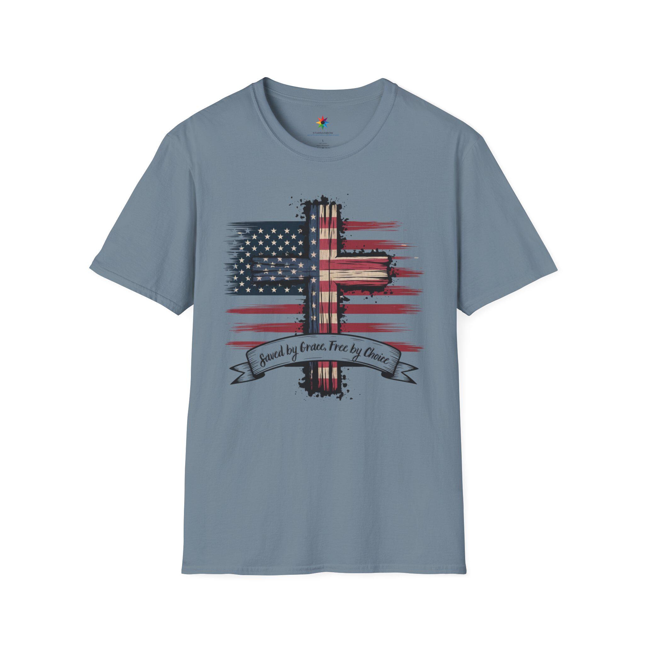 This design begins with the inspiring promise of Saved by Grace, a divine gift that lifts our spirits high. It celebrates the liberty of Free by Choice, a testament to the freedom we hold dear in this land. Woven into its essence is the pride of Shirt USA, a symbol of unity across our nation. As a Patriot, I stand tall, embracing the strength of Freedom Tee that flows through our history. The bold USA Flag Shirte waves with honor, a beacon of hope for all who see it. This embodies Patriotism Christian, blending faith and love for country in every detail. The beauty of the American Flag shines, reflecting the spirit of a land built on faith. It serves as a Gift, a token of appreciation for those who cherish our heritage. The message of Godly American inspires, rooting our identity in divine grace. As a proud American, I carry this vision of unity and strength. The politics patriot shirt reminds us of the values that guide our governance with courage. This becomes an american flag gift, a tribute to the stars and stripes we adore. The faithful christianity tee uplifts, connecting us to a higher calling with every wear. It reflects faithfully gifted, a blessing bestowed upon a nation of believers. The gifted faith within this design shines, a light of hope for all. We embrace the free dom tee, a celebration of liberty earned through sacrifice. The spirit of freedome flows, a timeless ideal that defines us. The usa freedom political shirt stands for a nation governed by liberty and justice. This merges into a patriotism christianity tee, uniting devotion and national pride. Finally, the Faith and Freedom Tee crowns this journey, a harmonious blend of belief and liberty that honors our land's enduring soul.