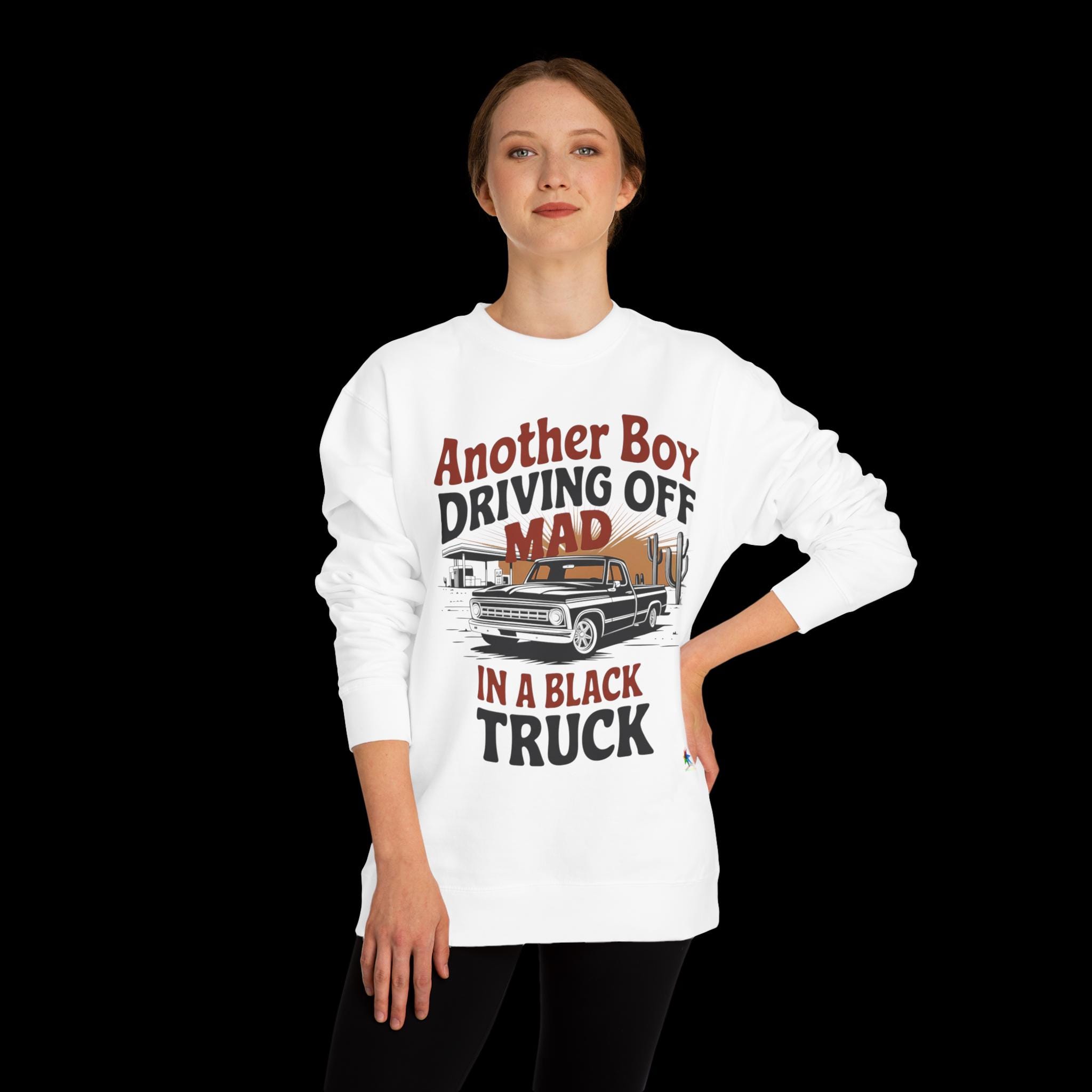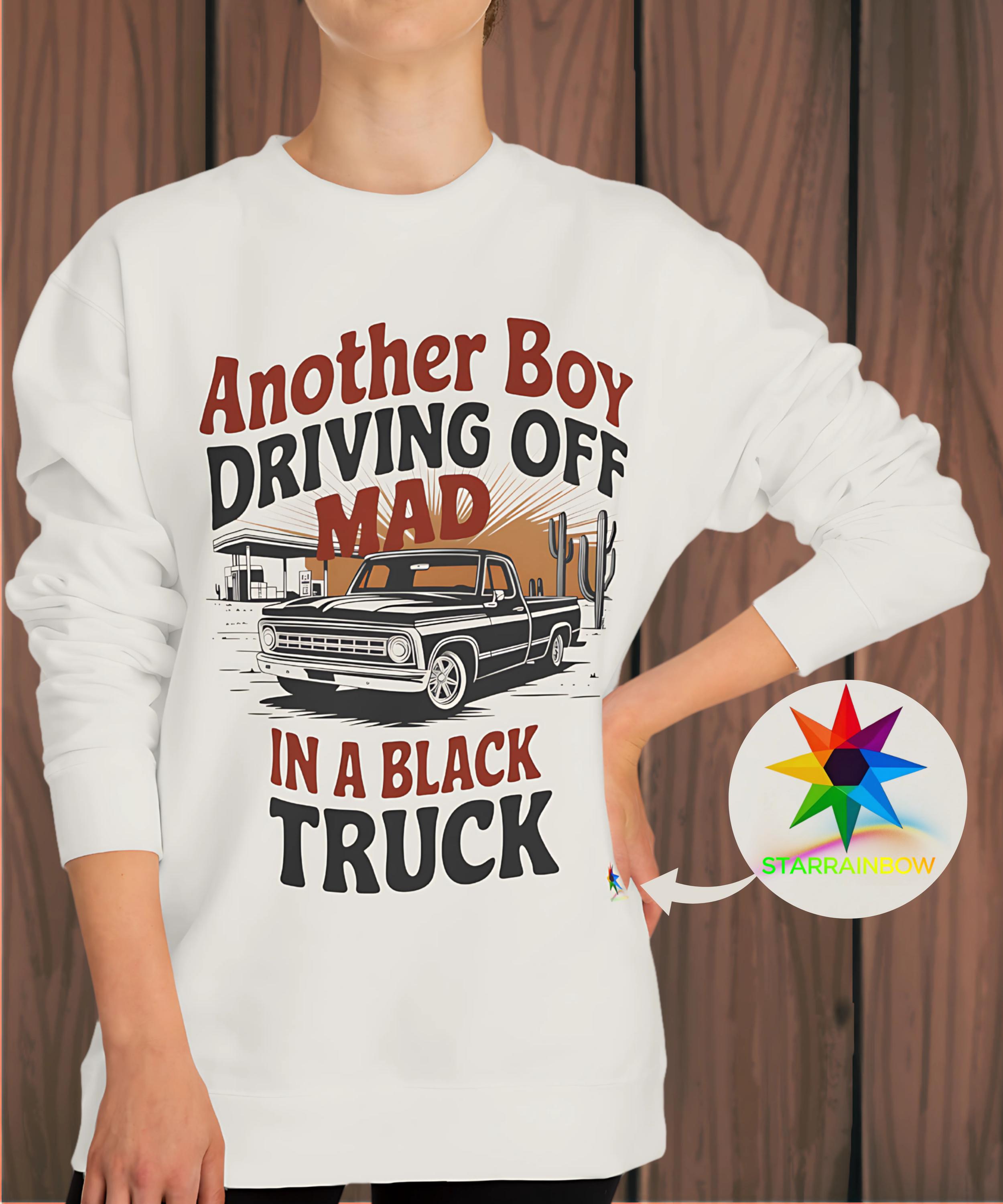 Embrace the heartfelt vibes of country music with the Another Boy Driving Off Mad Black Truck Sweatshirt. This unique design captures the bittersweet emotions of love lost, inspired by Kelsea's concert and the iconic heartbreak anthem. Crafted from a soft blend of 80% cotton and 20% polyester fleece with a 100% cotton face, this medium-heavy fabric sweatshirt offers all-day comfort and durability. The regular fit and tear-away label ensure it's perfect for layering on chilly concert nights or casual outings.