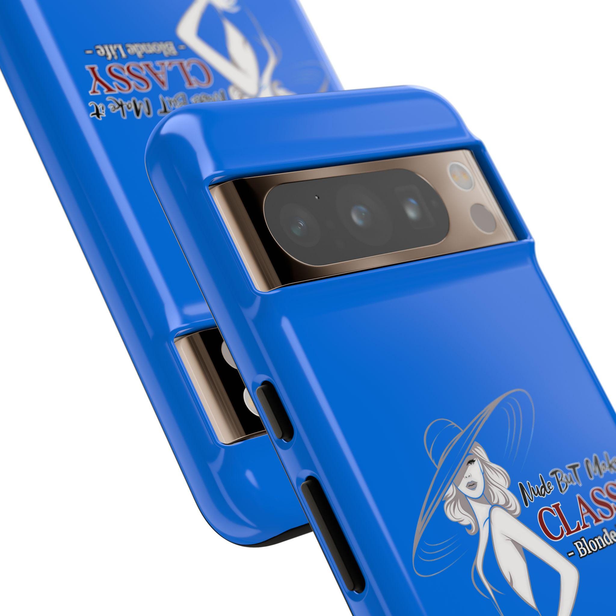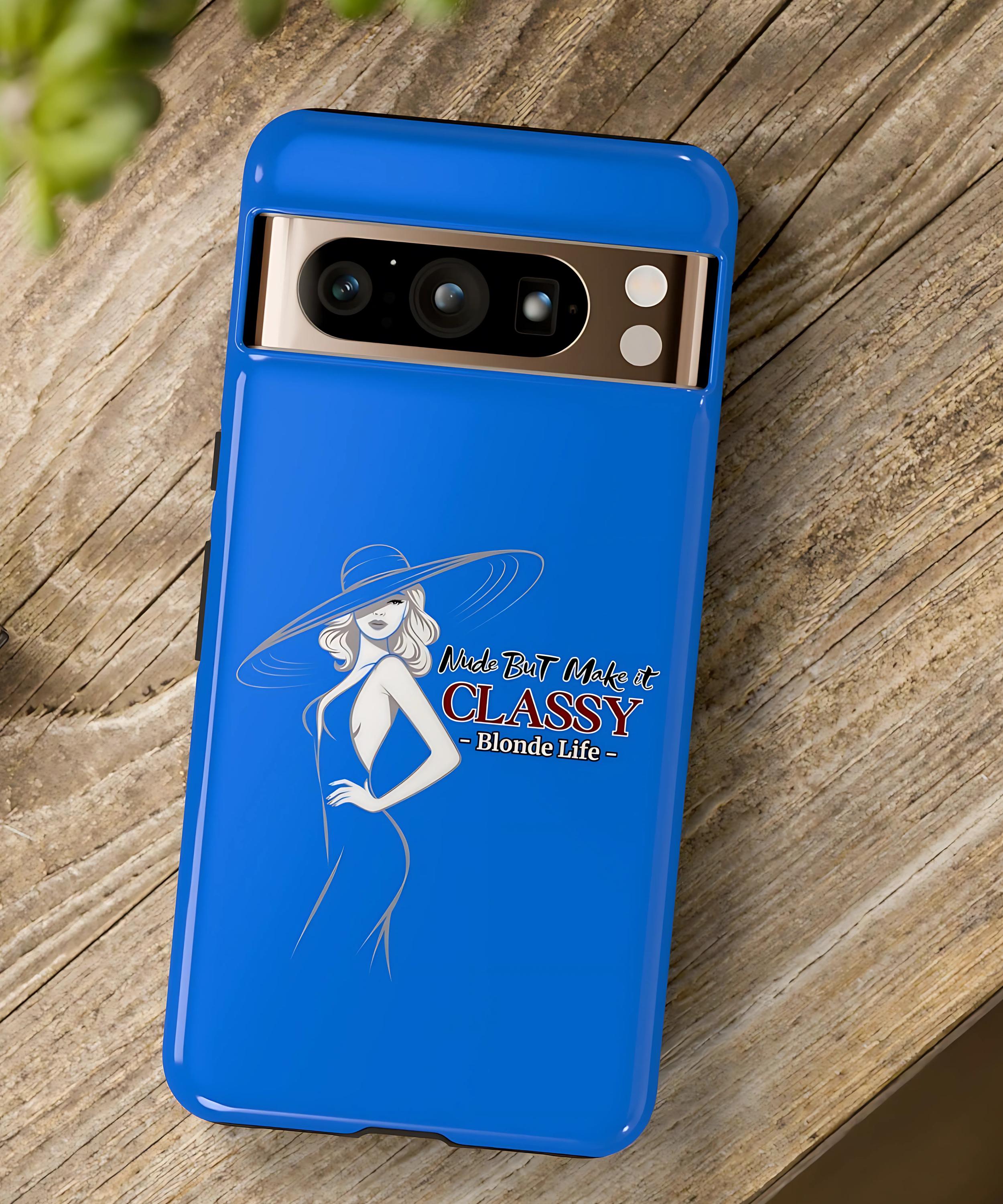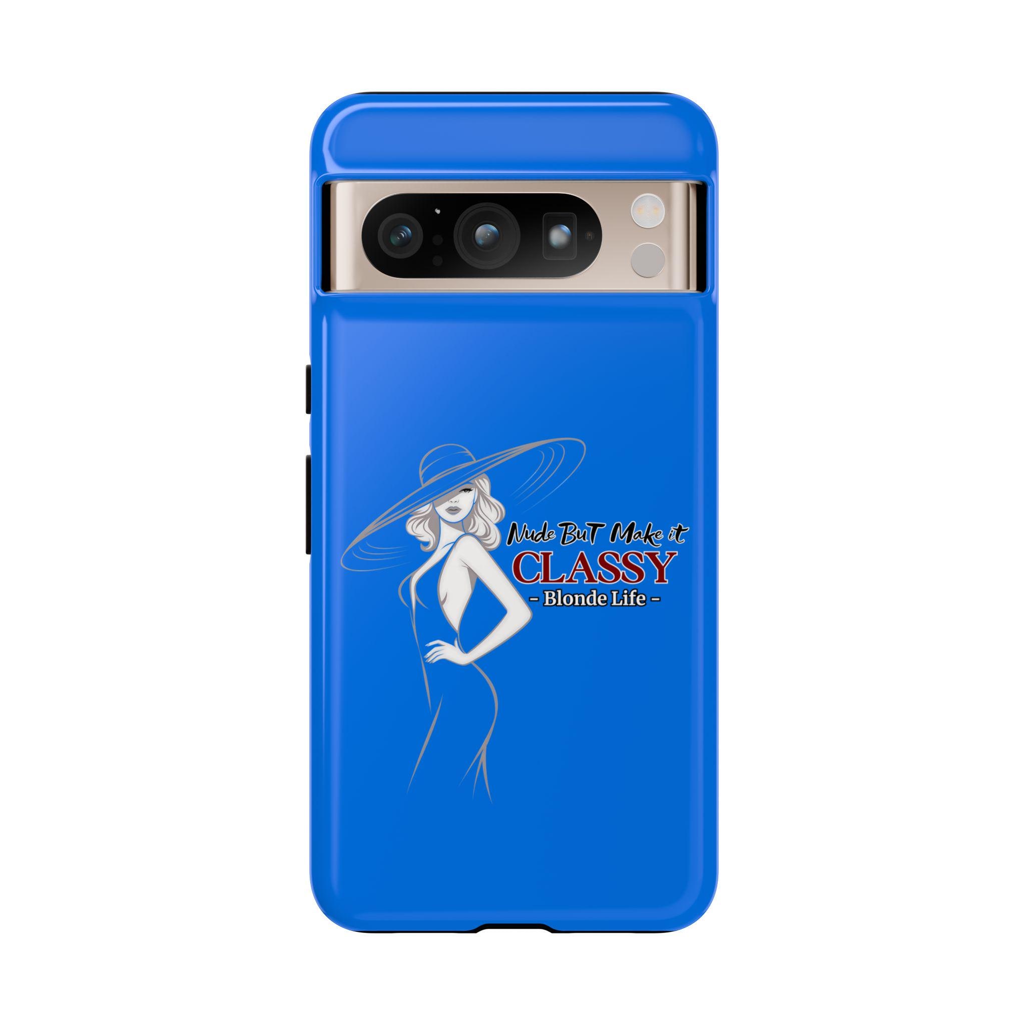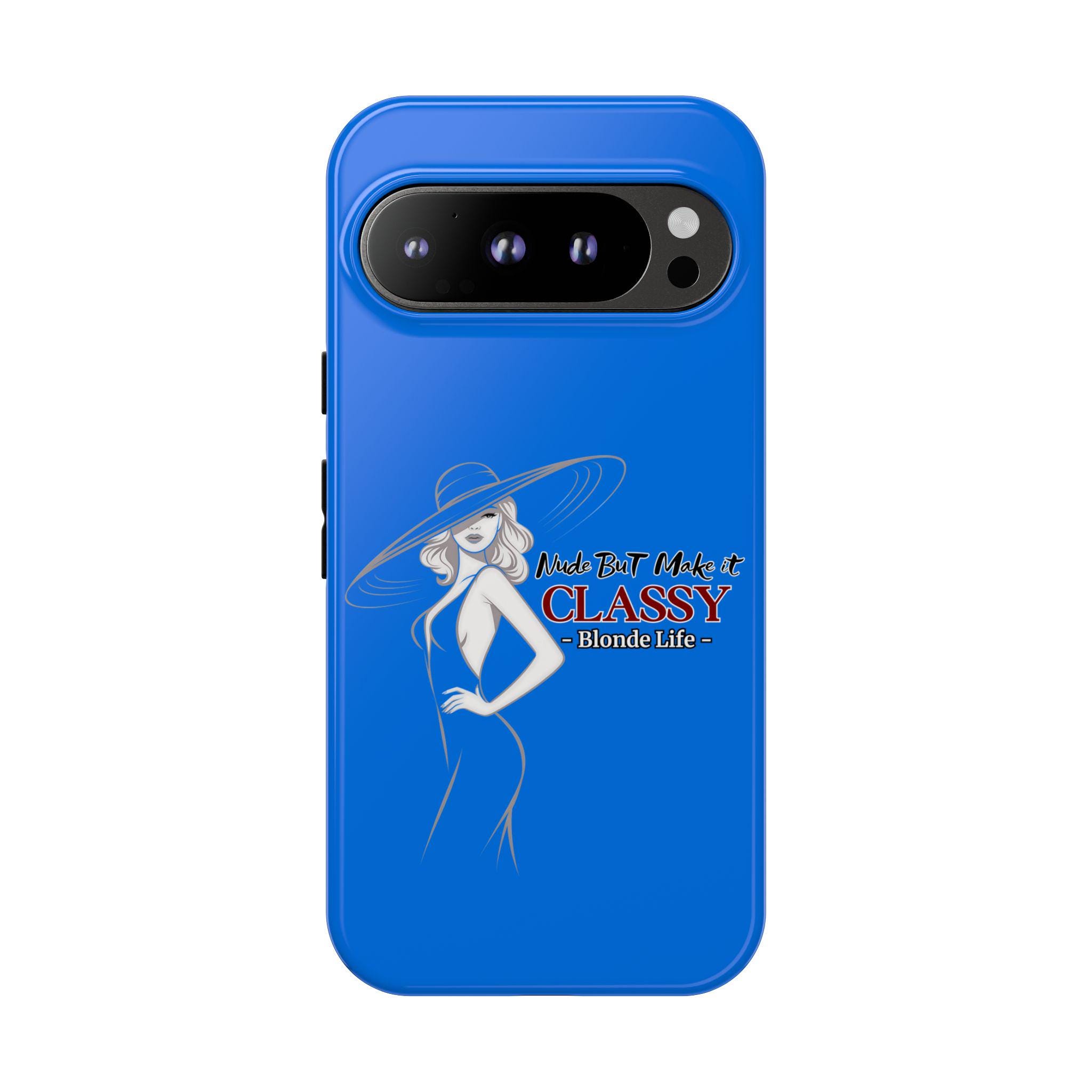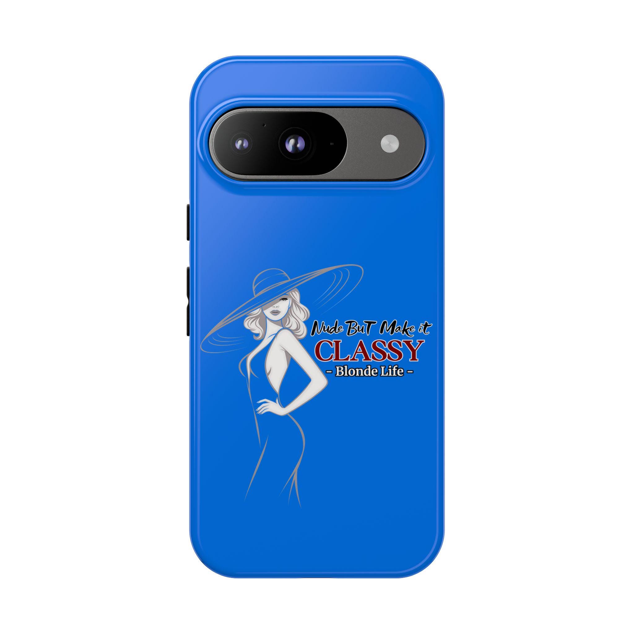 The Nude But Make It Classy Phone Case is designed for fierce, independent women embracing the Blonde Life—those who stand tall with unwavering confidence. It's a vibrant Blue Phone Case compatible with Most Google Pixel Models (Google Pixel 9, 9 Pro, 9 Pro XL, 8, 8 Pro, 7, 6, 6 Pro, 5 5G, 4, 4a, 4a 5G, 4 XL, 3, 3 XL, 3a, 3a XL, 2, 2 XL, XL), featuring an Elegant Silhouette of a poised lady in a hat, with the empowering "Nude But Make it CLASSY" slogan. This Women's Empowerment Gift Case blends style and strength, perfect for the bold. The Blue Pixel case, with its Blue chic phone case finish, shines everywhere—from vibrant city streets to quiet retreats—its Classy blonde case design adding elegance to your daily carry. Equip your phone with this Strong women Pixel case daily to reflect your resilience, or present it as a Blonde vibe gift case, an Empowerment phone case, or a Gift case for her during birthdays, holidays, or special moments. The Elegant Pixel case elevates your device with timeless sophistication, inspired by top Etsy trends like "Boss Babe" accessories. This Nude but make it classy case weaves Nude But Make It Classy, Phone Case, Blonde Life, Blue, Most Google Pixel Models, Elegant Silhouette, Women's Empowerment, Gift Case, Classy blonde case, Blue chic phone case, Strong women Pixel case, Blonde vibe gift case, Elegant Pixel case, Empowerment phone case, and Gift case for her into a striking statement for the modern, unbreakable woman who owns her narrative