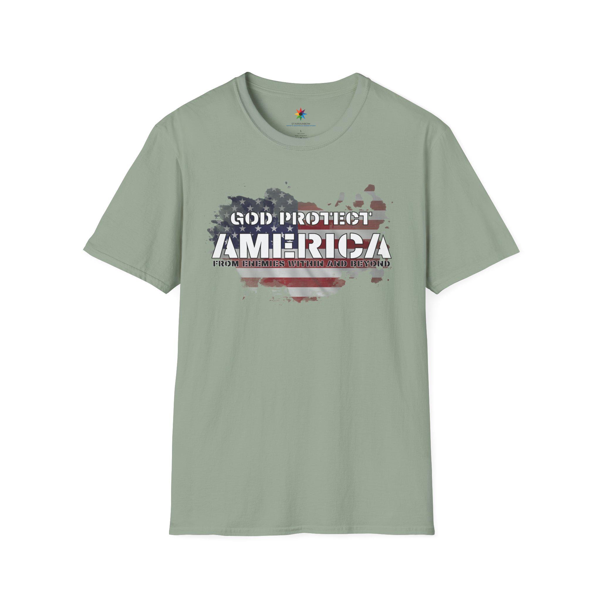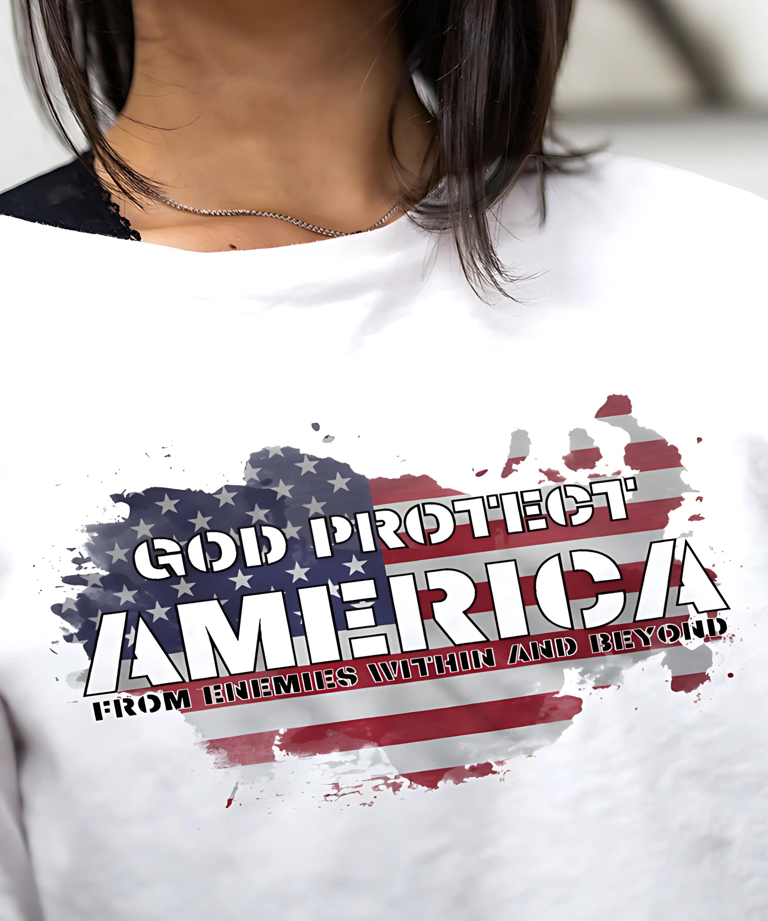 This design opens with a heartfelt plea for God Protect America, a prayer for divine safeguarding over our cherished land. The Shirt stands as a testament to our unwavering devotion to this nation's spirit. With the American Flag Shirt, we honor the stars and stripes that symbolize our unity and strength. As a Christian Patriot Shirt, it reflects my deep-rooted faith and love for this country's values. The USA shines through every detail, a land of promise and resilience. The Freedom it embodies reminds us of the sacrifices made for our liberty. This Tee carries a message of hope, blending spirituality with national pride. The Godly essence within inspires us to live with divine purpose. As an American, I feel the heartbeat of this nation in every line of this design. The Faithful spirit it represents connects us to a higher calling of loyalty and love. With God Blessed America, we celebrate a land graced by divine favor and care. The patriotism christian tee unites belief and national pride in a harmonious embrace. It echoes the politics patriot shirt, a nod to the governance that upholds our freedoms with courage. The american flag gift pays tribute to the flag we hold dear, a symbol of our shared heritage. The faithful christianity tee strengthens our bond to faith, guiding us through every step. The usa freedom political shirt stands for a nation built on liberty and justice for all. Finally, the Faith and Freedom Tee captures the essence of this journey, a beautiful fusion of devotion and the liberty that defines our land's enduring soul.