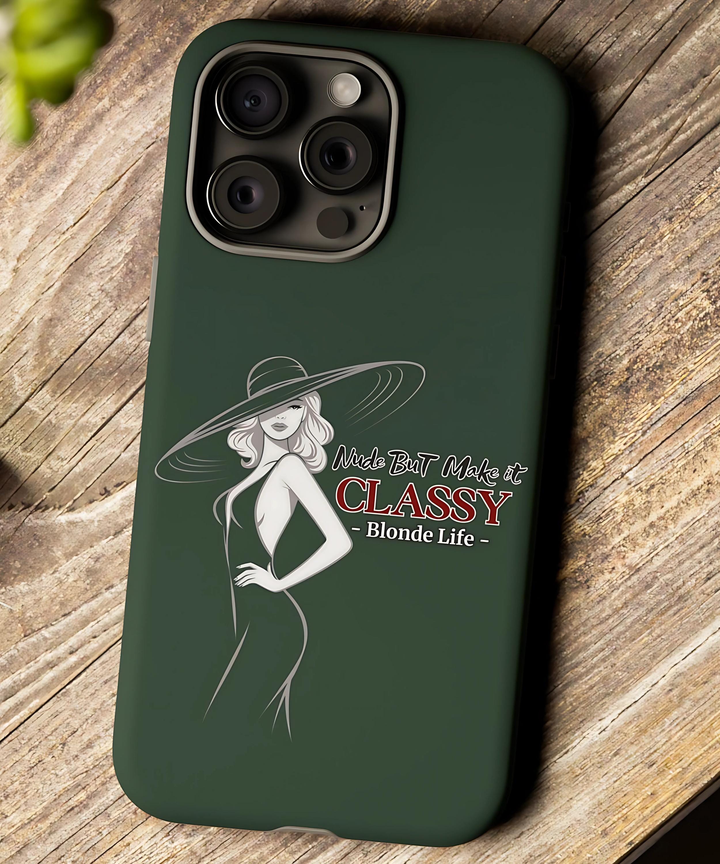 The Nude But Make It Classy Phone Case is designed for fierce, independent women embracing the Blonde Life—those who stand tall with unwavering confidence. It's a Forest Green iPhone case, a Most iPhone Case Models accessory fitting models like iPhone 16 Pro, 16 Pro Max, 16, 16 Plus, 15, 15 Pro, 15 Plus, 15 Pro Max, 14, 14 Pro, 14 Plus, 14 Pro Max, 13, 13 Mini, 13 Pro, 13 Pro Max, 12, 12 Mini, 12 Pro, 12 Pro Max, 11, 11 Pro, 11 Pro Max, X, XR, XS, XS Max. Featuring an Elegant Silhouette of a poised lady in a hat, this Women's Empowerment Gift Case inspires strength with its empowering slogan. The Forest green iPhone case, with its Forest green chic hue, shines everywhere—from bustling city streets to serene retreats—its Classy blonde case design adding sophistication to your style. Equip your phone with this Strong women phone case daily to reflect your resilience, or present it as a Blonde vibe gift case, an Empowerment phone case, or a Gift case for her during birthdays or holidays. The Elegant iPhone case elevates your device, blending timeless style with bold attitude. This Nude but make it classy case weaves Nude But Make It Classy, Phone Case, Blonde Life, Forest Green, Most iPhone Case Models, iPhone, Elegant Silhouette, Women's Empowerment, Gift Case, Classy blonde case, Forest green chic, Strong women phone case, Blonde vibe gift case, Elegant iPhone case, and Empowerment phone case into a stunning statement for the modern, unbreakable woman who owns her story.