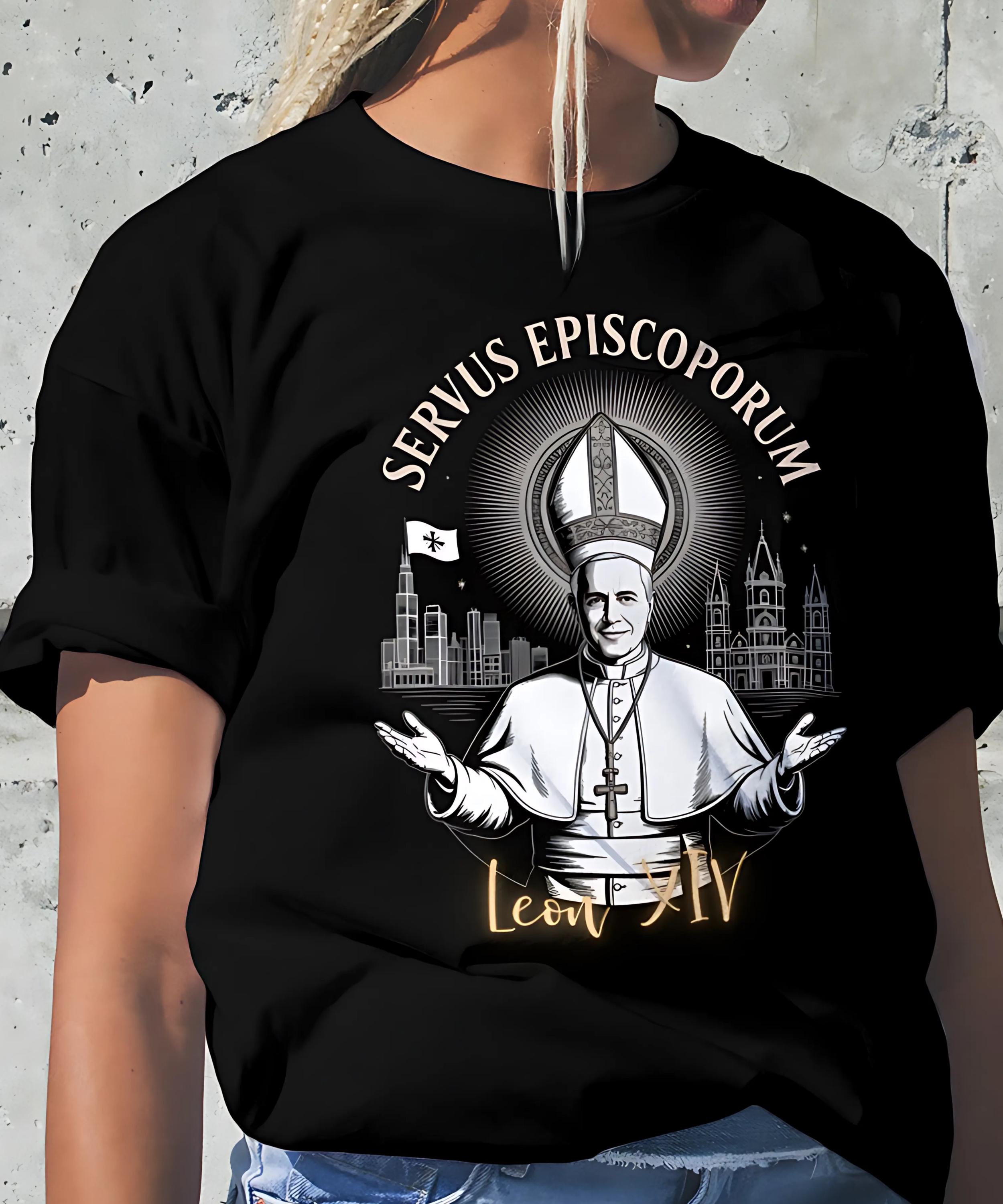 Featuring a unique and inspirational graphic of Pope Leon XIV, this T-shirt is more than just apparel—it's a statement of faith and community. Ideal for believers, clergy members, and anyone who appreciates meaningful religious symbolism, the design evokes reverence and connection. Whether you're attending church gatherings, religious celebrations, or simply want to showcase your beliefs, this tee fits effortlessly into your lifestyle.