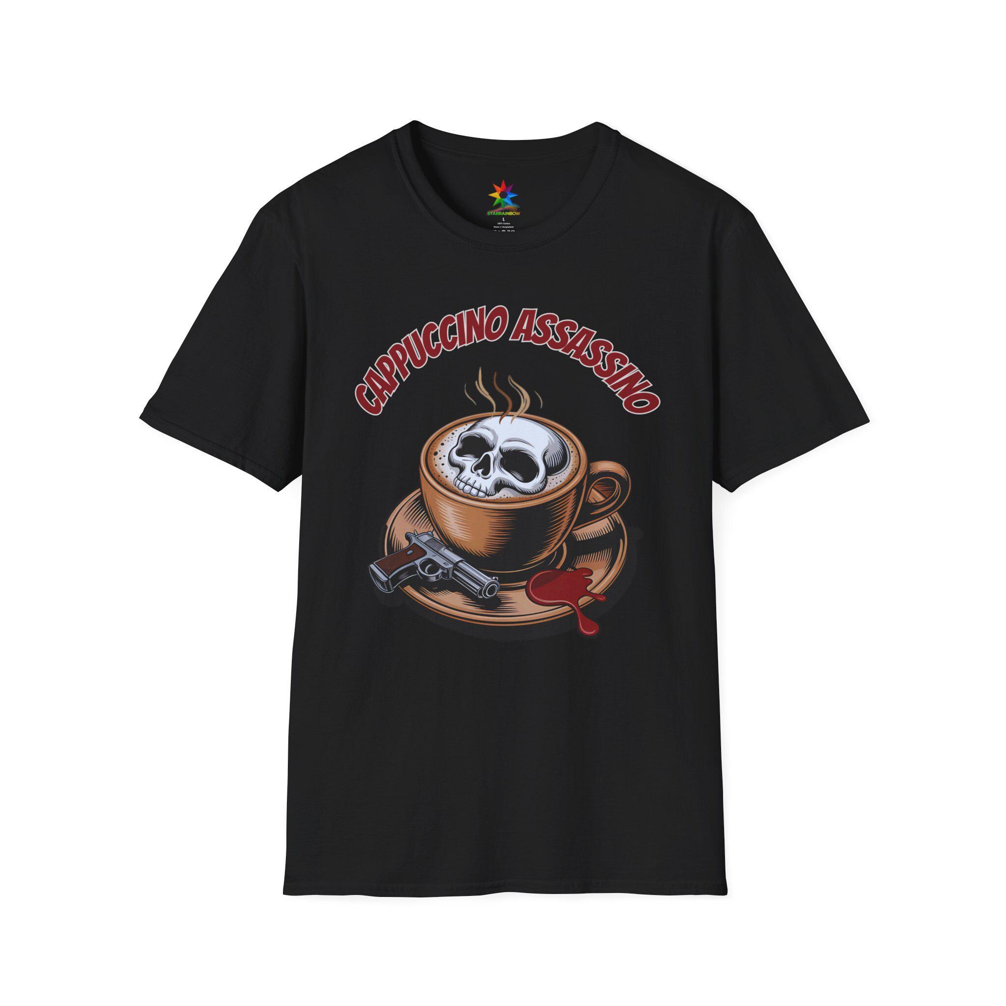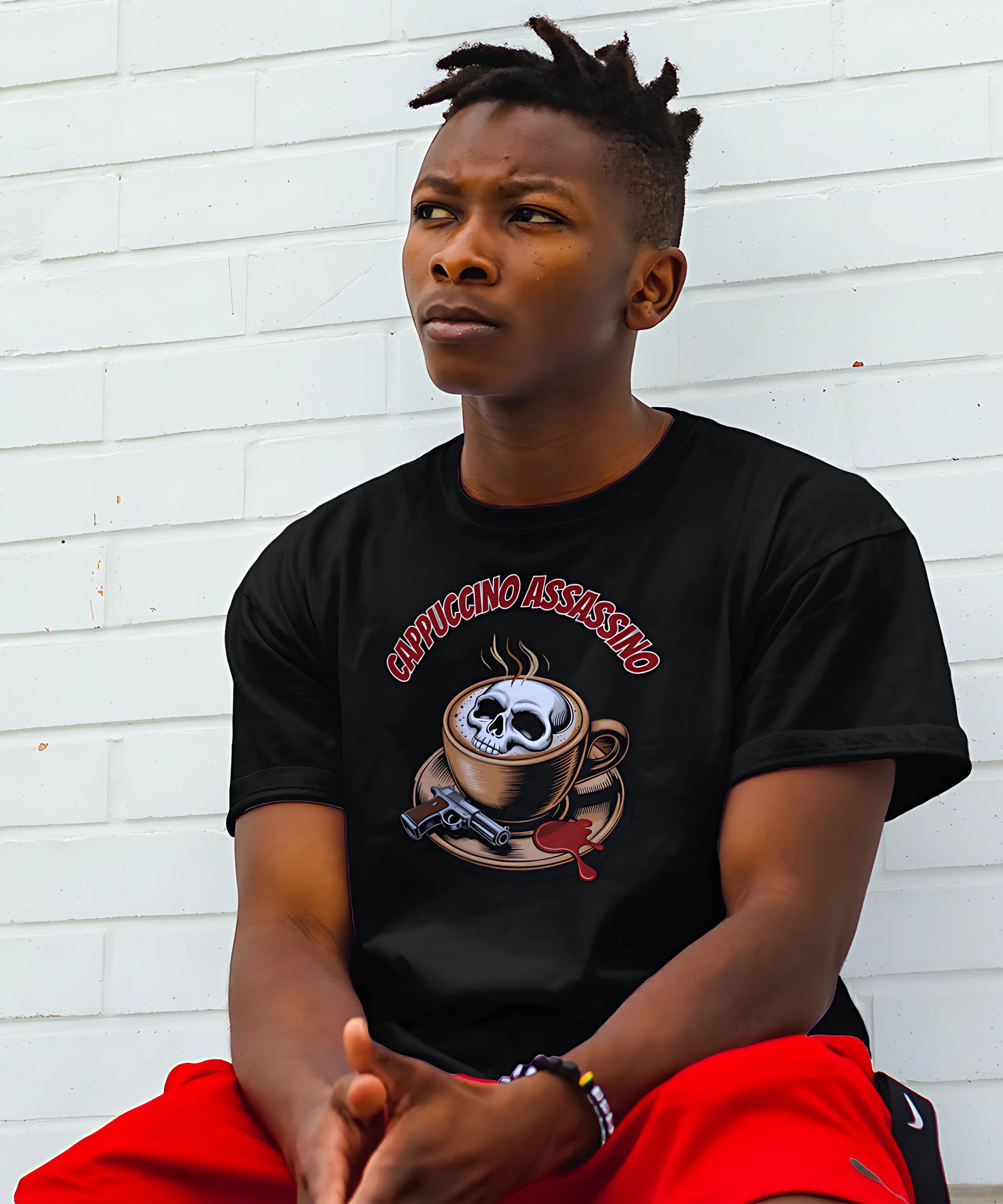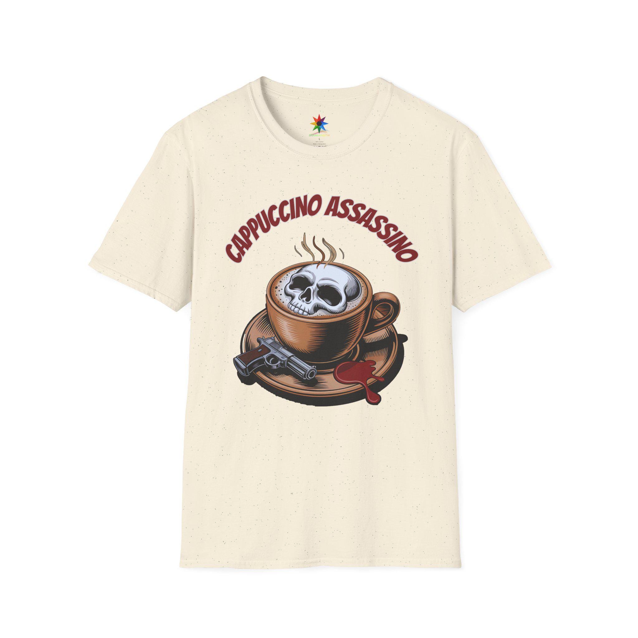 Elevate your wardrobe with the captivating Cappuccino Assassino shirt, a perfect fusion of dark humor and coffee culture. Crafted from premium, breathable cotton, this tee offers comfort and durability for all-day wear. Featuring a striking skull rising from a steaming espresso cup, the design captures the spirit of true crime enthusiasts and caffeine addicts alike. Available in various sizes from small to XXL, this shirt fits true to size, making it a versatile choice for both casual outings and cozy coffee shop visits.
