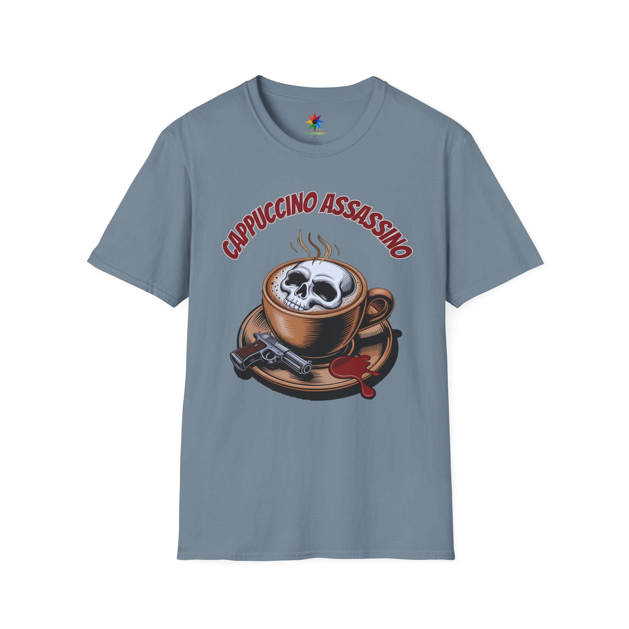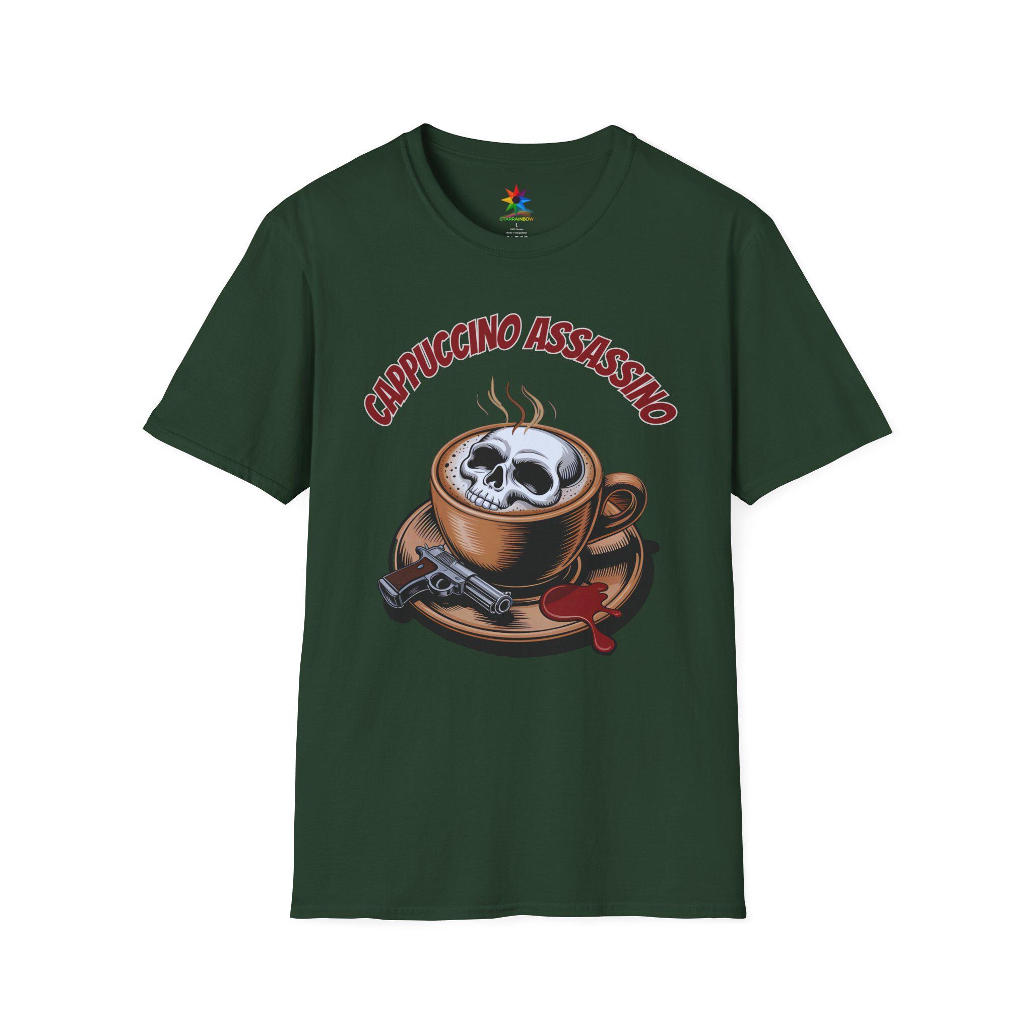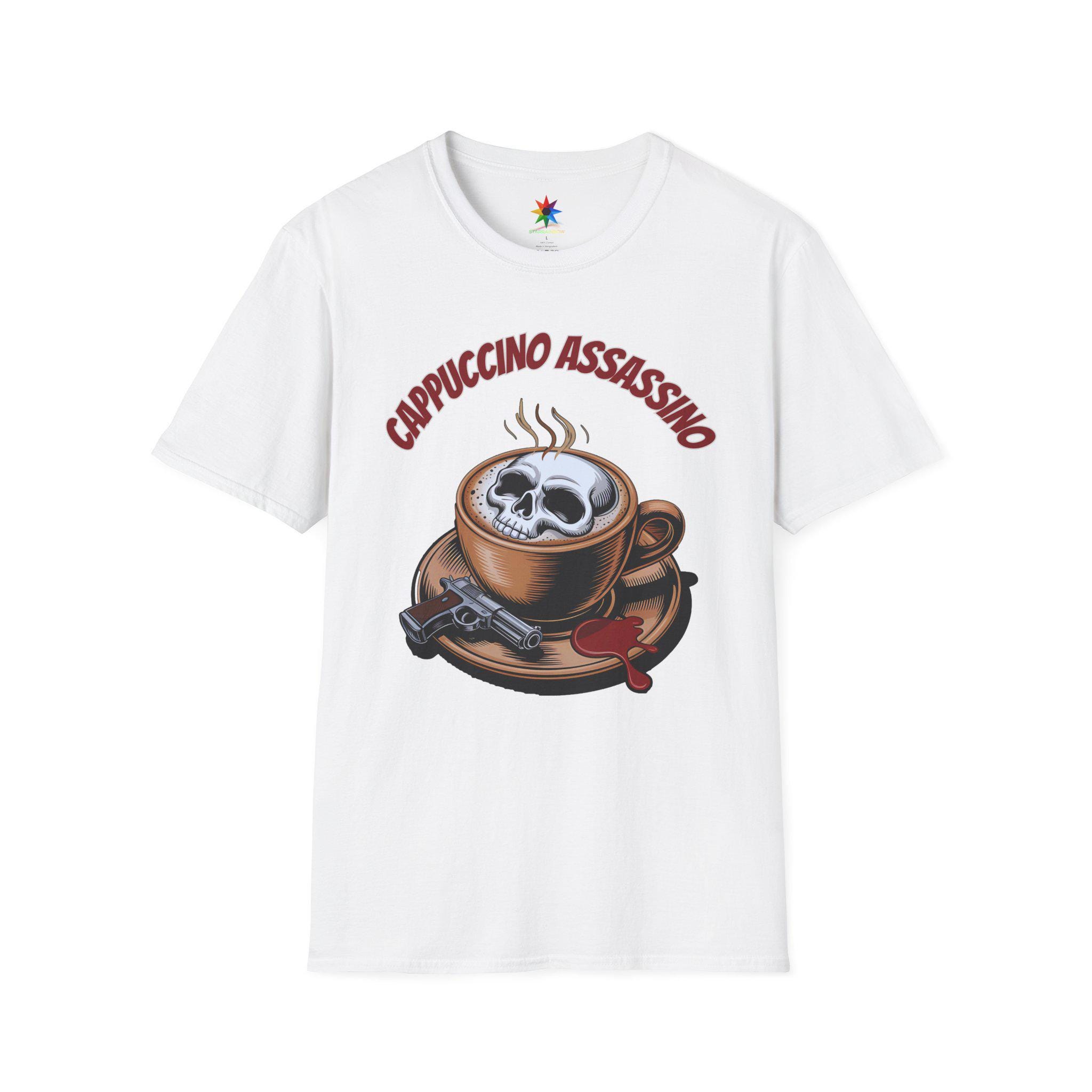 Elevate your wardrobe with the captivating Cappuccino Assassino shirt, a perfect fusion of dark humor and coffee culture. Crafted from premium, breathable cotton, this tee offers comfort and durability for all-day wear. Featuring a striking skull rising from a steaming espresso cup, the design captures the spirit of true crime enthusiasts and caffeine addicts alike. Available in various sizes from small to XXL, this shirt fits true to size, making it a versatile choice for both casual outings and cozy coffee shop visits.