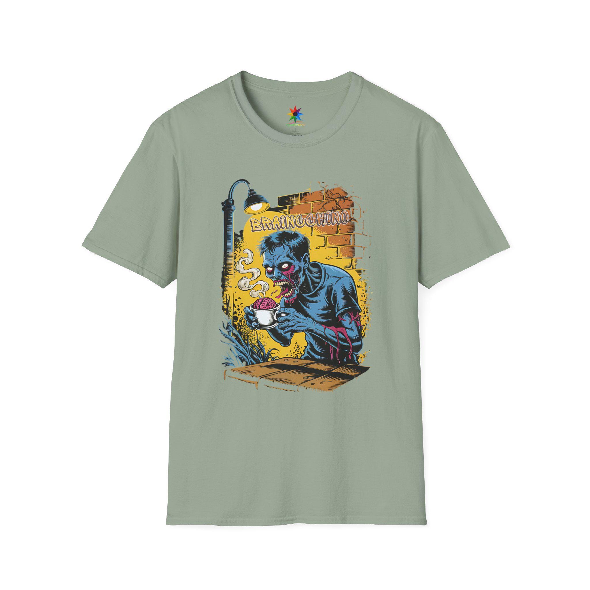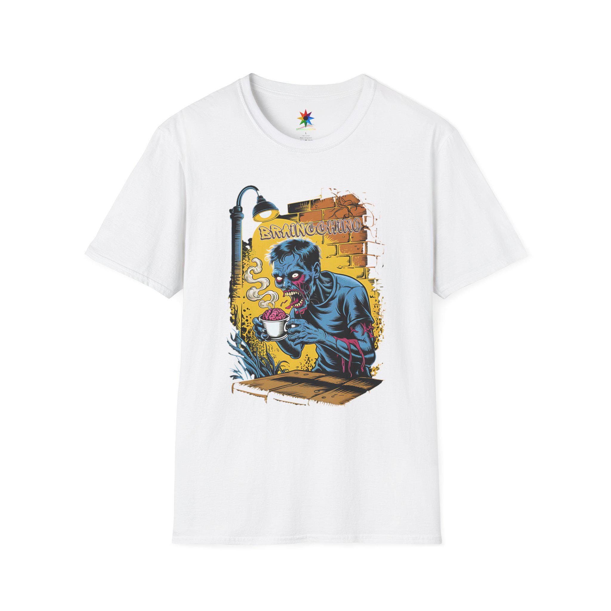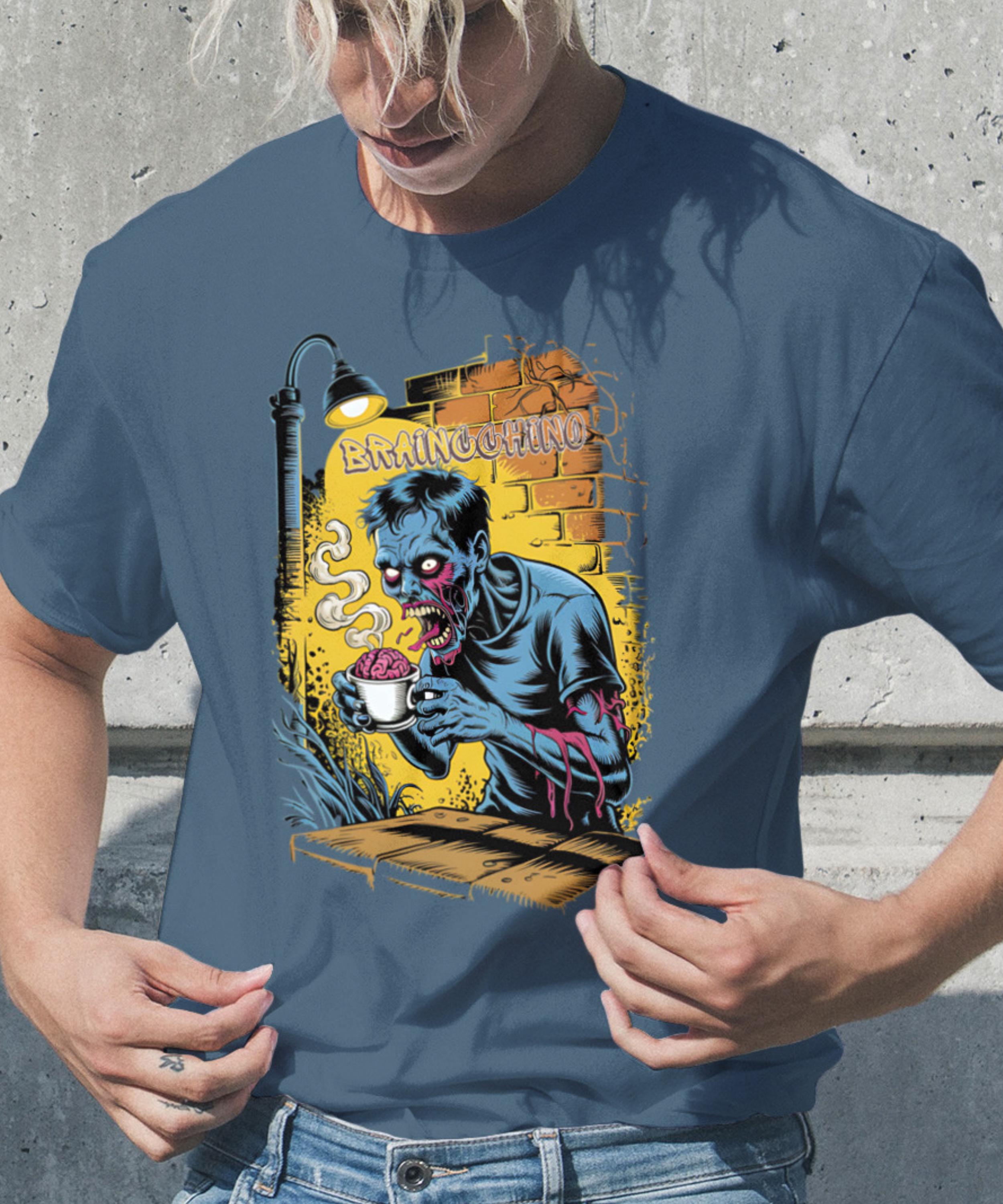 Wake up and embrace your caffeine addiction with the Braincchino Zombie Coffee Shirt, a unique blend of horror and humor crafted for coffee lovers and caffeine fanatics alike. Made from soft, breathable cotton, this unisex graphic tee features a striking comic-style zombie barista eagerly holding a cup of braincchino, capturing that undead craving for coffee. Whether you're a barista, a coffee enthusiast, or just love spooky graphic tees, this shirt delivers a bold statement that’s perfect for casual wear or themed events.