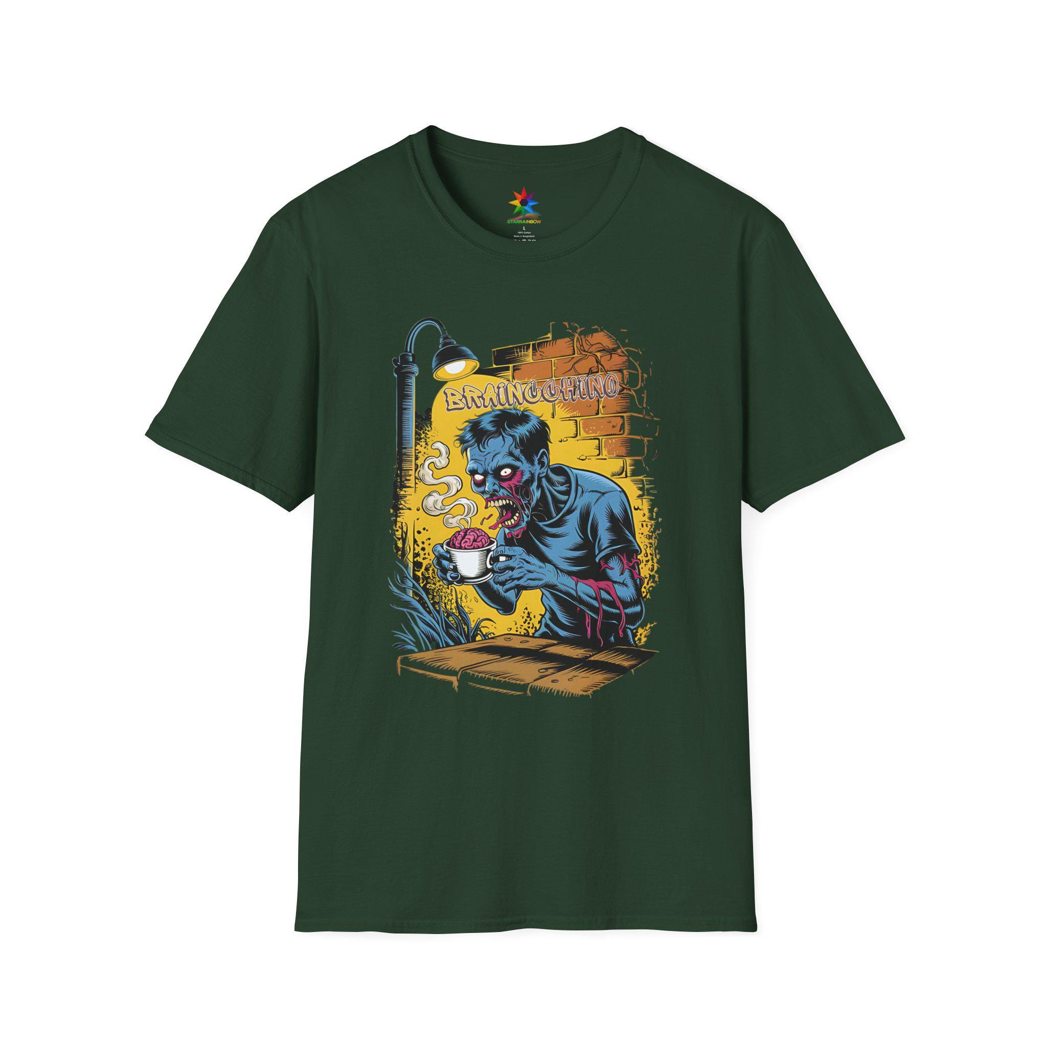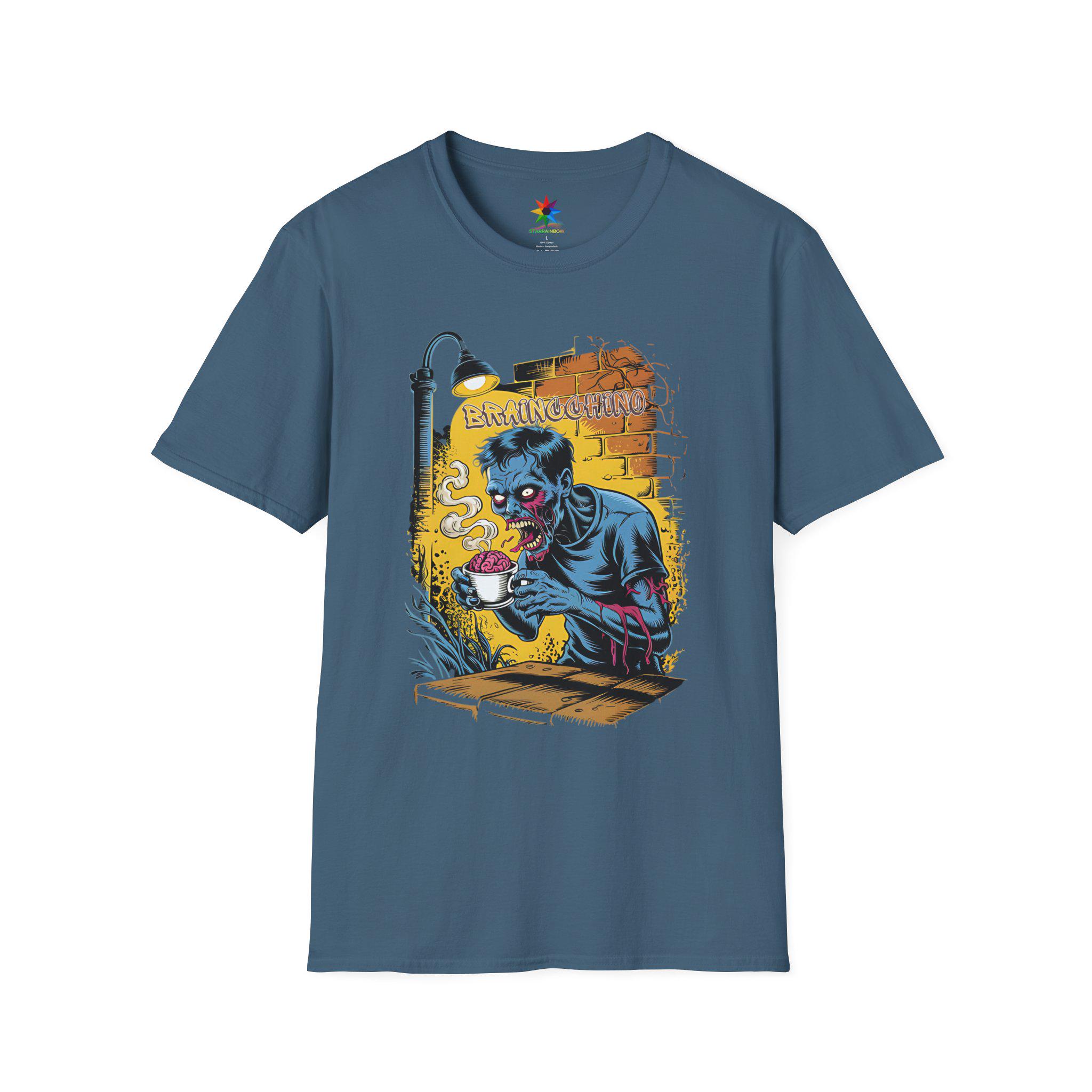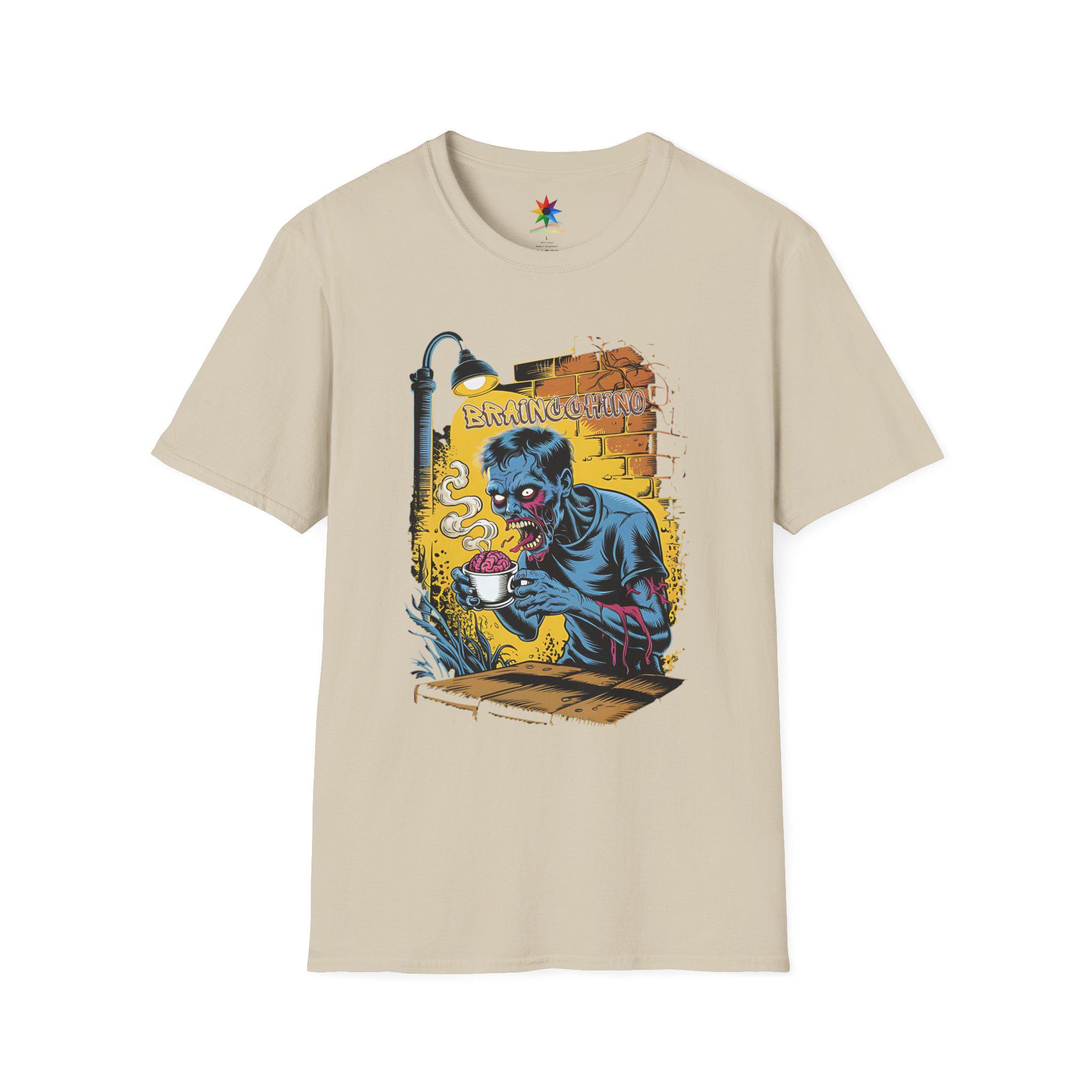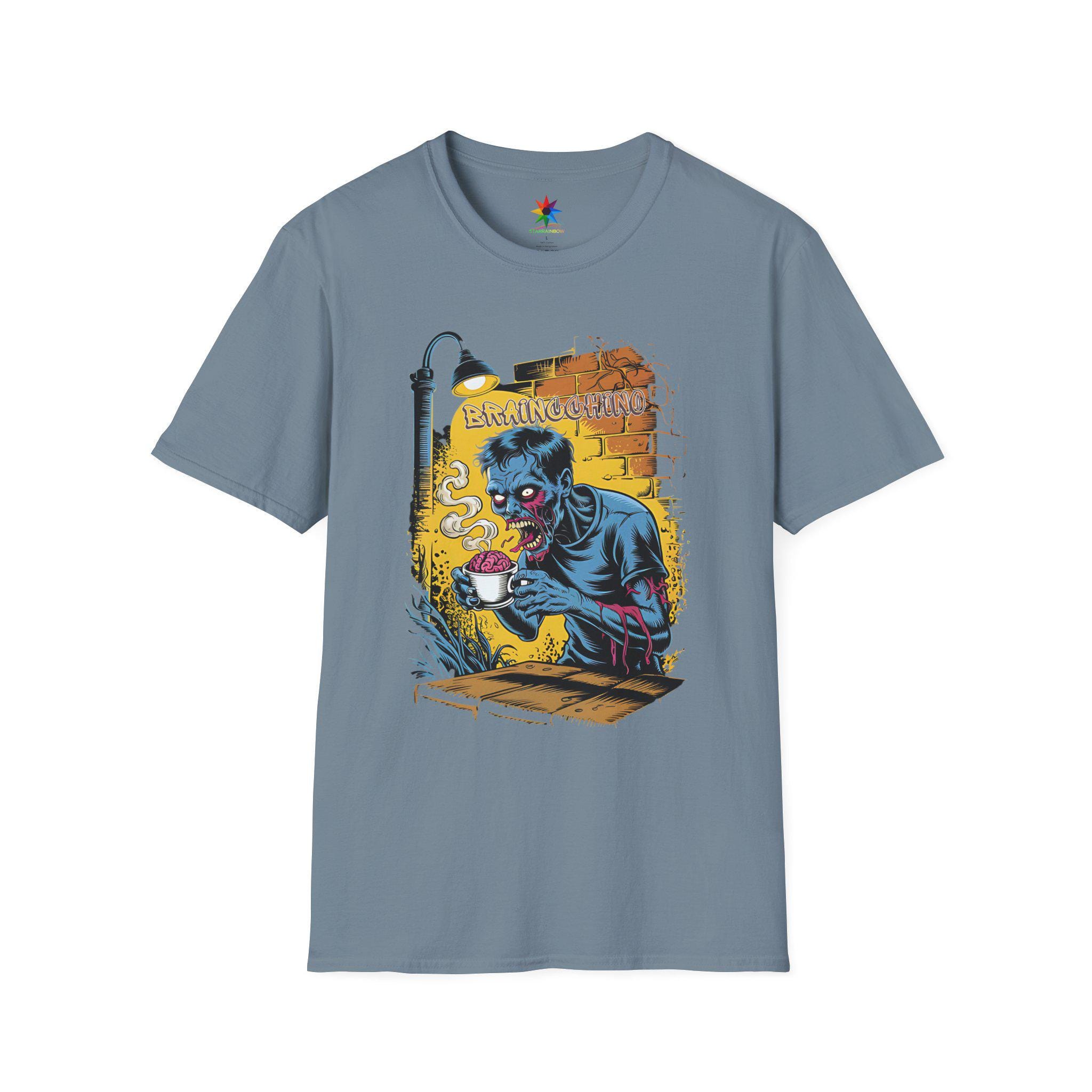 Wake up and embrace your caffeine addiction with the Braincchino Zombie Coffee Shirt, a unique blend of horror and humor crafted for coffee lovers and caffeine fanatics alike. Made from soft, breathable cotton, this unisex graphic tee features a striking comic-style zombie barista eagerly holding a cup of braincchino, capturing that undead craving for coffee. Whether you're a barista, a coffee enthusiast, or just love spooky graphic tees, this shirt delivers a bold statement that’s perfect for casual wear or themed events.