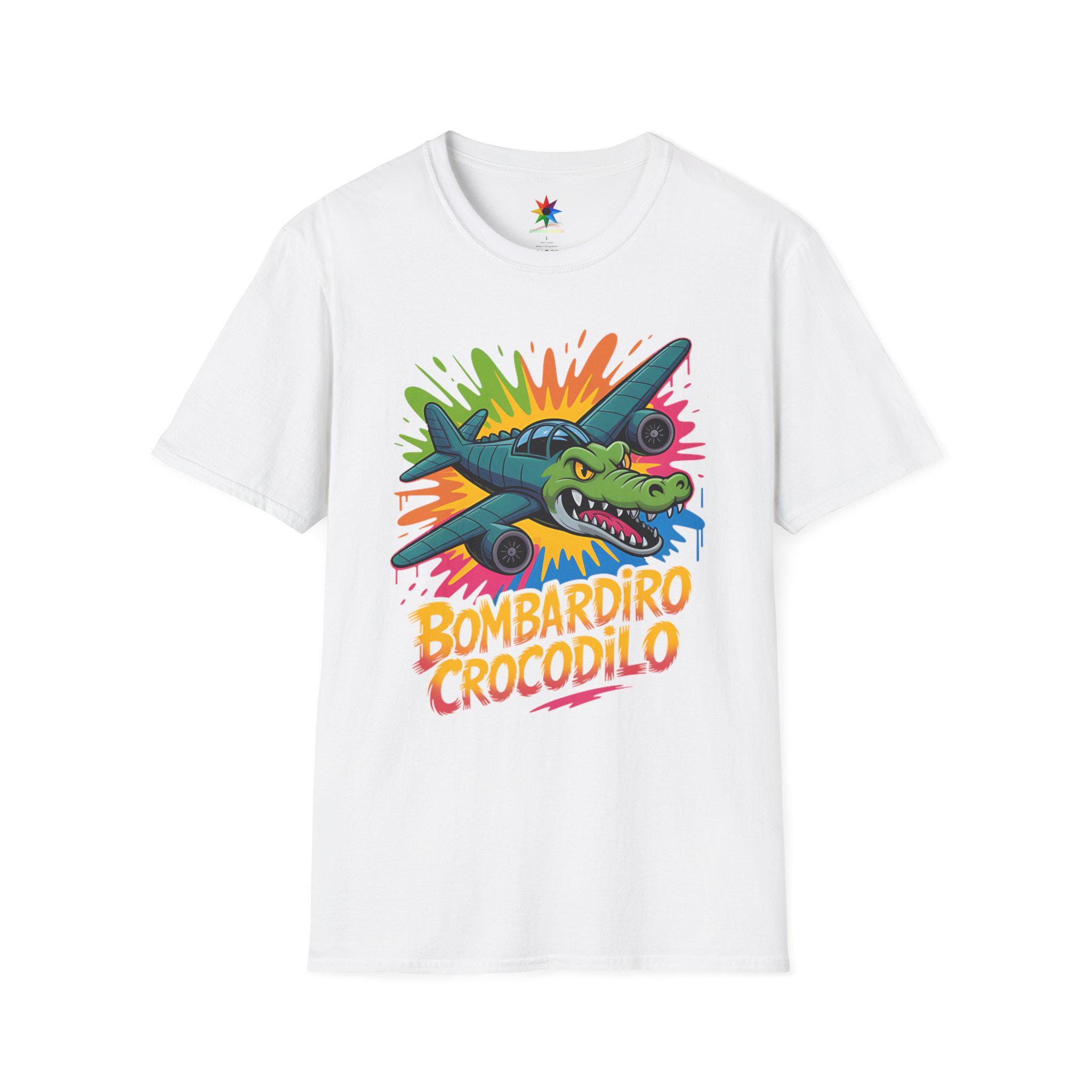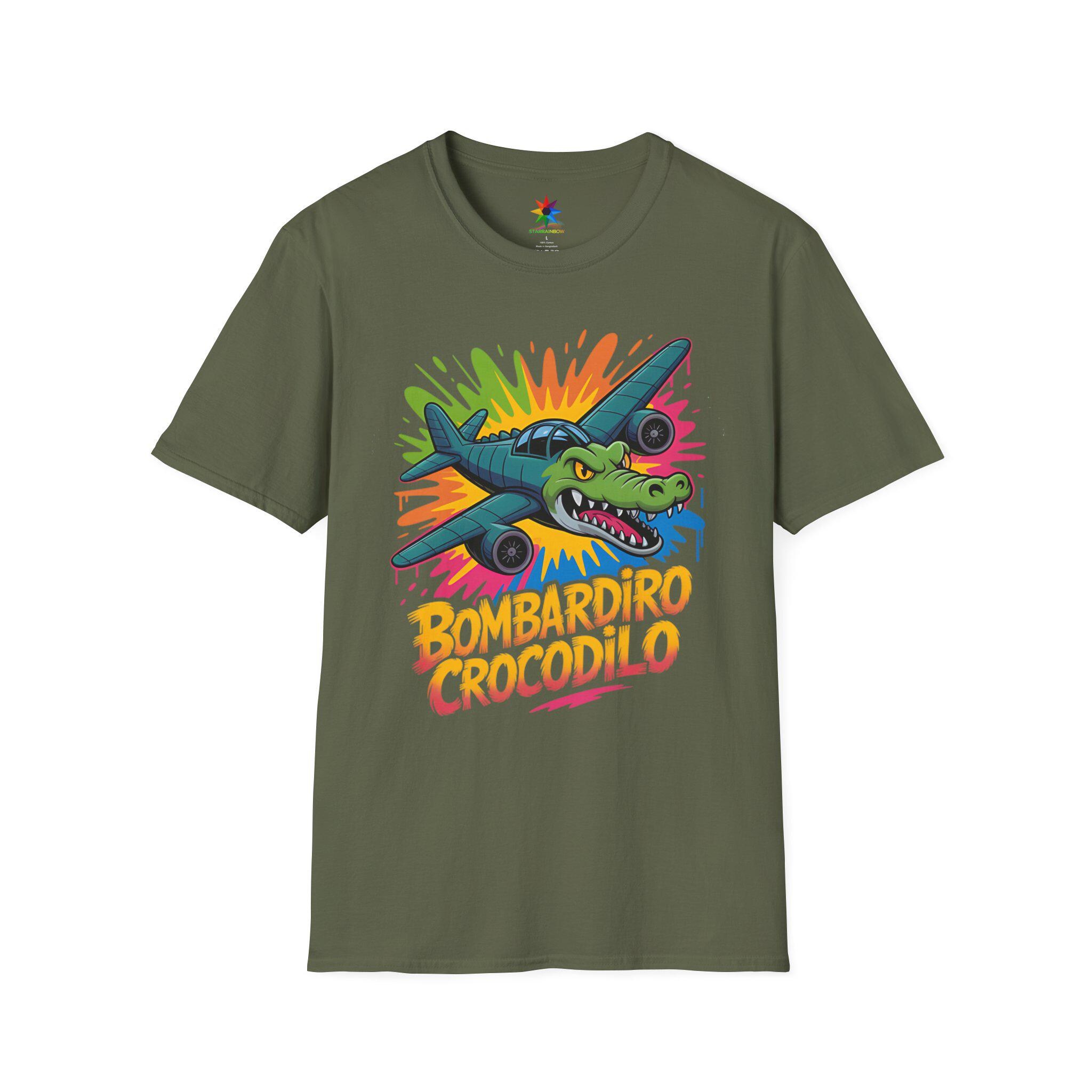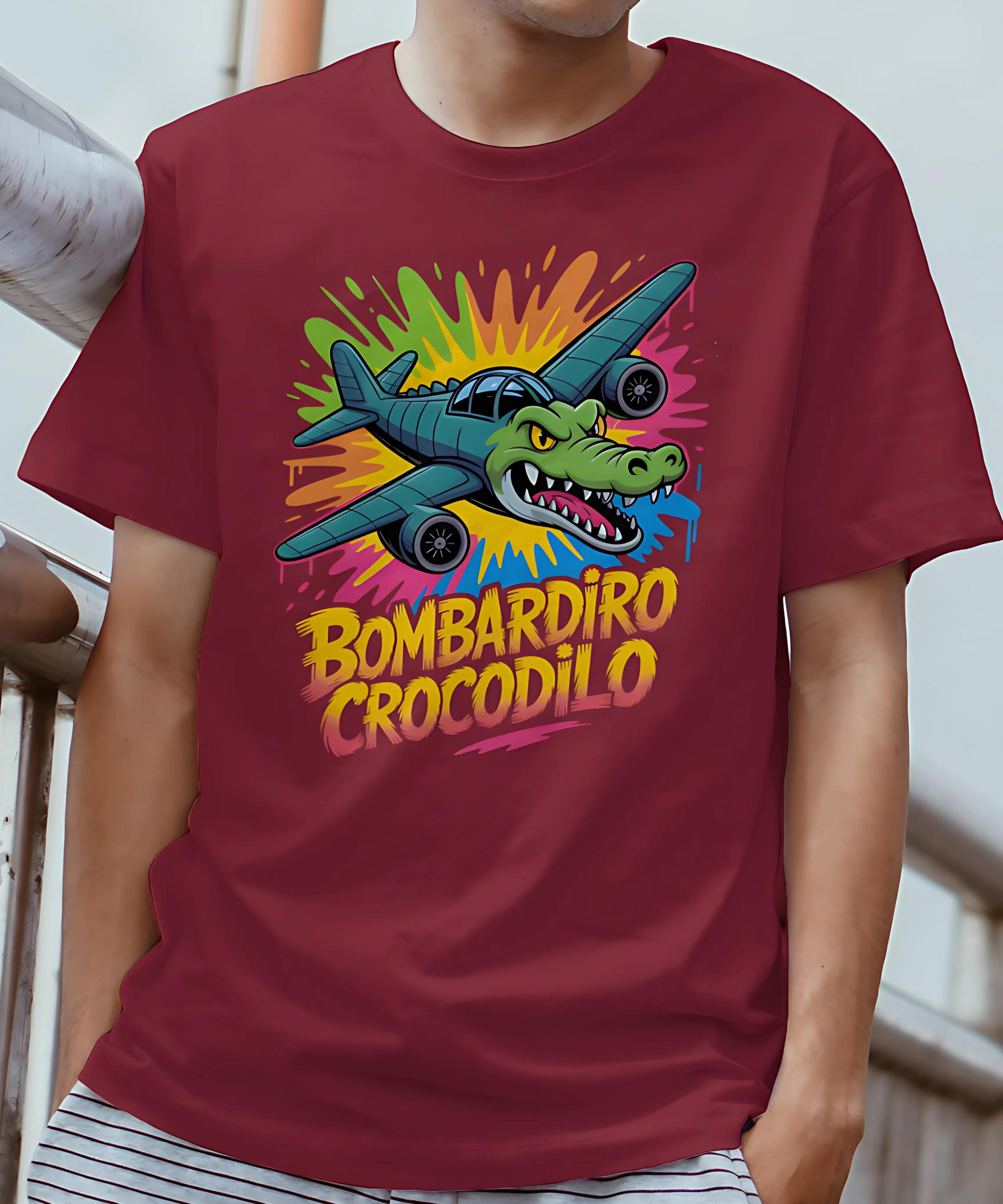 Get ready to elevate your streetwear game with the Bombardiro Crocodilo T-Shirt — a bold and quirky fusion of military grit and urban art. Featuring a funny crocodile flying a bomb jet in classic graffiti style, this design brings the perfect mix of color, character, and chaos to your wardrobe.