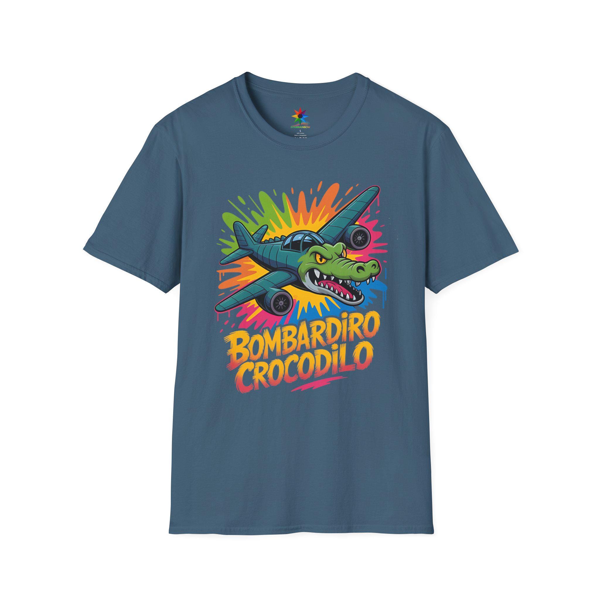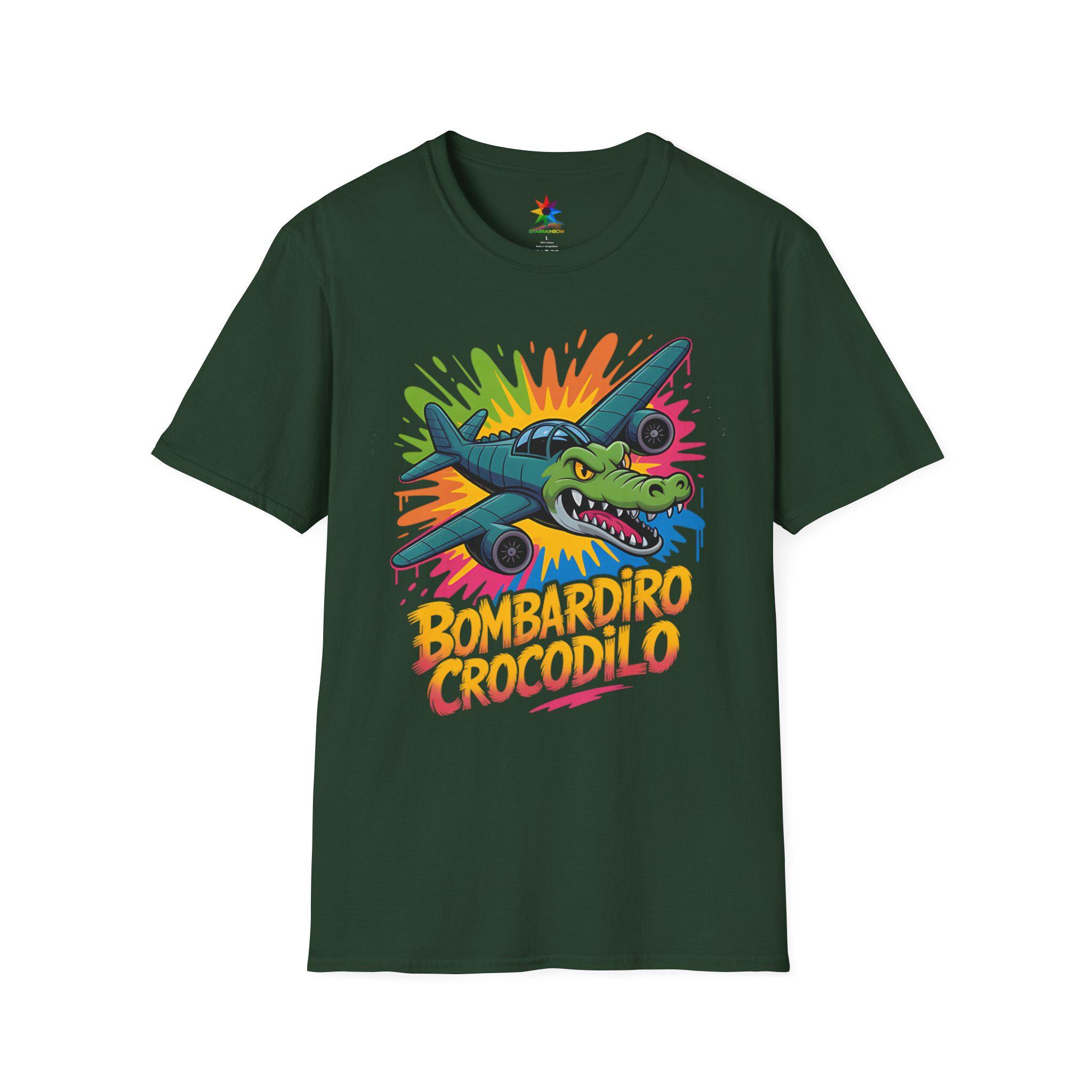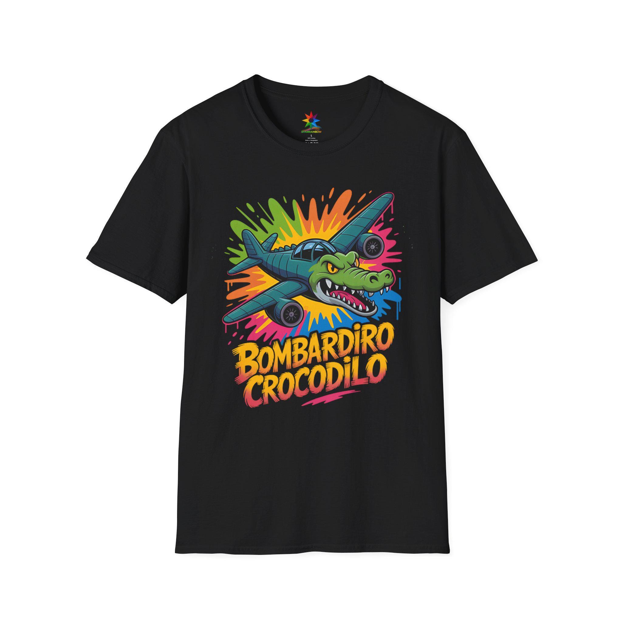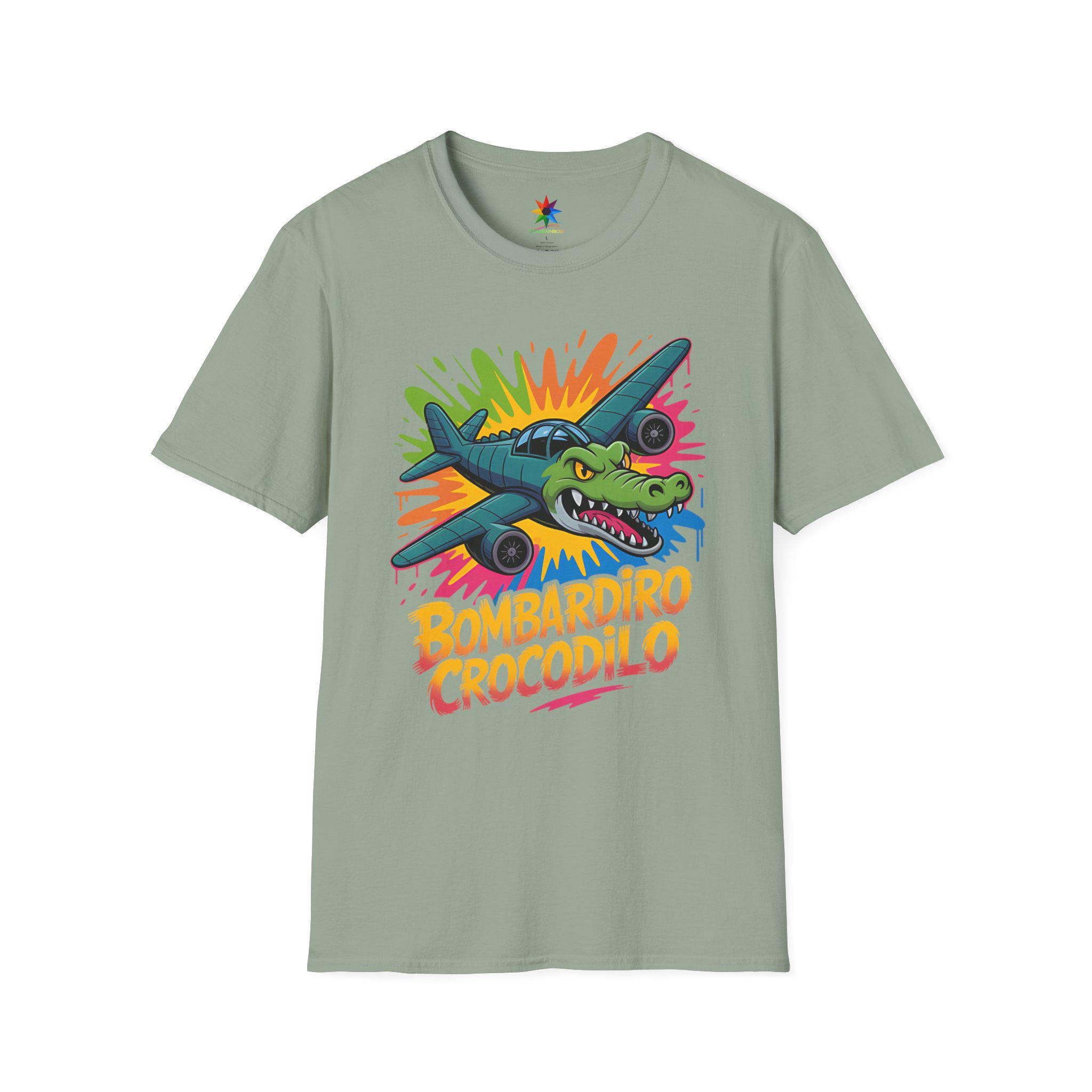 Get ready to elevate your streetwear game with the Bombardiro Crocodilo T-Shirt — a bold and quirky fusion of military grit and urban art. Featuring a funny crocodile flying a bomb jet in classic graffiti style, this design brings the perfect mix of color, character, and chaos to your wardrobe.