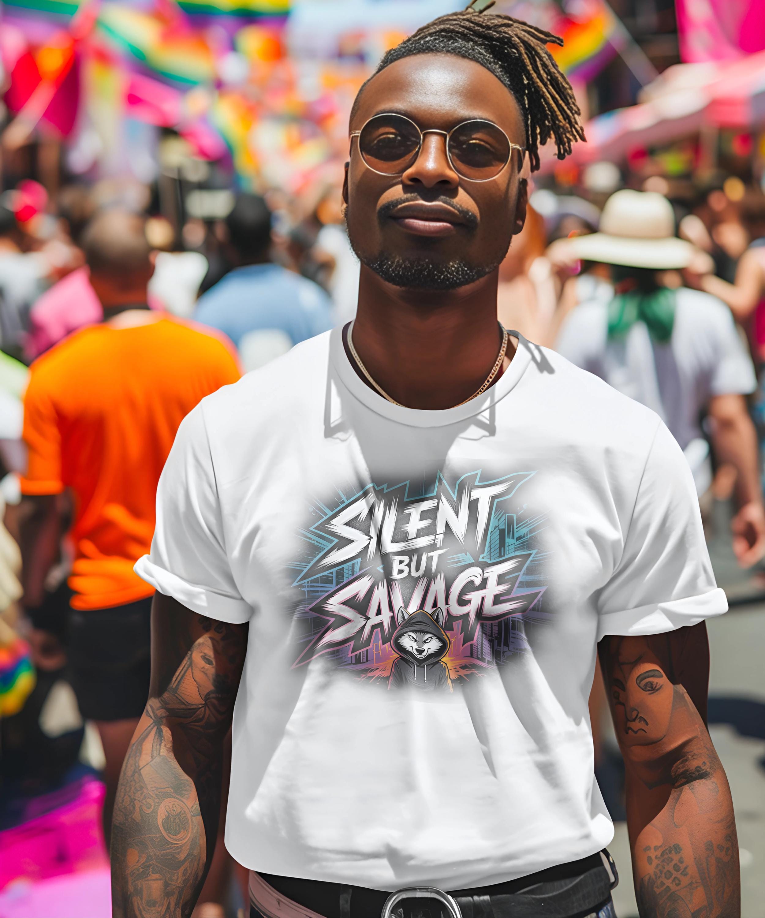 Step up your streetwear game with our Silent But Savage Shirt Streetwear Tee, a bold graphic t-shirt designed for those who prefer to move quietly but make a powerful statement. Crafted from premium soft cotton, this unisex shirt offers breathable comfort while displaying a stunning vaporwave-inspired hooded wolf against a vibrant neon cityscape. Perfect for anyone captivated by urban aesthetics and edgey designs that stand out in the crowd.
