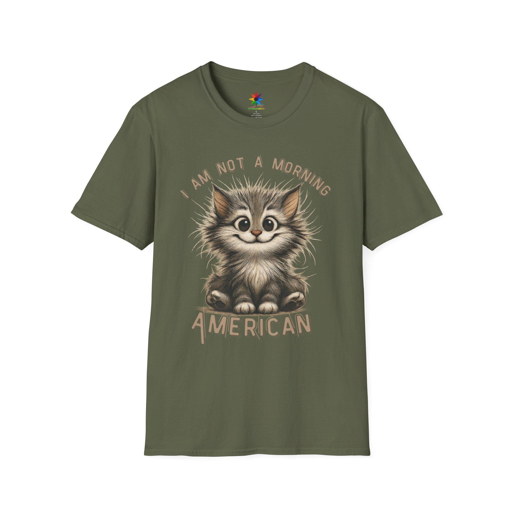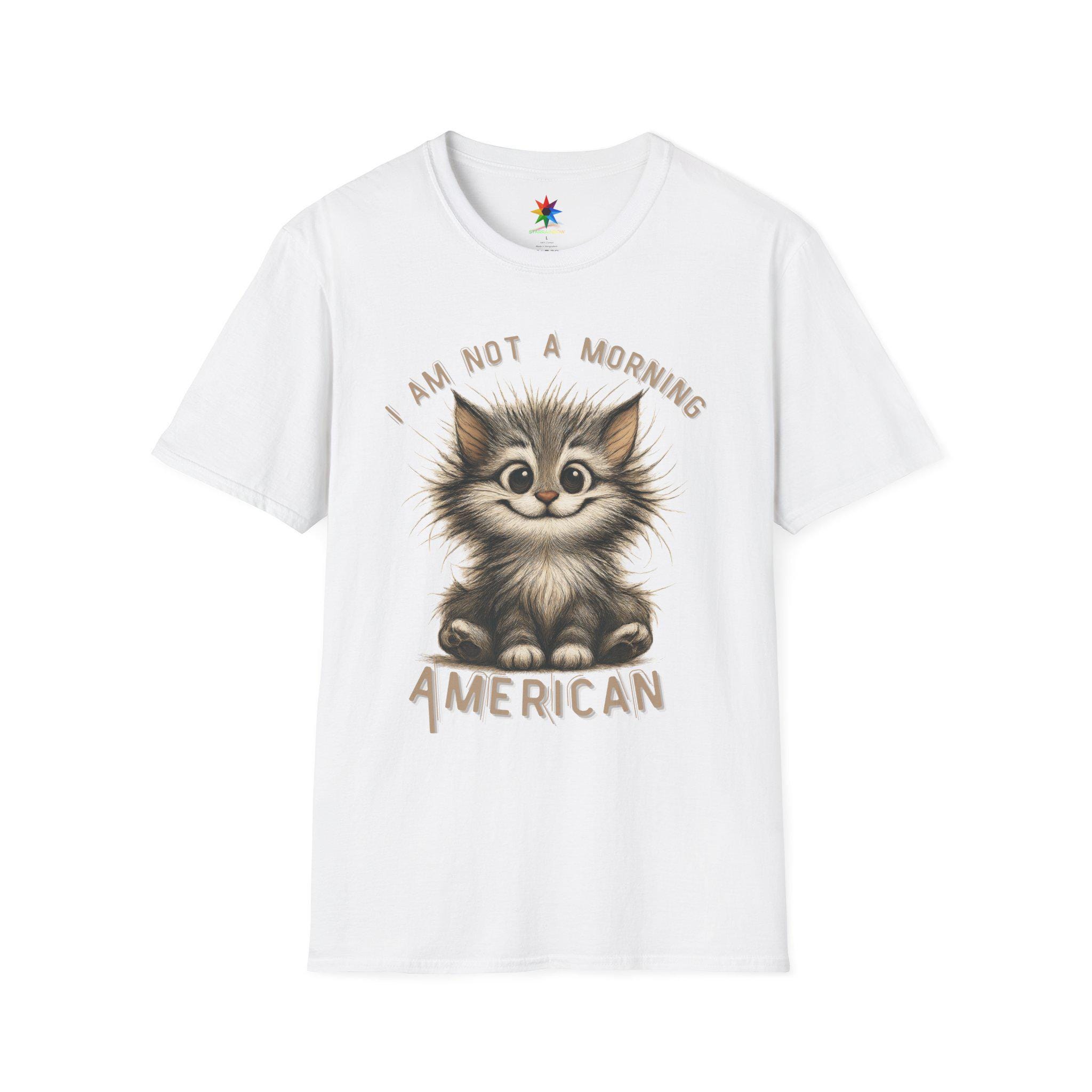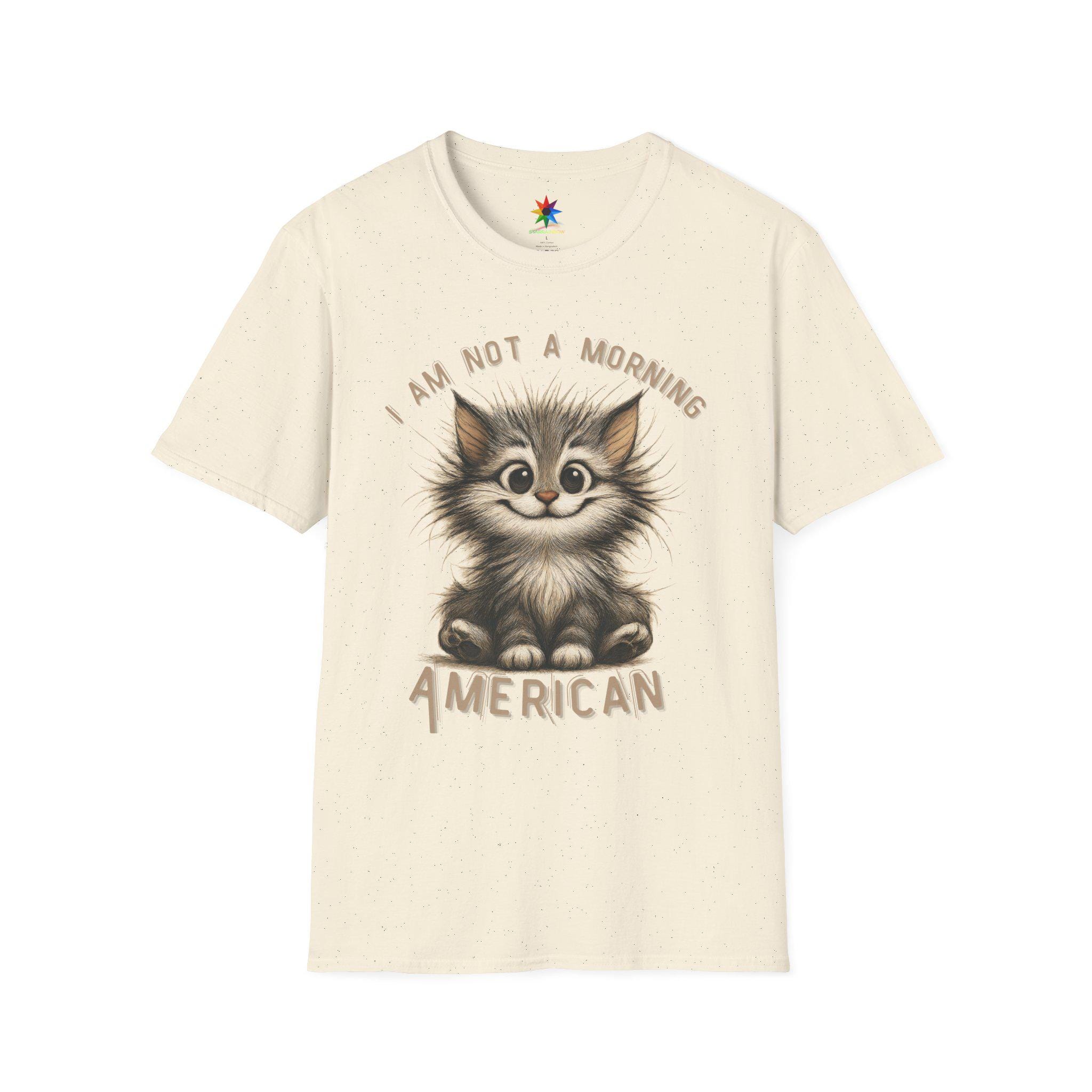 Start your day with a smile—and a strong cup of coffee—wearing our exclusive “I Am Not A Morning American” shirt! Featuring a hand-drawn, scruffy cartoon cat with wildly tousled fur, sleepy eyes, and a mischievous grin, this quirky design captures the universal feeling of those who aren't quite ready to face the morning. The cat's cheeky wave perfectly echoes the sentiment: “Don't talk to me before coffee.” Whether you're a devoted cat lover, someone who shies away from early mornings, or just appreciate clever sarcasm, this shirt is your new go-to for expressing your unique personality with a dash of humor.