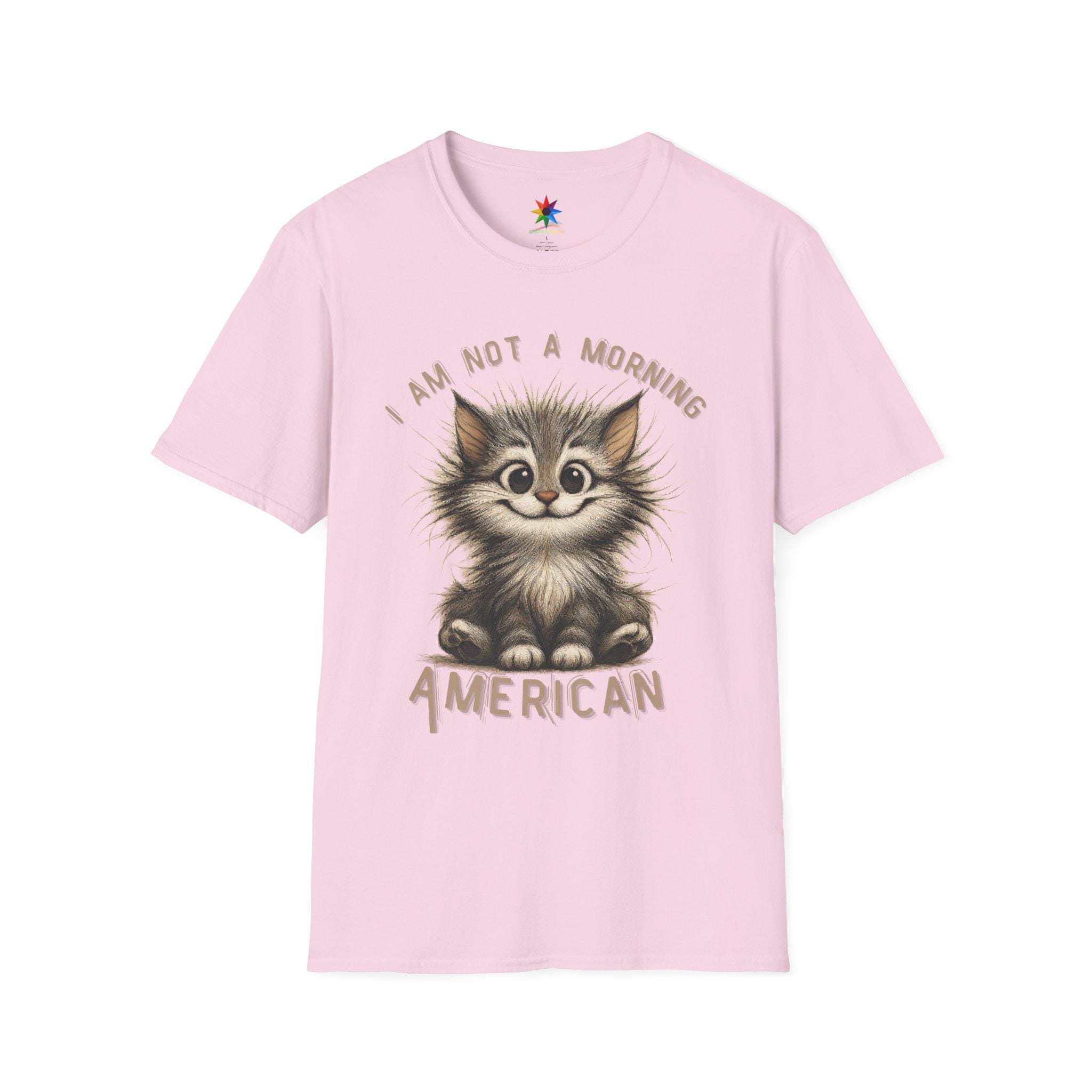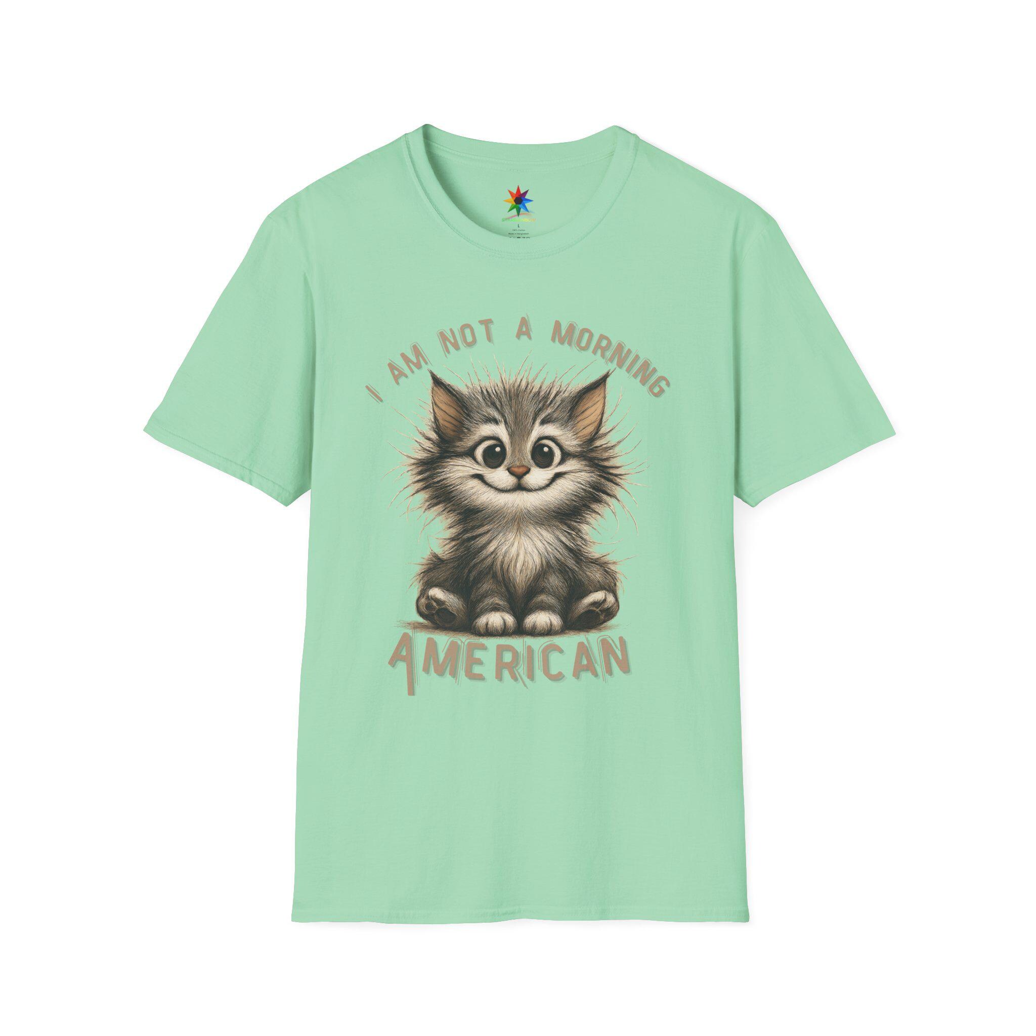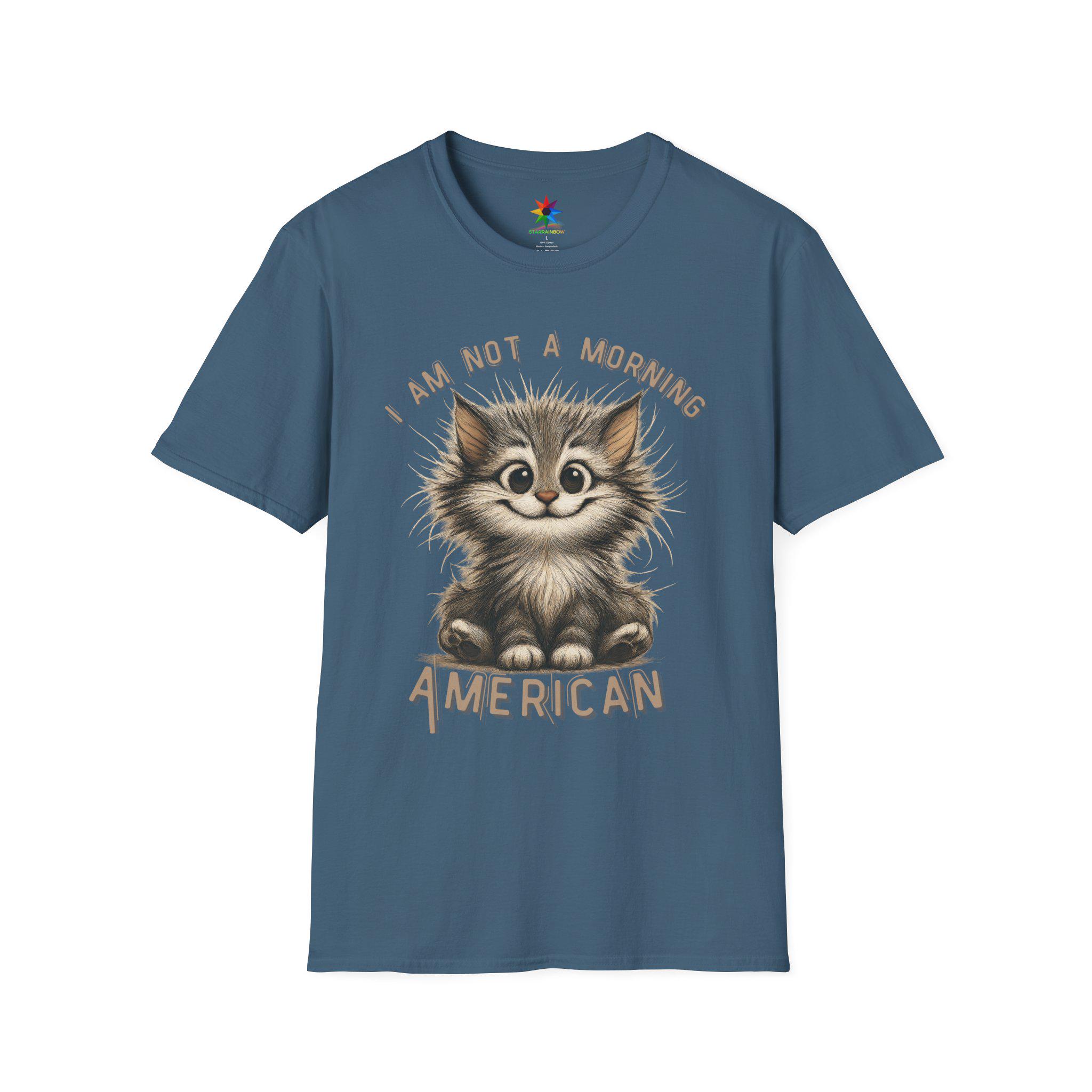 Start your day with a smile—and a strong cup of coffee—wearing our exclusive “I Am Not A Morning American” shirt! Featuring a hand-drawn, scruffy cartoon cat with wildly tousled fur, sleepy eyes, and a mischievous grin, this quirky design captures the universal feeling of those who aren't quite ready to face the morning. The cat's cheeky wave perfectly echoes the sentiment: “Don't talk to me before coffee.” Whether you're a devoted cat lover, someone who shies away from early mornings, or just appreciate clever sarcasm, this shirt is your new go-to for expressing your unique personality with a dash of humor.