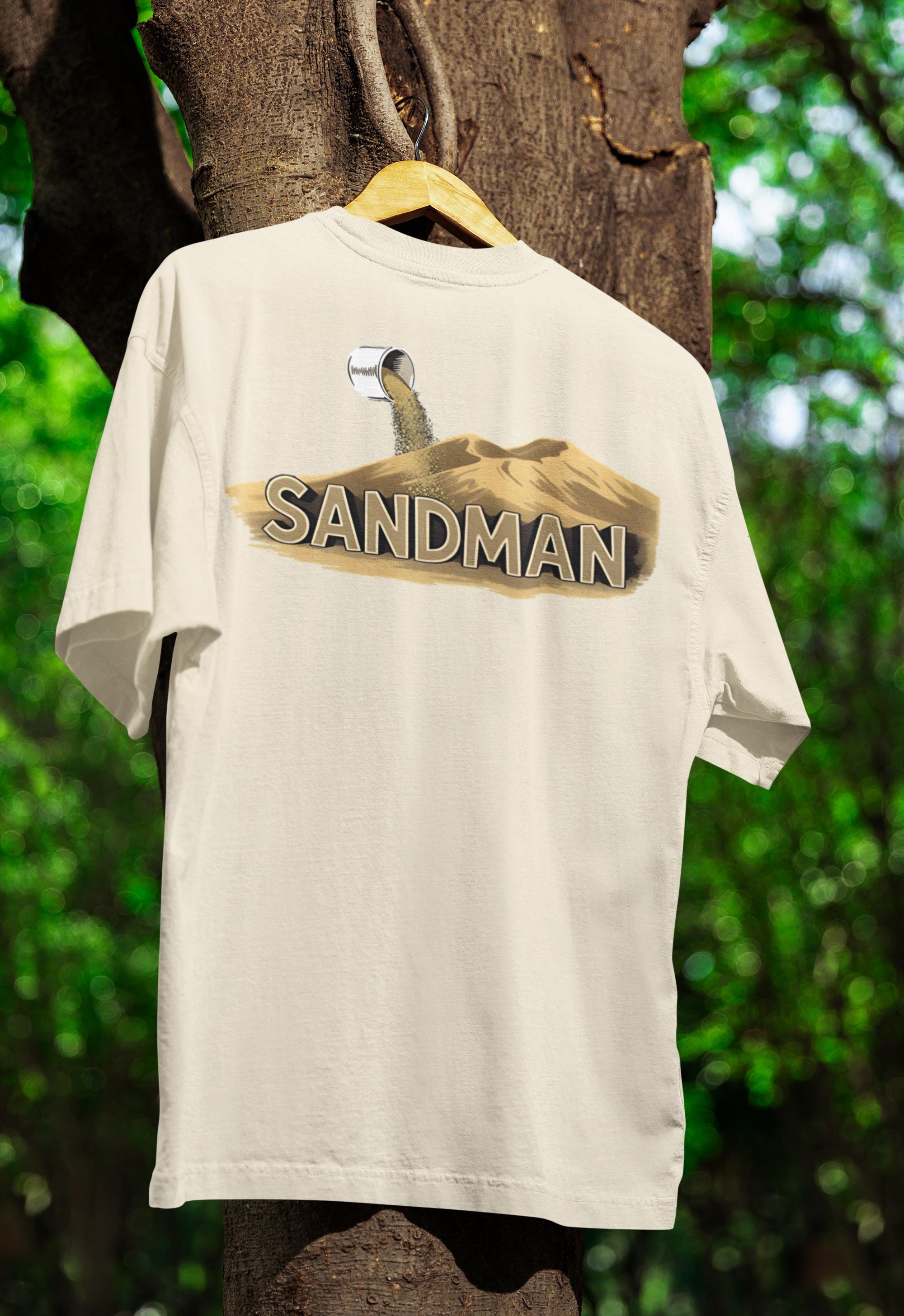 Introducing our Sandman T Shirt – the perfect blend of pop culture, humor, and unique design! This Sandman Graphic Tee is crafted for those who appreciate original art and want to stand out with a truly one-of-a-kind piece. The design features a bold "SANDMAN" text set against a backdrop of desert sand dunes, with sand pouring from a metal bucket, creating a playful and eye-catching visual. Whether you're a fan of classic references, a lover of minimalist art, or simply searching for a unique Sandman gift idea, this shirt is made for you.