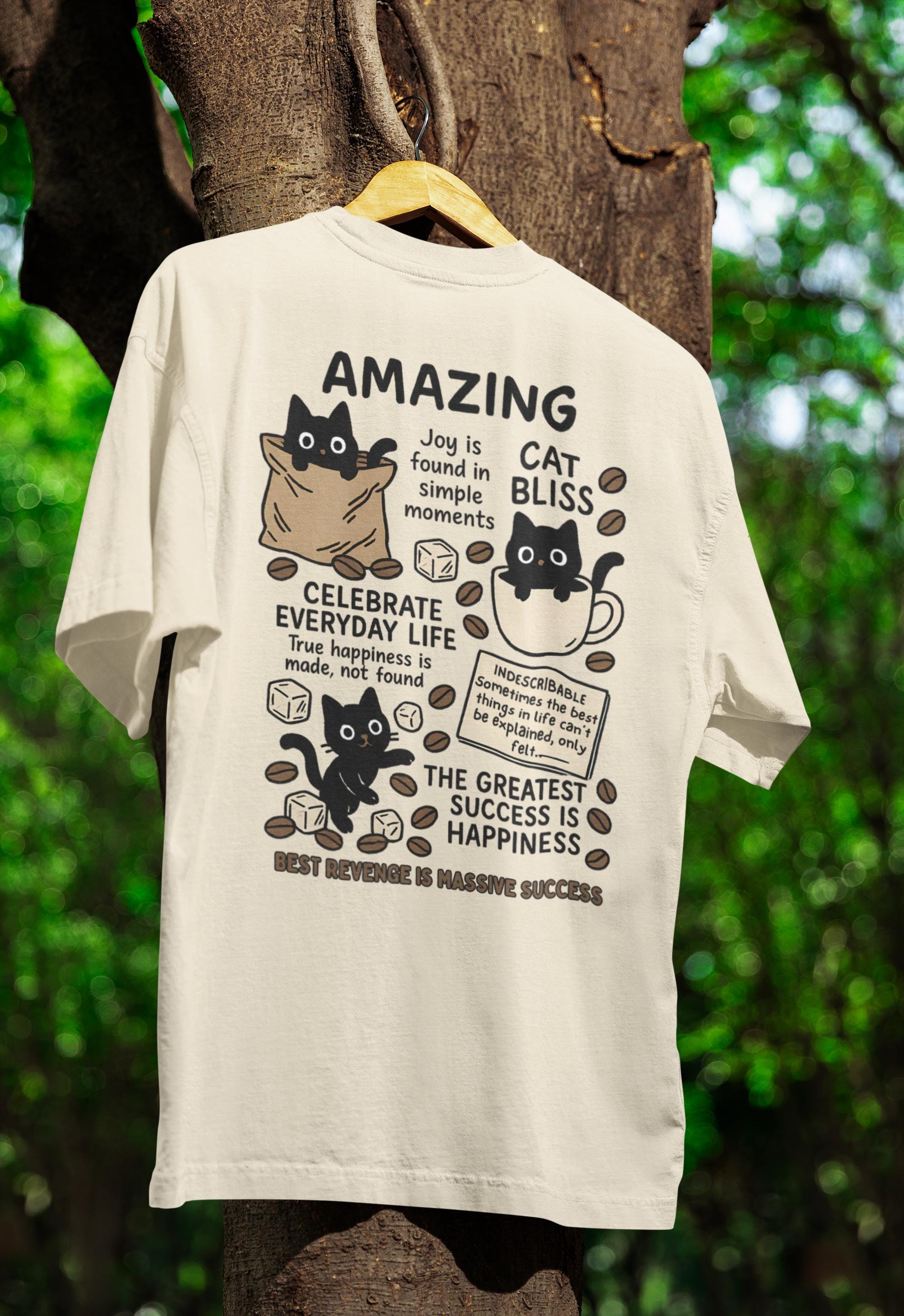 If you're searching for a truly unique and heartwarming gift, our Cartoon Cat Group T Shirt Oversize Korean Style Cute Cat Lovers Tee Unisex Casual Short Sleeve Positive Quote Kawaii Gift is the perfect choice! The real magic of this shirt lies in its one-of-a-kind design—a cartoon cat group that instantly brings a smile to your face. The project features adorable black cats in playful poses, surrounded by coffee beans, cubes, and uplifting messages. This isn't just a black cat graphic shirt; it's a celebration of joy, happiness, and the simple moments that make life special.