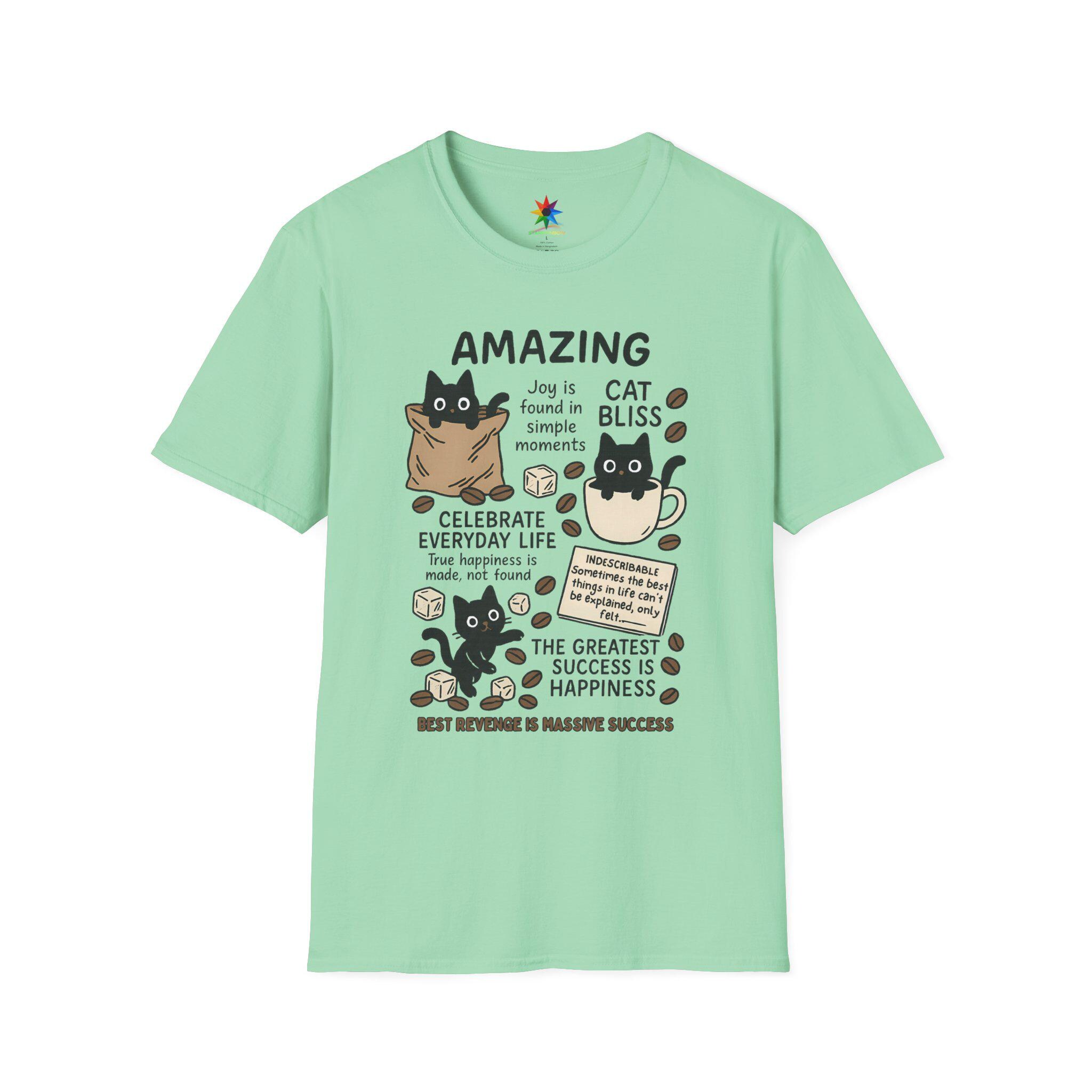 Inspired by the latest Korean style cat tee shirt trends, the artwork captures the essence of kawaii cat group t shirt fashion. Each cat is drawn in a cute, cartoonish style that appeals to all ages, making it a cute cat lovers gift shirt for anyone who adores felines. The positive quote t shirt cat design is filled with motivational phrases like “Joy is found in simple moments” and “The greatest success is happiness,” turning this unique cat design tee into a daily source of inspiration.
