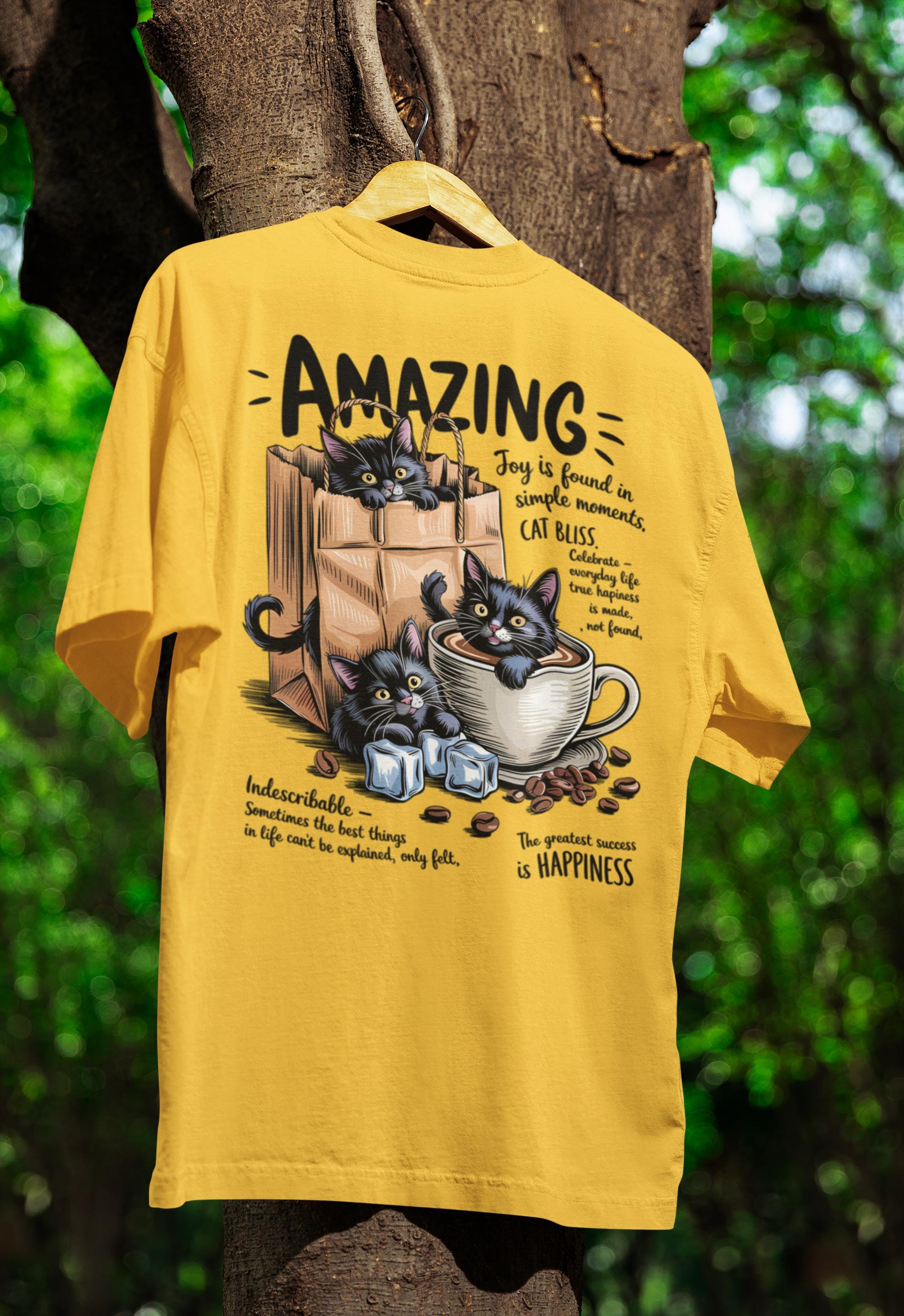Celebrate your love for cats and coffee with this amazing cat shirt oversized tee. The coffee cat t-shirt kawaii style is not just a piece of clothing—it's a statement of joy, positivity, and the little things that make life special. Whether you're shopping for yourself or searching for the perfect men women cat t-shirt gift, this casual short sleeve cat tee is the answer. Add a touch of fun and happiness to your day with our unique, cute black cat coffee shirt—because the greatest success is happiness!